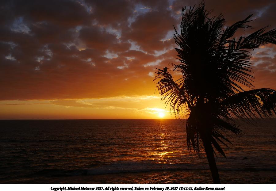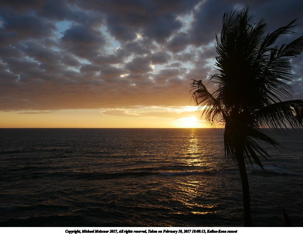 Picture #48: Kailua-Kona sunset #3 900x623, 111,570 bytes (109K), (html file) Copyright, Michael Meissner 2017, All rights reserved Panasonic G85 camera with Olympus-m43 12-40mm f/2.8 lens f/5.6, ISO 200, 1/500 sec, 12.0mm, auto mode, auto wb (5100), center weight metering, bias -0.7, image stabilization 35mm equivalent focal length 24.0mm Extra equipment used: tripod, shutter release Programs used: crop, gimp Taken by Michael Meissner on February 10, 2017 18:13:35 Last modified on April 28, 2018 at 21:18 |
