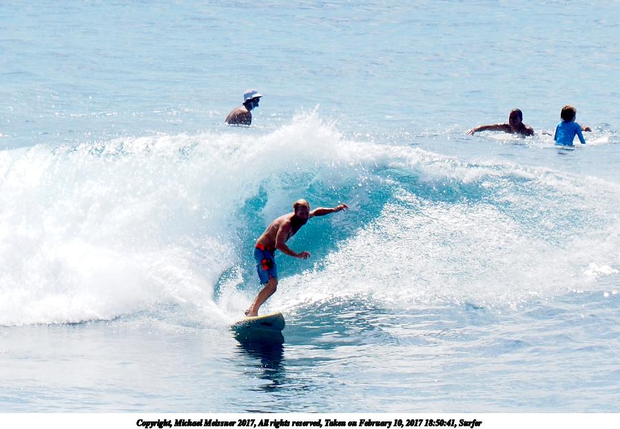 Picture #47: Young surfer 900x623, 94,205 bytes (92K), (html file) Copyright, Michael Meissner 2017, All rights reserved Olympus E-M1-I camera with Olympus 50-200mm lens and Olympus EC-14 (1.4x) f/5.6, ISO 200, 1/1600 sec, 174.0mm, shutter priority, vivid color, SHQ, matrix metering, bias -0.7, digital zoom x2, IS Auto, noise filter low 35mm equivalent focal length 697.0mm, digital zoom x2, EC-14 Programs used: crop, gimp Taken by Michael Meissner on February 11, 2017 08:49:31 Last modified on April 28, 2018 at 21:17 The file originally appeared in http://www.the-meissners.org/2017-small-albums/2017-hawaii/index.html. |