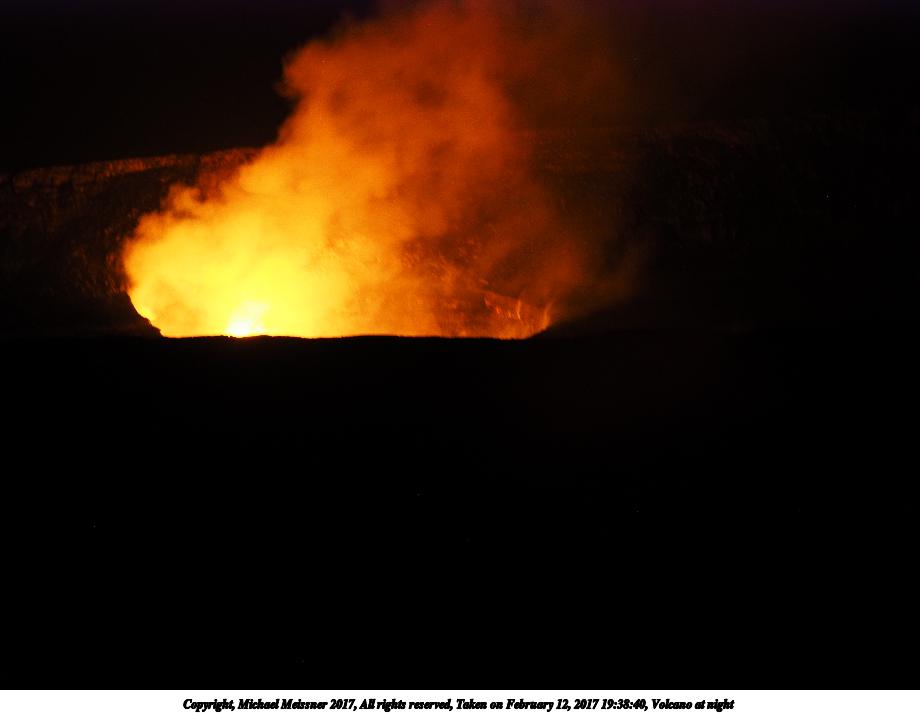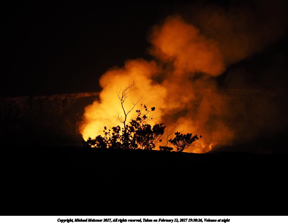 Picture #44: Volcano at night #3 920x713, 44,446 bytes (44K), (html file) Copyright, Michael Meissner 2017, All rights reserved Olympus E-M1-I camera with Olympus 50-200mm lens f/5.6, ISO 800, 1 sec, 67.0mm, aperture priority, vivid color, SHQ, matrix metering, IS Auto, noise filter low, anti-shock 35mm equivalent focal length 134.0mm Programs used: crop Taken by Michael Meissner on February 12, 2017 19:38:40 Last modified on April 28, 2018 at 21:21 The file originally appeared in http://www.the-meissners.org/2017-small-albums/2017-hawaii/index.html. |
