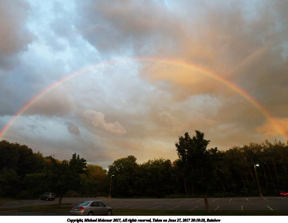 Picture #20: Rainbow #2 920x713, 68,790 bytes (68K), (html file) Copyright, Michael Meissner 2017, All rights reserved Olympus TG-860 camera f/3.5, ISO 200, 1/40 sec, 3.7mm, auto mode, vivid color, SQ, matrix metering 35mm equivalent focal length 21.0mm Programs used: crop, raw therapee Taken by Michael Meissner on June 27, 2017 20:10:28 Last modified on April 25, 2018 at 10:51 |