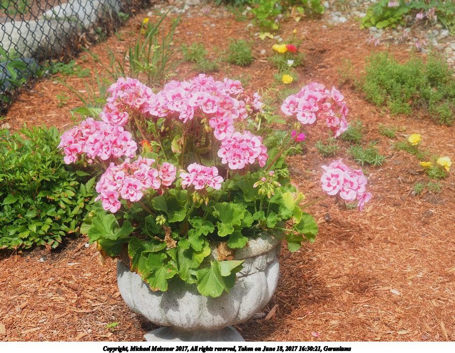 Picture #37: Geraniums #3 920x713, 196,989 bytes (193K), (html file) Copyright, Michael Meissner 2017, All rights reserved Olympus E-M1-I camera with Olympus-m43 14-150mm-II f/4.0-5.6 lens f/6.3, ISO 200, 1/125 sec, 31.0mm, auto mode, vivid color, SHQ, matrix metering, IS Auto, noise filter low, anti-shock 35mm equivalent focal length 62.0mm Programs used: crop, raw therapee Taken by Michael Meissner on June 18, 2017 16:31:00 Last modified on April 27, 2018 at 11:04 |