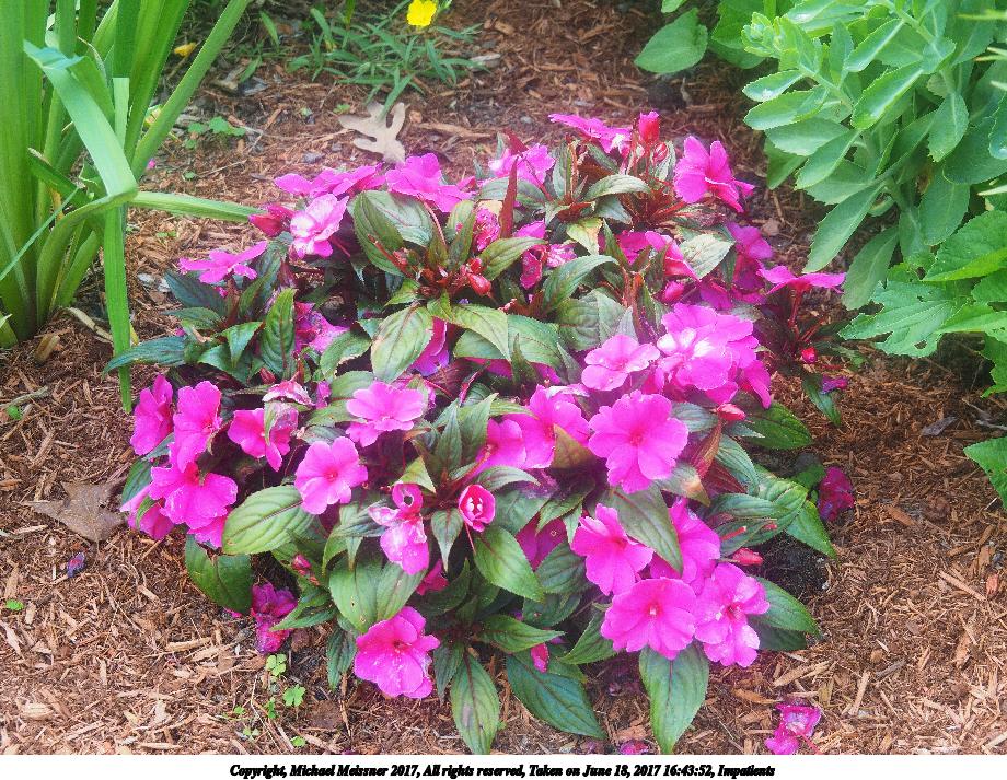 Picture #2: Impatients 920x713, 229,507 bytes (225K), (html file) Copyright, Michael Meissner 2017, All rights reserved Olympus E-M1-I camera with Olympus-m43 14-150mm-II f/4.0-5.6 lens f/5.6, ISO 640, 1/100 sec, 47.0mm, auto mode, vivid color, SHQ, matrix metering, IS Auto, noise filter low, anti-shock 35mm equivalent focal length 94.0mm Programs used: crop, raw therapee Taken by Michael Meissner on June 18, 2017 16:43:52 Last modified on April 27, 2018 at 11:06 |