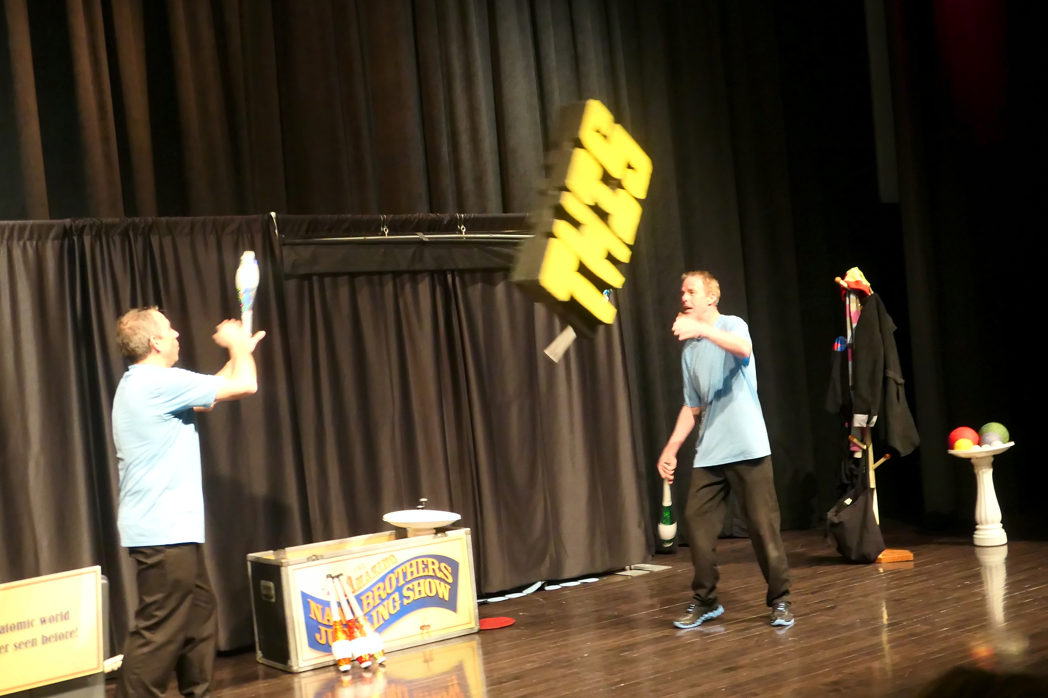 Picture #15: Nano brothers science juggling act #13 Thumb: 450x300, 61,698 bytes (61K) Small: 900x622, 119,436 bytes (117K), (html file) Large: 3600x2400, 5,040,803 bytes (4.8M), (html file) Copyright, Michael Meissner 2018, All rights reserved Panasonic LX-10 camera f/1.4, ISO 400, 1/60 sec, 8.8mm, auto mode, auto wb (3200), matrix metering, bias 0.3, image stabilization 35mm equivalent focal length 26.0mm Programs used: crop, gimp Taken by Michael Meissner on April 21, 2018 15:50:51 Last modified on May 13, 2018 at 23:37 |