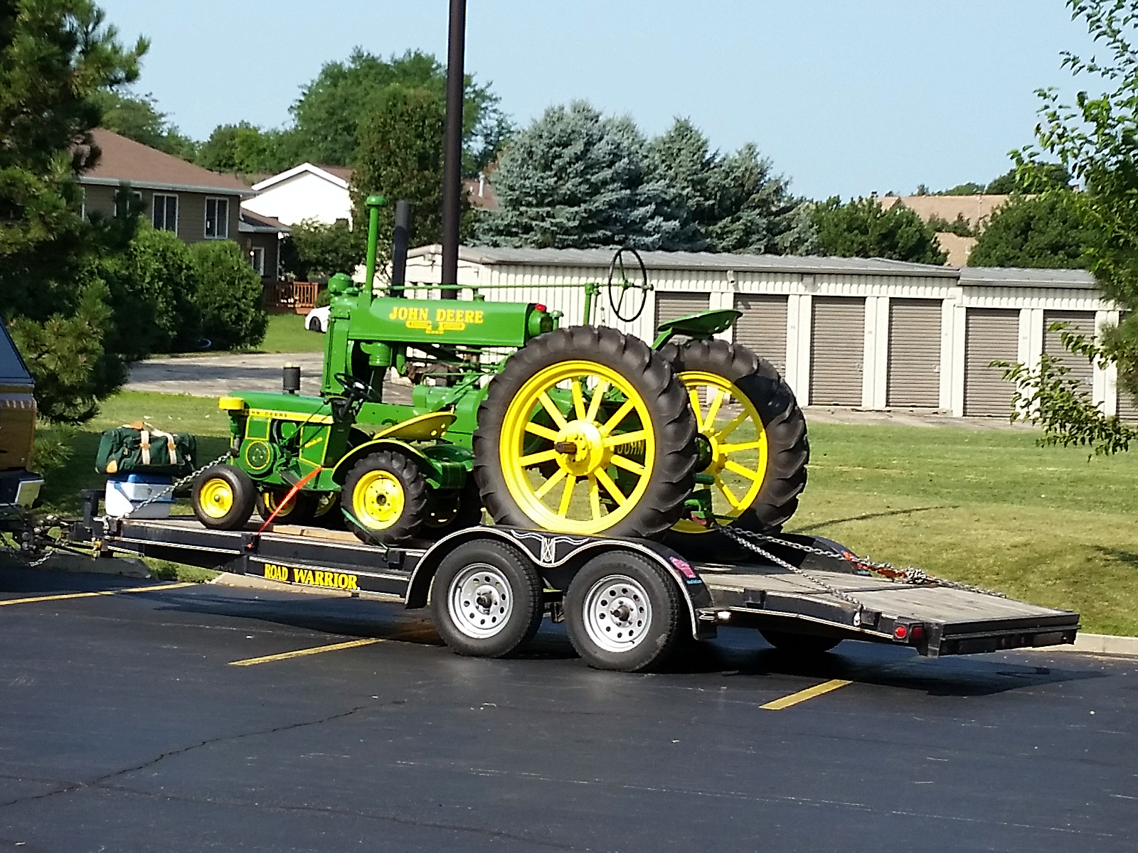 Picture #12: Old tractor Small: 800x622, 126,456 bytes (124K), (html file) Large: 1600x1200, 1,778,124 bytes (1.7M), (html file) Copyright, Michael Meissner 2018, All rights reserved Samsung S5 phone f/2.2, ISO 40, 1/654 sec, 4.8mm, auto mode, center weight metering 35mm equivalent focal length 31.0mm Programs used: gimp Taken by Michael Meissner on August 11, 2018 09:32:47 Last modified on August 19, 2018 at 01:45 There was a steam and old tractor show going on in Sycamore when we went to my niece's wedding. It was too hot and sticky to go to the show, but I saw this old tractor in the hotel parking lot. |