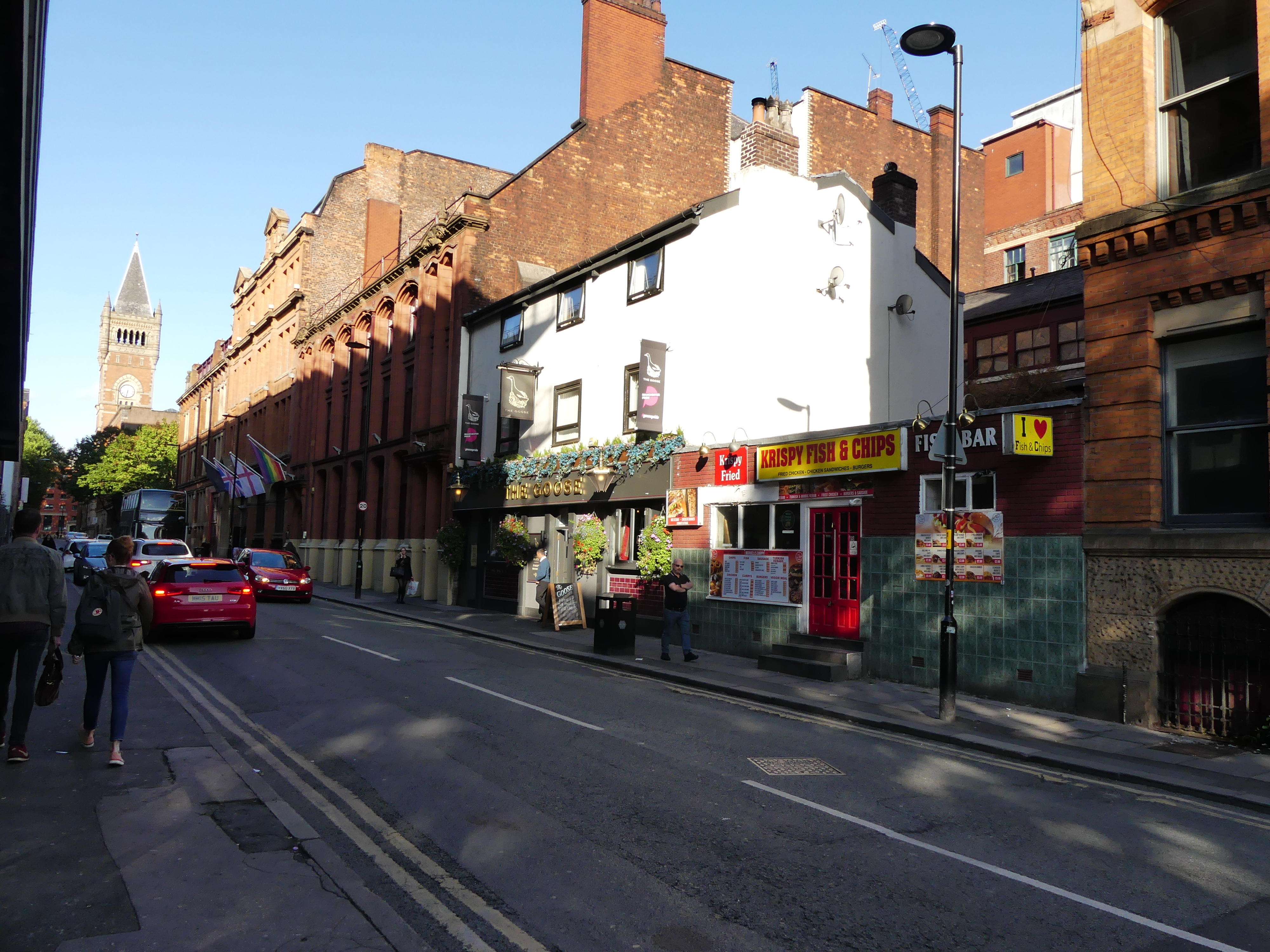 Picture #14: The Molly House (in Manchester's gay district) Small: 750x1022, 189,577 bytes (186K), (html file) Large: 3000x4000, 6,163,795 bytes (5.9M), (html file) Copyright, Michael Meissner 2018, All rights reserved Panasonic FZ300 camera f/3.2, ISO 100, 1/160 sec, 9.9mm, auto mode, auto wb (6200), matrix metering, image stabilization, normal color mode 35mm equivalent focal length 55.0mm Programs used: rotate left Taken by Michael Meissner on September 06, 2018 17:36:55 Last modified on September 16, 2018 at 22:38 |