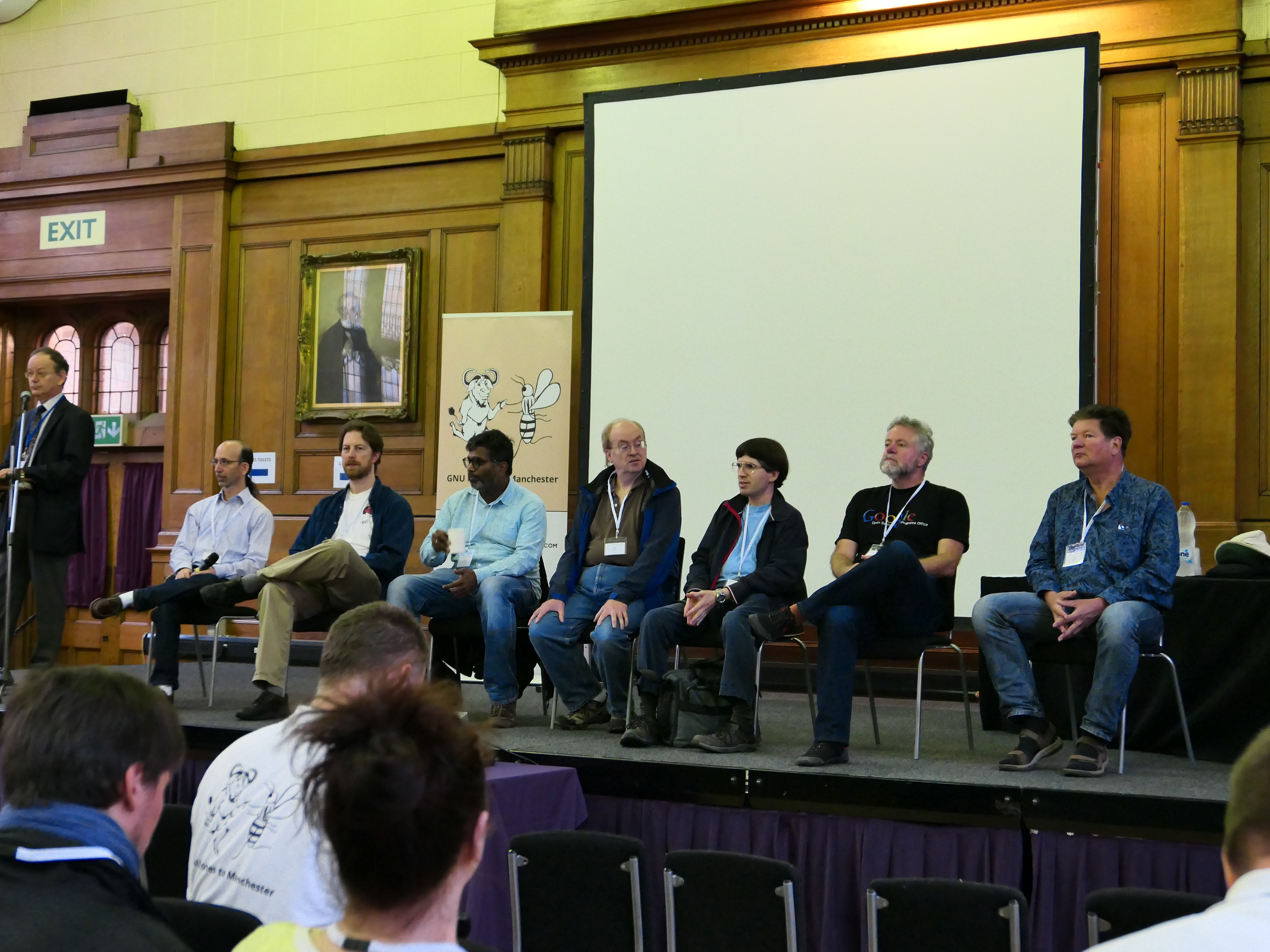 Picture #23: Gnu Cauldron GCC steering committee members Small: 608x500, 89,115 bytes (88K), (html file) Large: 4864x3648, 6,900,989 bytes (6.6M), (html file) Copyright, Michael Meissner 2018, All rights reserved Panasonic LX-10 camera f/2.8, ISO 1600, 1/50 sec, 18.0mm, auto mode, auto wb (2900), matrix metering, image stabilization 35mm equivalent focal length 53.0mm Programs used: rotate left Taken by Michael Meissner on September 08, 2018 10:01:50 Last modified on September 16, 2018 at 22:47 |