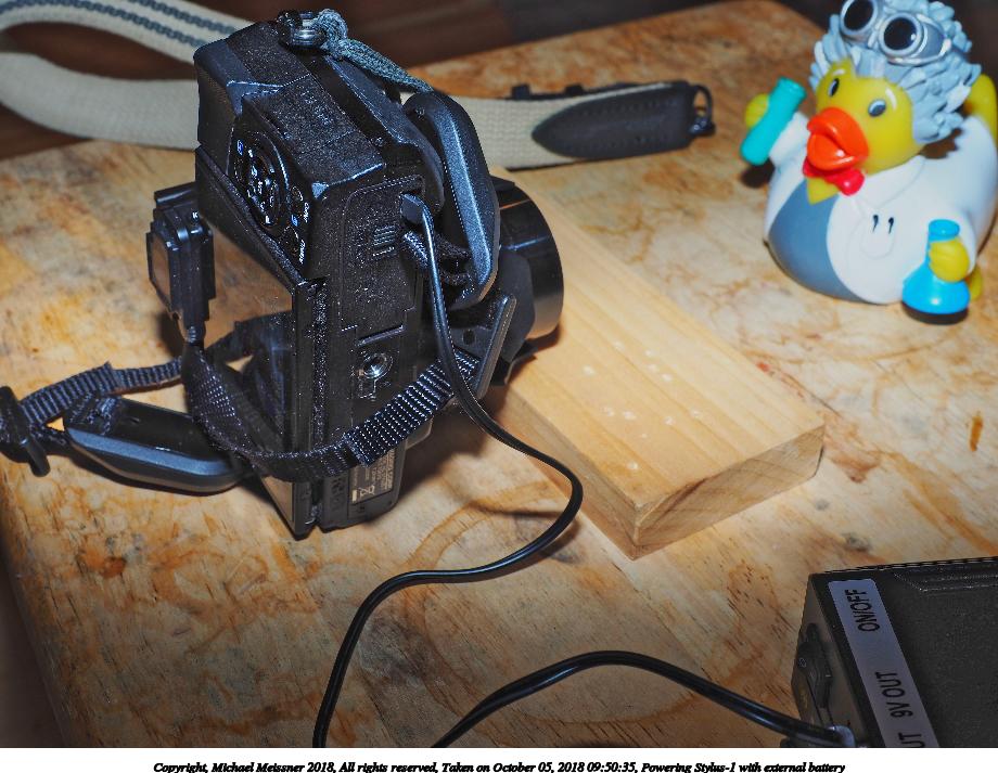 Picture #3: Powering Stylus-1 with external battery #2 Small: 920x713, 126,391 bytes (124K), (html file) Large: 4600x3450, 2,975,027 bytes (2.8M), (html file) Copyright, Michael Meissner 2018, All rights reserved Olympus E-M10-II camera with Olympus-m43 12-40mm f/2.8 lens f/8.0, ISO 200, FL-36R flash, 1/60 sec, 26.0mm, aperture priority, vivid color, SHQ, matrix metering, bias -0.3, IS Auto, noise reduction auto 35mm equivalent focal length 52.0mm Programs used: crop, raw therapee Taken by Michael Meissner on October 05, 2018 09:50:35 Last modified on October 05, 2018 at 11:44 |