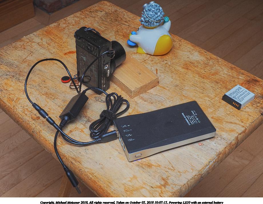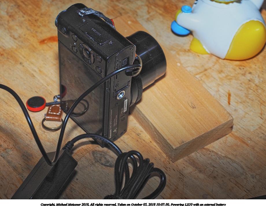 Picture #6: Powering LX10 with an external battery Small: 920x713, 143,156 bytes (140K), (html file) Large: 4600x3450, 3,993,273 bytes (3.8M), (html file) Copyright, Michael Meissner 2018, All rights reserved Olympus E-M10-II camera with Olympus-m43 12-40mm f/2.8 lens f/8.0, ISO 200, FL-36R flash, 1/60 sec, 26.0mm, aperture priority, vivid color, SHQ, matrix metering, IS Auto, noise reduction auto 35mm equivalent focal length 52.0mm Programs used: crop, raw therapee Taken by Michael Meissner on October 05, 2018 10:07:15 Last modified on October 05, 2018 at 11:45 |