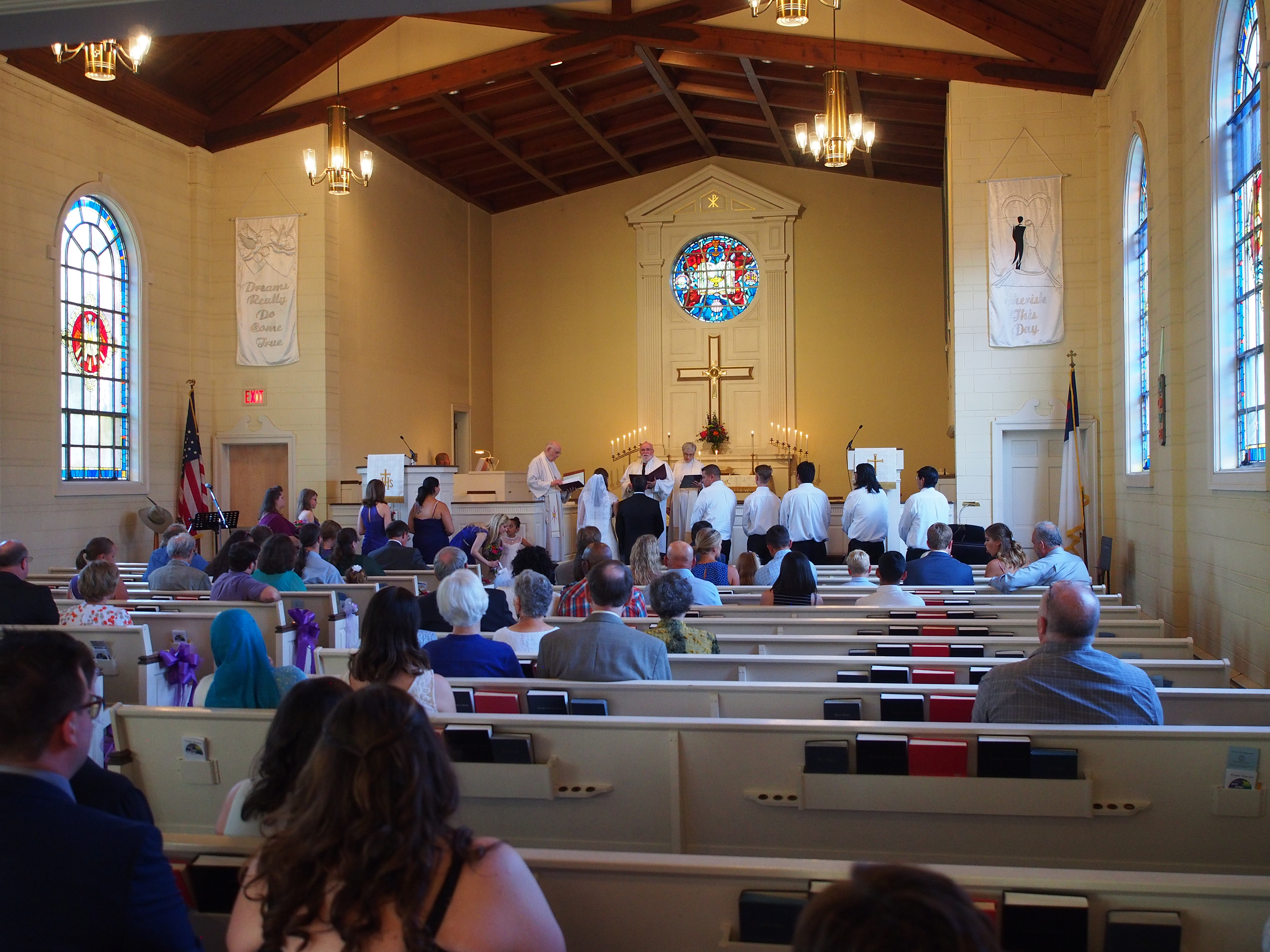 Picture #46: DeKalb church before the wedding Small: 900x697, 127,658 bytes (125K), (html file) Large: 3600x2700, 2,541,085 bytes (2.4M), (html file) Copyright, Michael Meissner 2018, All rights reserved Olympus Stylus-1 camera f/2.8, ISO 320, 1/30 sec, 6.0mm, auto mode, vivid color, SHQ, matrix metering, IS Auto, noise reduction auto, noise filter low 35mm equivalent focal length 28.0mm Programs used: crop, raw therapee Taken by Michael Meissner on August 10, 2018 15:16:44 Last modified on August 22, 2018 at 09:27 |