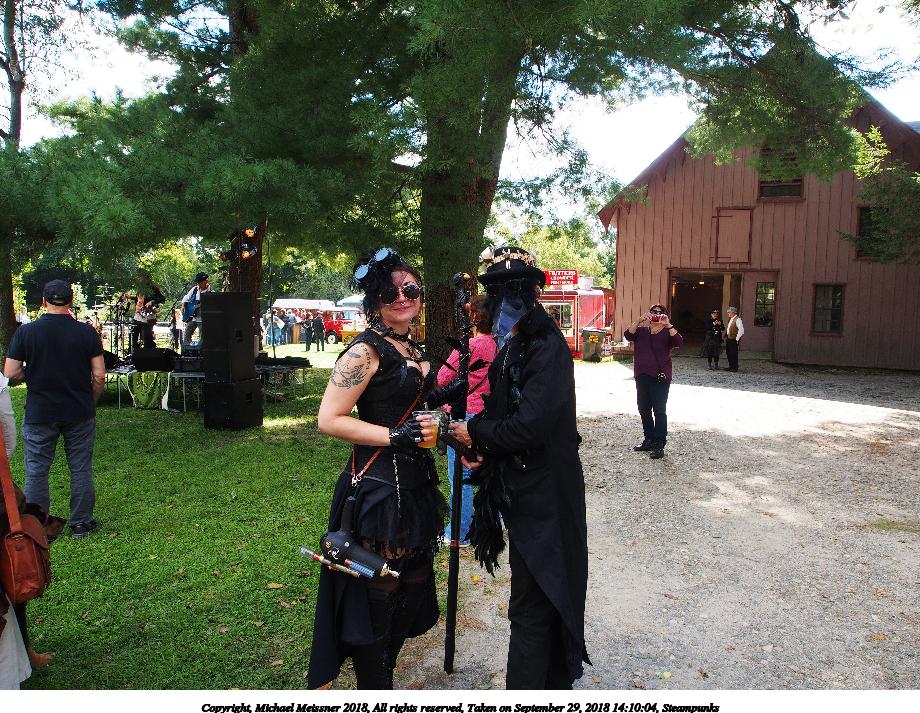 Picture #3: Steampunks #2 Small: 920x713, 225,416 bytes (221K), (html file) Large: 4600x3450, 5,773,880 bytes (5.5M), (html file) Copyright, Michael Meissner 2018, All rights reserved Olympus E-M5-I camera with Olympus-m43 12-50mm f/3.5-6.3 lens f/5.0, ISO 200, 1/160 sec, 12.0mm, auto mode, vivid color, matrix metering, IS1 (All Direction Shake IS), noise filter low 35mm equivalent focal length 24.0mm Programs used: crop, raw therapee Taken by Michael Meissner on September 29, 2018 13:32:02 Last modified on October 16, 2018 at 00:53 |