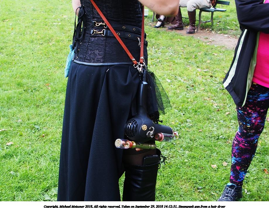 Picture #12: Steampunk gun from a hair dryer Small: 920x713, 197,632 bytes (193K), (html file) Large: 4600x3450, 4,142,535 bytes (4.0M), (html file) Copyright, Michael Meissner 2018, All rights reserved Olympus E-M5-I camera with Olympus-m43 12-50mm f/3.5-6.3 lens f/4.0, ISO 200, 1/80 sec, 12.0mm, auto mode, vivid color, matrix metering, digital zoom x2, IS1 (All Direction Shake IS), noise filter low 35mm equivalent focal length 48.0mm, digital zoom x2 Programs used: crop, raw therapee Taken by Michael Meissner on September 29, 2018 14:12:31 Last modified on October 16, 2018 at 00:59 |