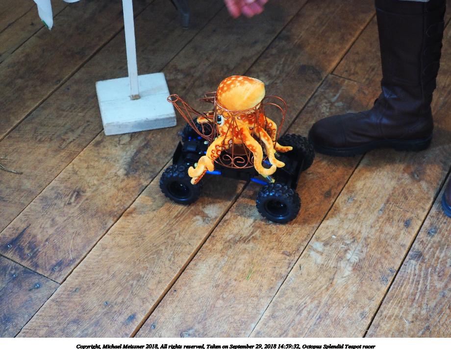Picture #29: Octopus Teapot racer Small: 690x943, 122,442 bytes (120K), (html file) Large: 3450x4600, 7,208,112 bytes (6.9M), (html file) Copyright, Michael Meissner 2018, All rights reserved Olympus E-M10-II camera with Olympus-m43 12-40mm f/2.8 lens f/2.8, ISO 400, 1/60 sec, 18.0mm, auto mode, vivid color, SHQ, matrix metering, IS Auto, noise reduction auto 35mm equivalent focal length 36.0mm Programs used: crop, gimp, raw therapee, rotate left Taken by Michael Meissner on September 29, 2018 15:39:57 Last modified on October 16, 2018 at 01:41 |