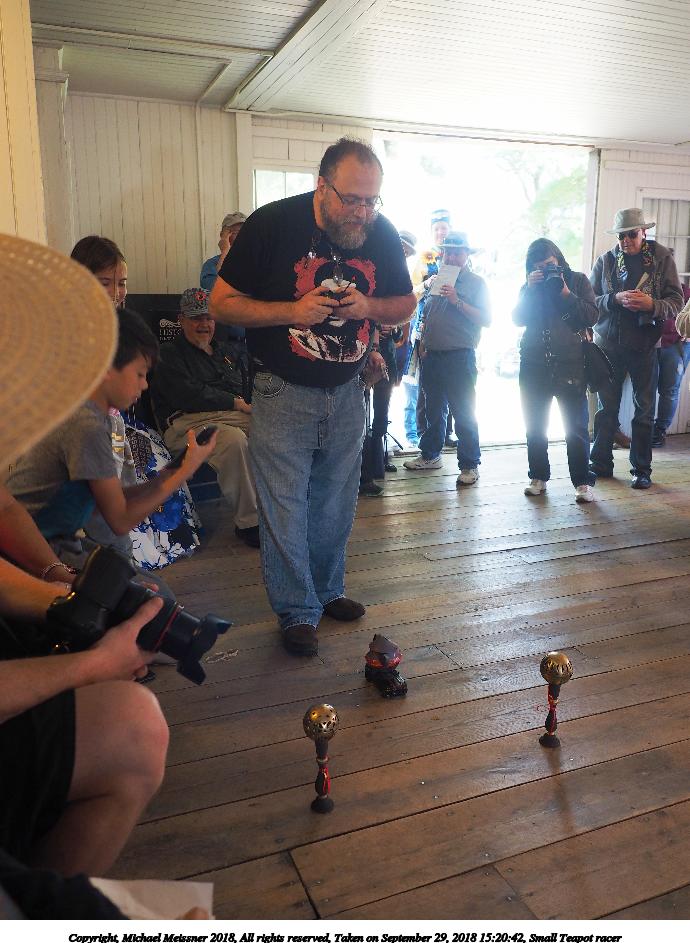 Picture #23: Smallest Teapot racer Small: 920x713, 95,326 bytes (94K), (html file) Large: 4600x3450, 5,781,603 bytes (5.5M), (html file) Copyright, Michael Meissner 2018, All rights reserved Olympus E-M10-II camera with Olympus-m43 12-40mm f/2.8 lens f/2.8, ISO 320, 1/60 sec, 26.0mm, auto mode, vivid color, SHQ, matrix metering, IS Auto, noise reduction auto 35mm equivalent focal length 52.0mm Programs used: crop, gimp, raw therapee Taken by Michael Meissner on September 29, 2018 15:29:50 Last modified on October 16, 2018 at 01:36 |