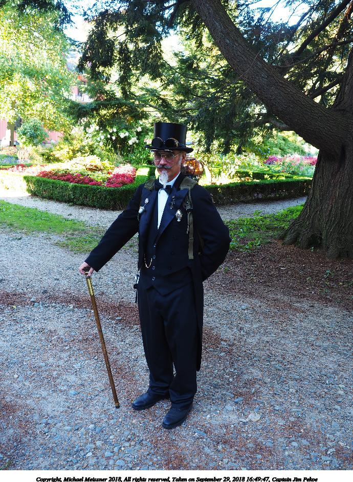 Picture #27: Captain Jim Pekoe Small: 690x943, 269,165 bytes (263K), (html file) Large: 3450x4600, 6,667,071 bytes (6.4M), (html file) Copyright, Michael Meissner 2018, All rights reserved Olympus E-M10-II camera with Olympus-m43 12-40mm f/2.8 lens f/2.8, ISO 250, 1/60 sec, 15.0mm, auto mode, vivid color, SHQ, matrix metering, IS Auto, noise reduction auto 35mm equivalent focal length 30.0mm Taken by Michael Meissner on September 29, 2018 16:49:47 Last modified on October 16, 2018 at 01:45 |