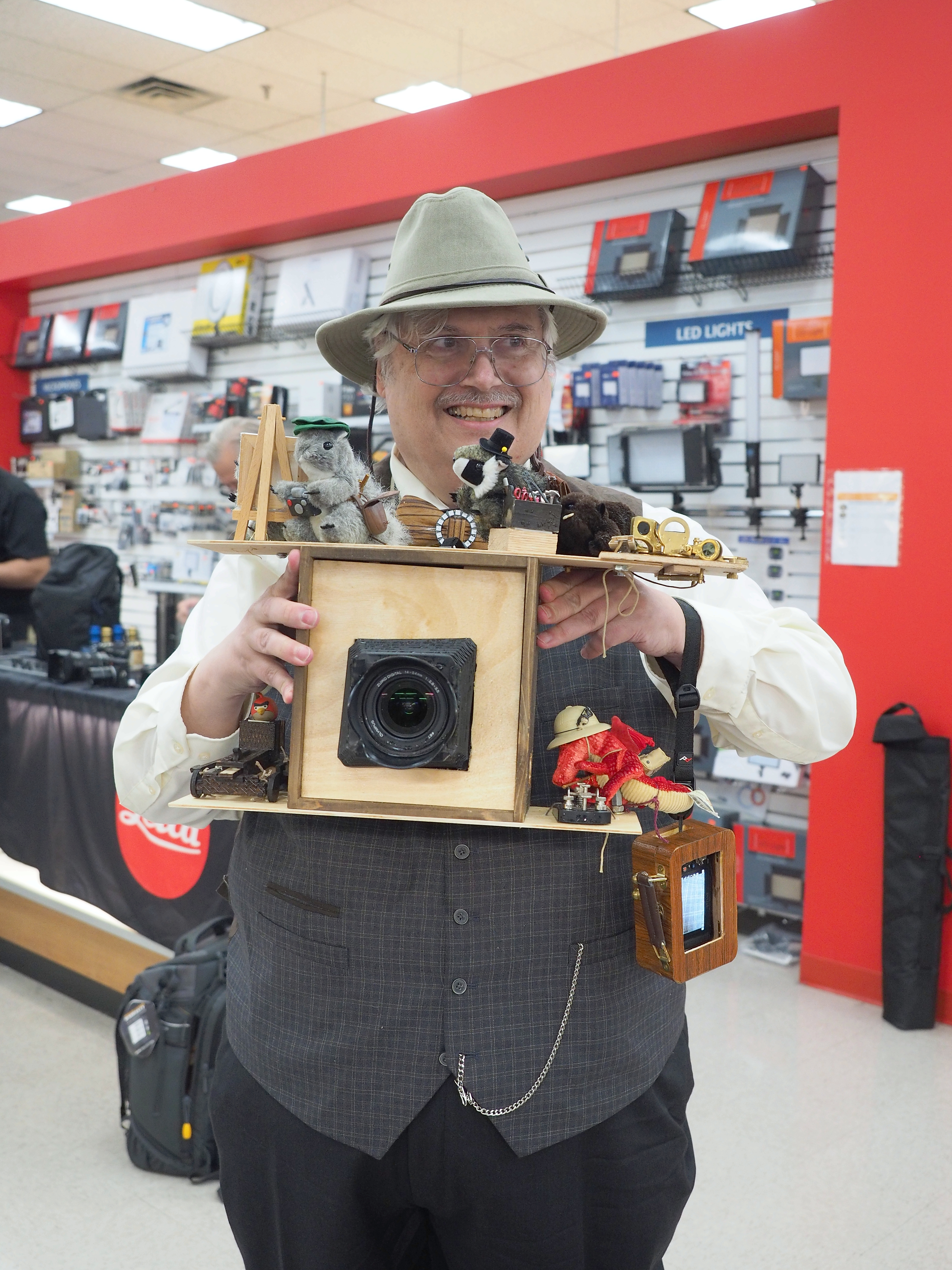 Picture #20: My steampunk 'cellphone' camera at 2018 Arisia #4 Small: 920x713, 206,895 bytes (203K), (html file) Large: 4600x3450, 5,971,964 bytes (5.7M), (html file) Copyright, Michael Meissner 2018, All rights reserved Olympus E-M1-I camera with Olympus-m43 12-40mm f/2.8 lens f/2.8, ISO 1600, 1/60 sec, 32.0mm, auto mode, vivid color, SHQ, matrix metering, IS Auto, noise filter low, anti-shock 35mm equivalent focal length 64.0mm Programs used: crop, raw therapee Taken by Michael Meissner on January 13, 2018 14:50:08 Last modified on April 23, 2018 at 11:15 |