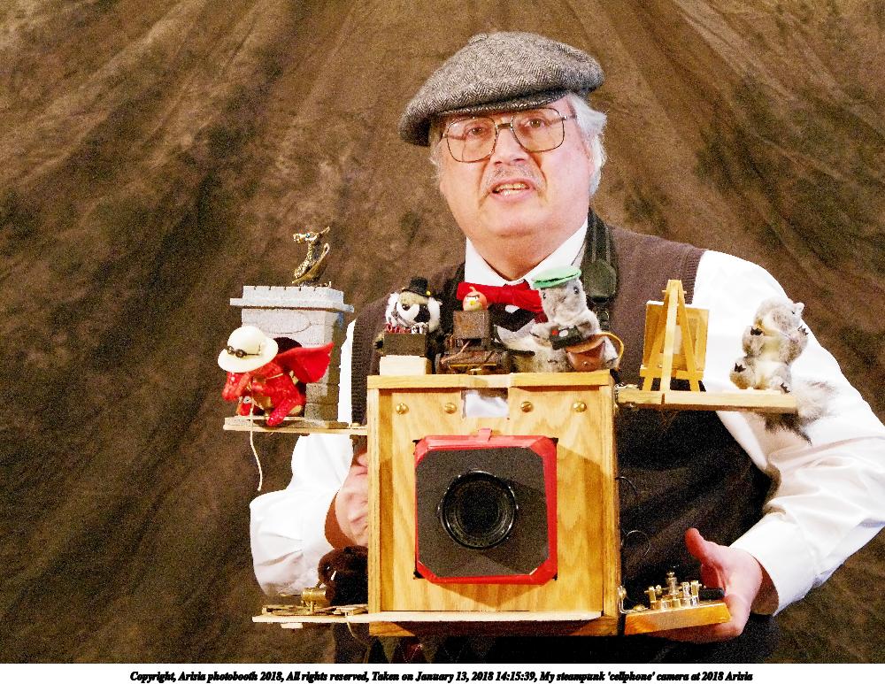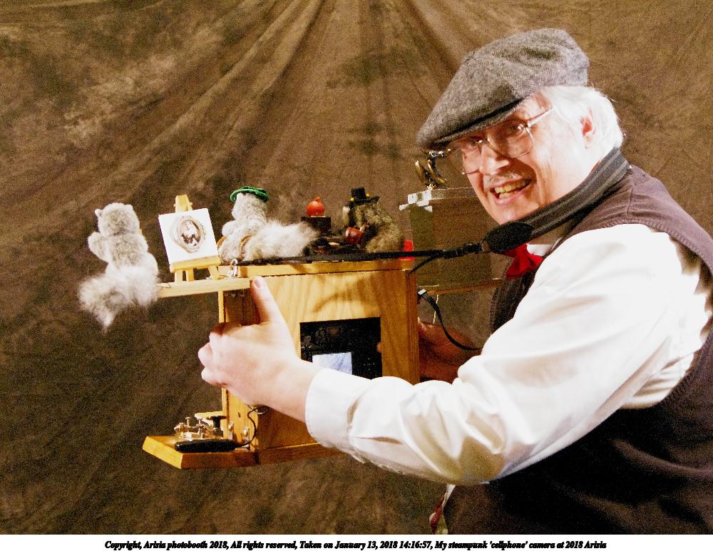 Picture #21: My steampunk 'cellphone' camera at 2018 Arisia #3 Small: 1000x773, 173,642 bytes (170K), (html file) Large: 4000x3000, 4,060,758 bytes (3.9M), (html file) Copyright, Arisia photobooth 2018, All rights reserved PENTAX K-7 f/3.5, ISO 3200, 1/100 sec, 33.0mm, manual mode, manual color, Premium, center weight metering, bias 0.3, +1 sharpening 35mm equivalent focal length 49.0mm Programs used: crop, raw therapee Taken by Arisia photobooth on January 13, 2018 14:16:57 Last modified on April 23, 2018 at 11:14 |