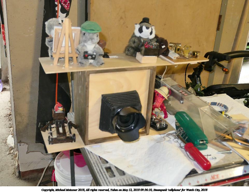 Picture #9: Steampunk 'cellphone' for Watch City, 2018 Small: 960x742, 134,677 bytes (132K), (html file) Large: 4800x3600, 10,634,718 bytes (11M), (html file) Copyright, Michael Meissner 2018, All rights reserved Panasonic LX-10 camera f/2.8, ISO 800, flash, 1/60 sec, 14.4mm, auto mode, auto wb (5400), matrix metering, image stabilization 35mm equivalent focal length 43.0mm Programs used: crop, gimp Taken by Michael Meissner on May 12, 2018 09:36:10 Last modified on May 13, 2018 at 22:43 |