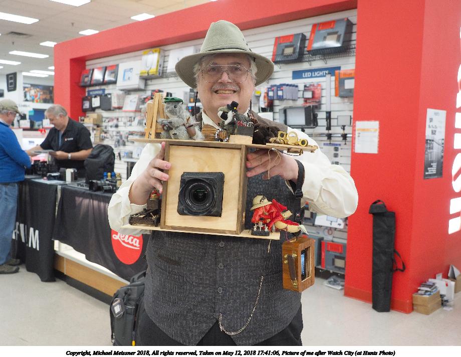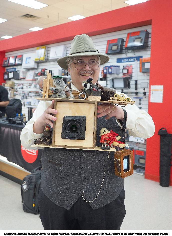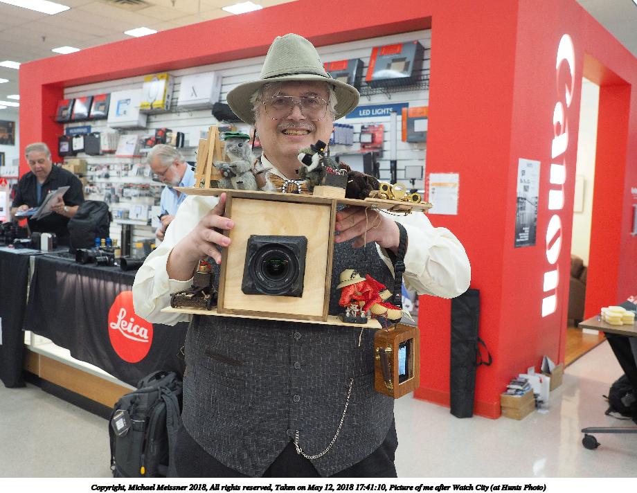 Picture #7: Picture of me after Watch City (at Hunts Photo) Small: 920x712, 127,524 bytes (125K), (html file) Large: 4600x3450, 10,662,766 bytes (11M), (html file) Copyright, Michael Meissner 2018, All rights reserved Olympus E-M1-I camera with Olympus-m43 12-40mm f/2.8 lens f/2.8, ISO 800, 1/60 sec, 18.0mm, auto mode, vivid color, SHQ, matrix metering, IS Auto, noise reduction auto, anti-shock 35mm equivalent focal length 36.0mm Programs used: crop, gimp Taken by Michael Meissner on May 12, 2018 17:41:06 Last modified on May 13, 2018 at 23:03 |