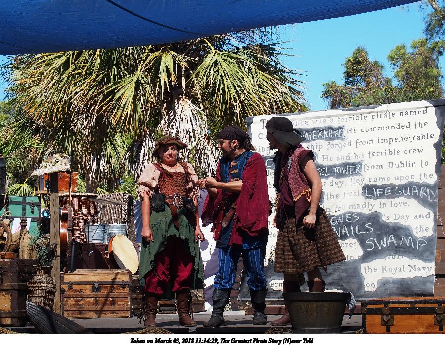 Picture #3: The Greatest Pirate Story (N)ever Told #3 Small: 900x698, 230,774 bytes (226K), (html file) Large: 3600x2700, 3,632,649 bytes (3.5M), (html file) Olympus Stylus-1 camera f/3.5, ISO 100, 1/640 sec, 26.2mm, auto mode, vivid color, SHQ, matrix metering, IS Auto, noise reduction auto, noise filter low 35mm equivalent focal length 124.0mm Programs used: crop, raw therapee Taken by Michael Meissner on March 03, 2018 11:13:21 Last modified on March 19, 2018 at 22:45 |