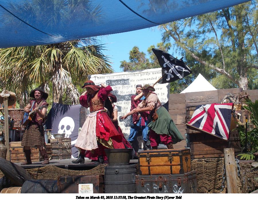 Picture #11: The Greatest Pirate Story (N)ever Told #11 Small: 900x698, 206,025 bytes (202K), (html file) Large: 3600x2700, 9,209,429 bytes (8.8M), (html file) Olympus Stylus-1 camera f/3.5, ISO 100, 1/800 sec, 13.2mm, auto mode, vivid color, SHQ, matrix metering, IS Auto, noise reduction auto, noise filter low 35mm equivalent focal length 62.0mm Programs used: crop, gimp Taken by Michael Meissner on March 03, 2018 11:37:58 Last modified on March 19, 2018 at 22:46 |