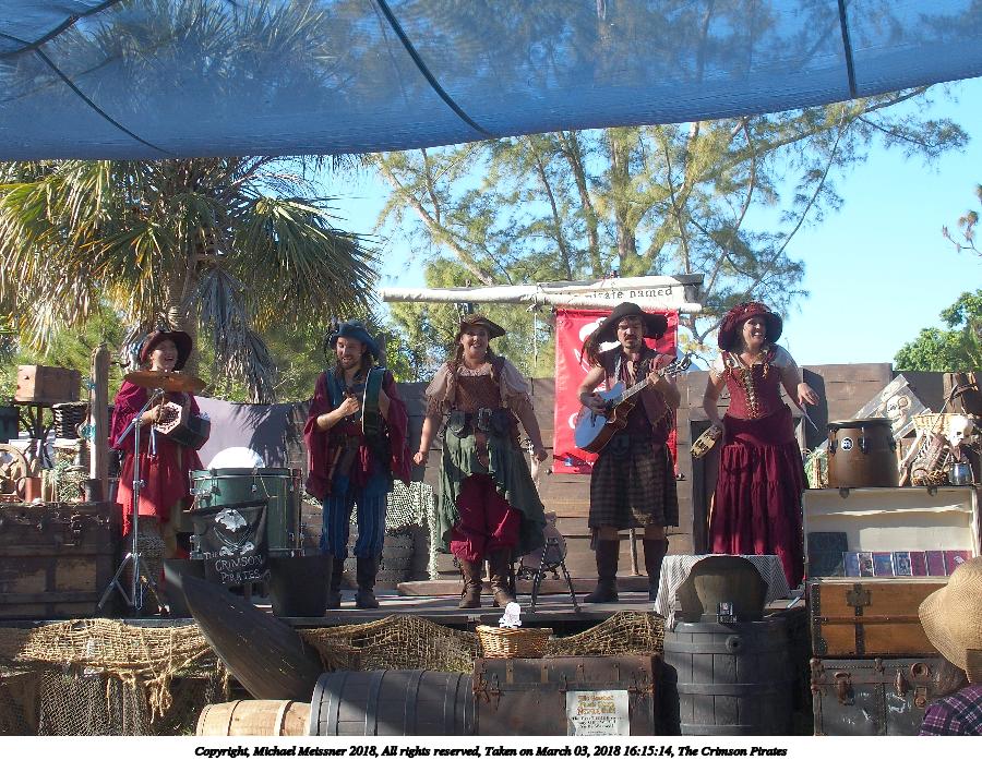 Picture #5: The Crimson Pirates #5 Small: 900x697, 193,439 bytes (189K), (html file) Large: 3600x2700, 9,955,523 bytes (9.5M), (html file) Copyright, Michael Meissner 2018, All rights reserved Olympus Stylus-1 camera f/3.5, ISO 100, 1/320 sec, 10.8mm, auto mode, vivid color, SHQ, matrix metering, IS Auto, noise reduction auto, noise filter low 35mm equivalent focal length 50.0mm Programs used: crop, gimp Taken by Michael Meissner on March 03, 2018 16:25:32 Last modified on March 20, 2018 at 08:18 |