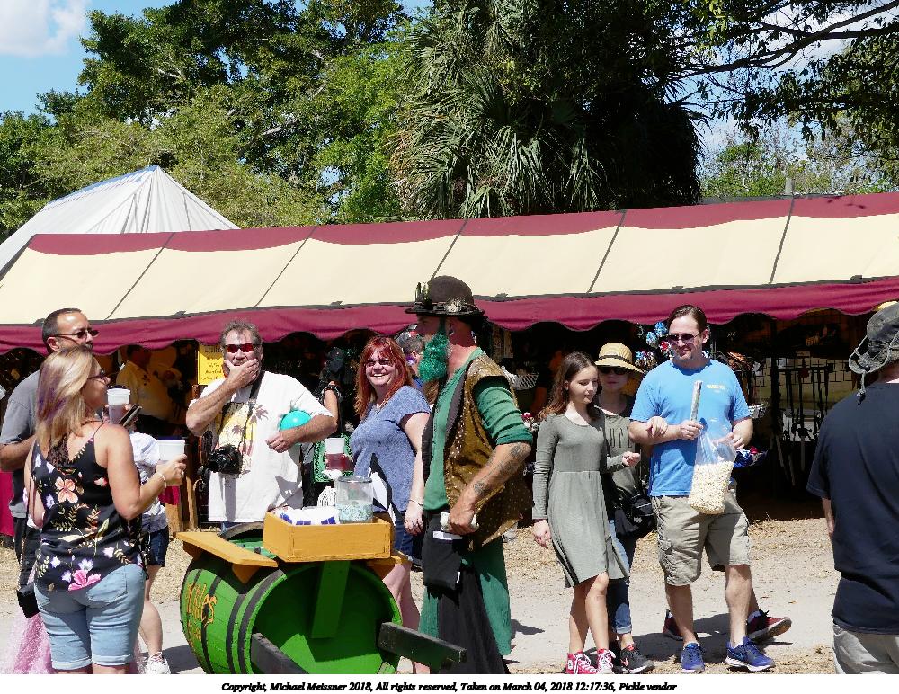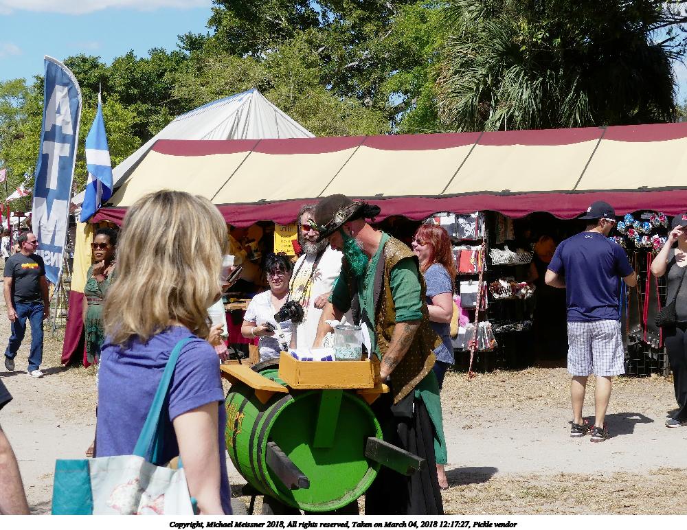 Picture #12: Pickle vendor Small: 1000x772, 246,187 bytes (241K), (html file) Large: 4000x3000, 10,550,157 bytes (11M), (html file) Copyright, Michael Meissner 2018, All rights reserved Panasonic FZ300 camera f/4.0, ISO 100, 1/1300 sec, 12.5mm, auto mode, auto wb (5300), matrix metering, image stabilization, normal color mode 35mm equivalent focal length 70.0mm Programs used: gimp, raw therapee Taken by Michael Meissner on March 04, 2018 12:17:27 Last modified on March 22, 2018 at 09:23 |