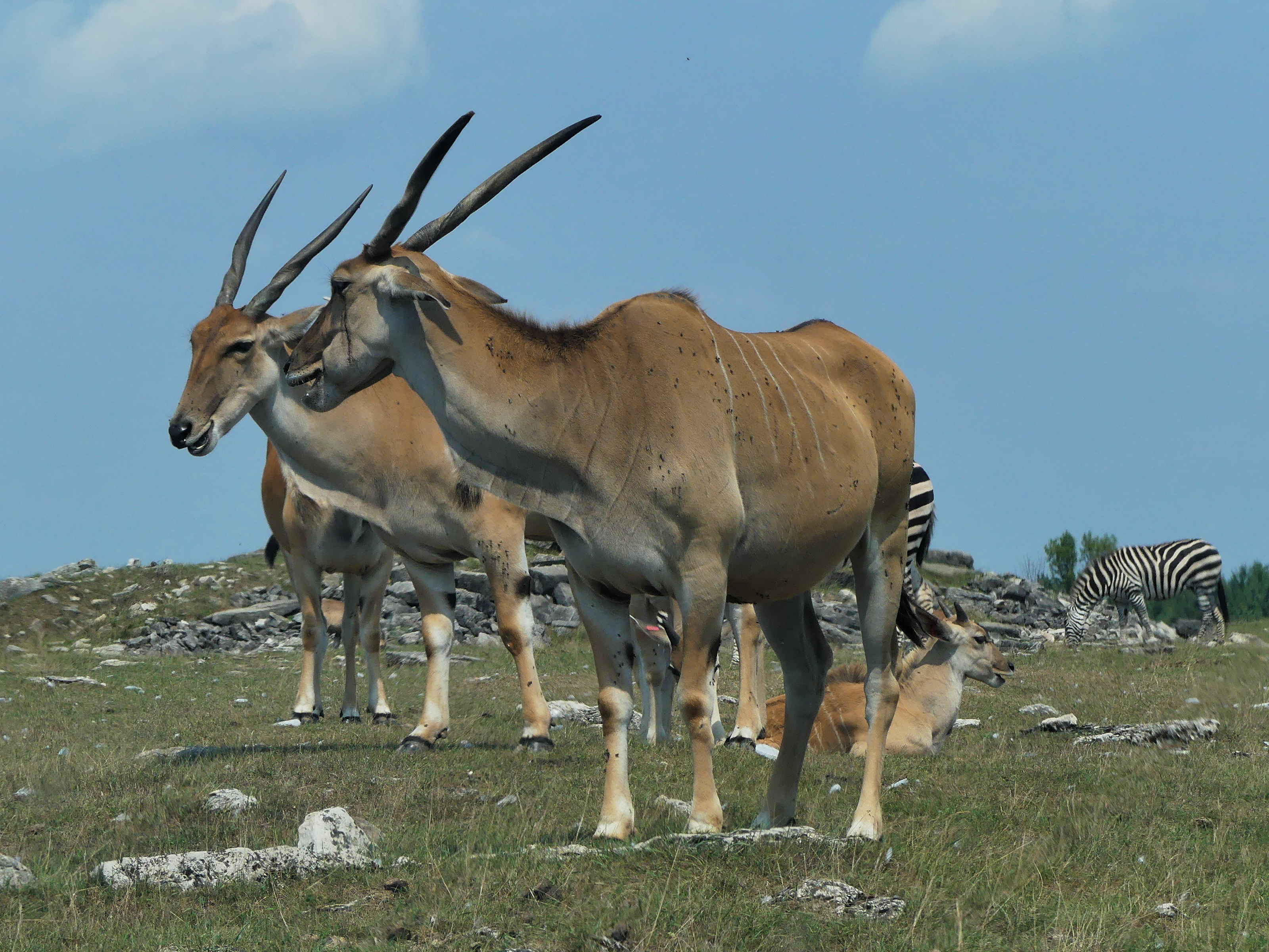 Picture #83: Eland Small: 1000x772, 151,937 bytes (149K), (html file) Large: 4000x3000, 3,095,006 bytes (3.0M), (html file) Copyright, Michael Meissner 2018, All rights reserved Panasonic FZ300 camera f/4.0, ISO 100, 1/1300 sec, 43.3mm, auto mode, auto wb (5000), matrix metering, image stabilization, normal color mode 35mm equivalent focal length 240.0mm Programs used: raw therapee Taken by Michael Meissner on August 06, 2018 11:57:15 Last modified on September 19, 2018 at 22:27 |
