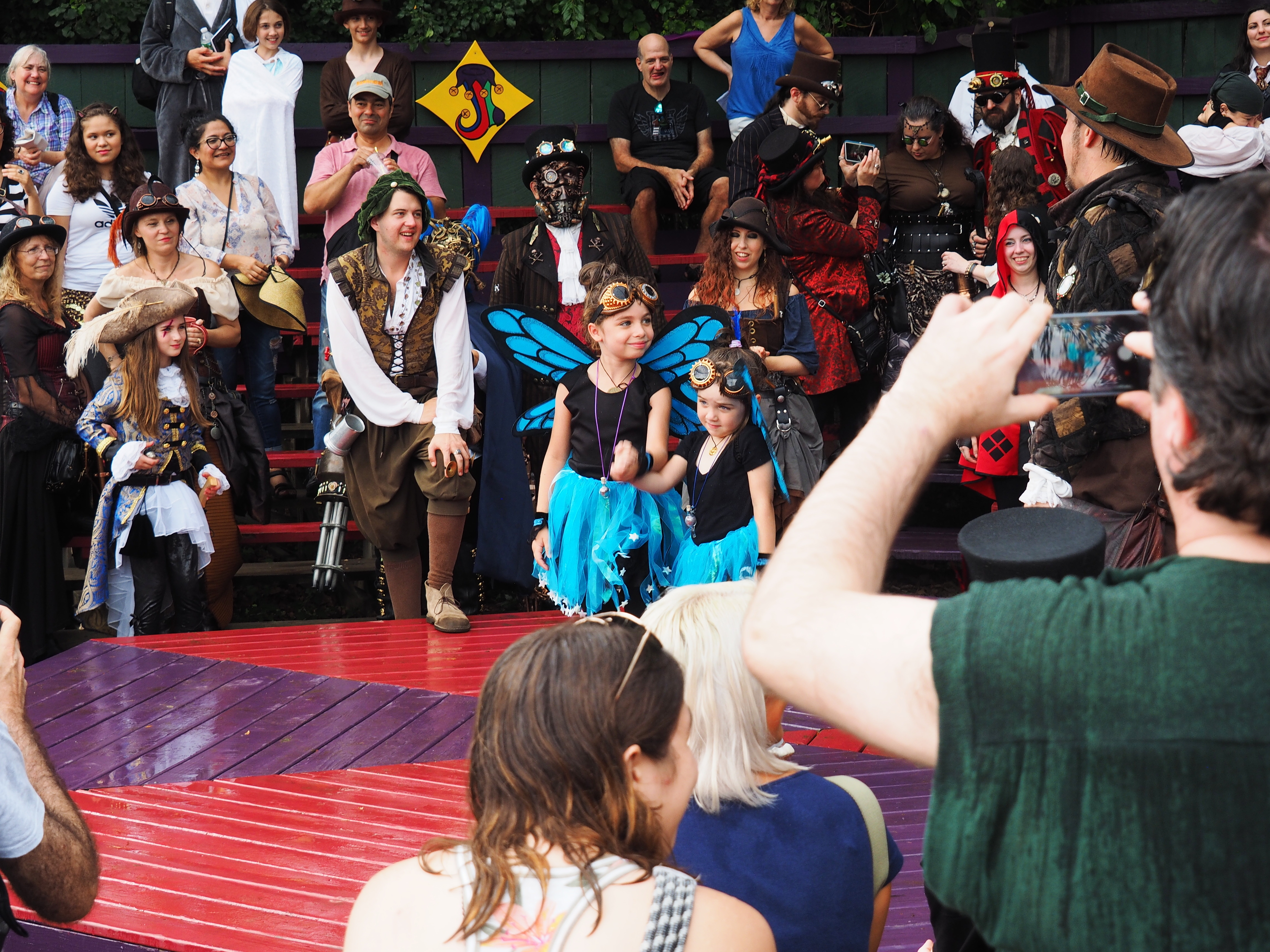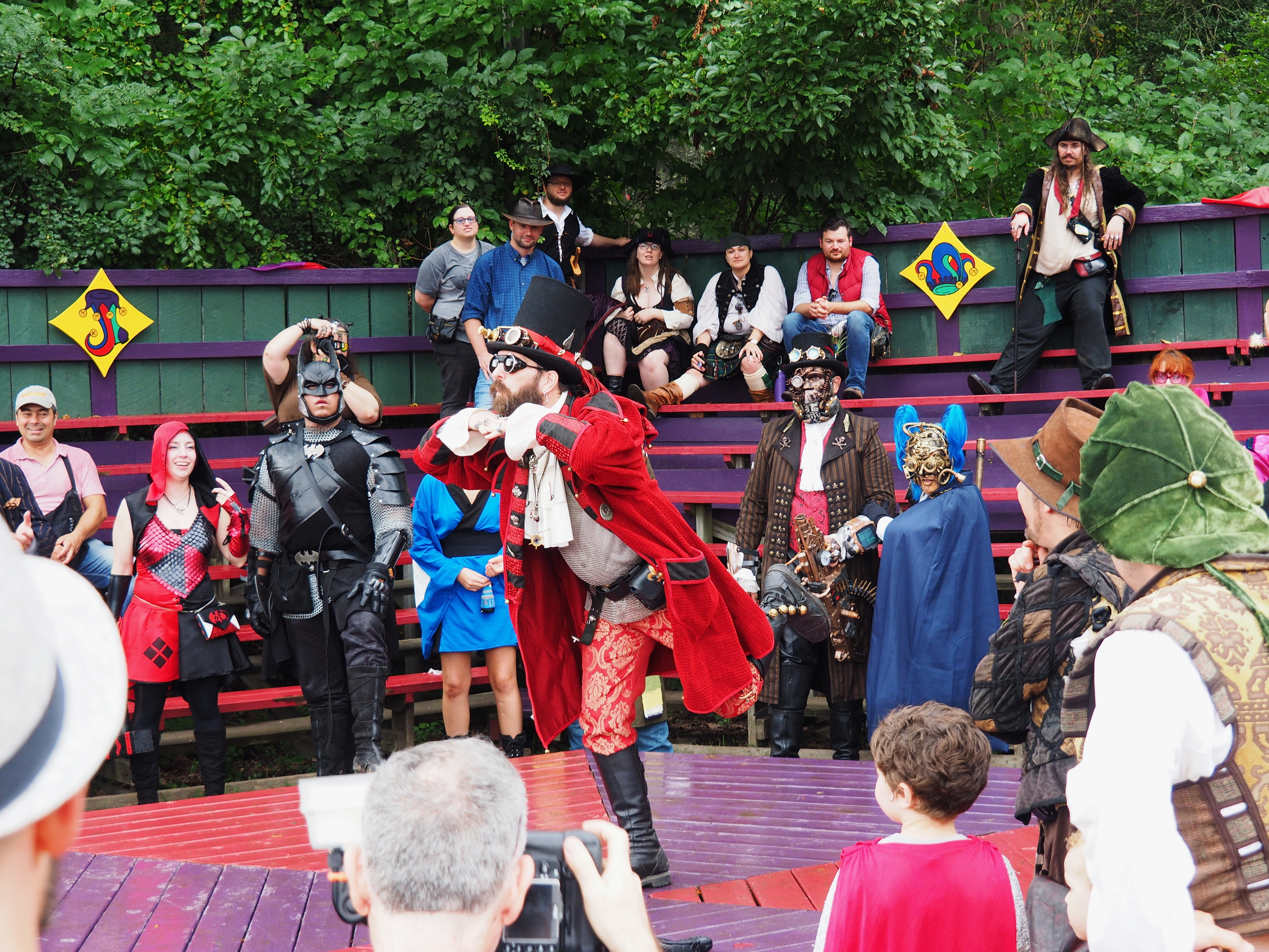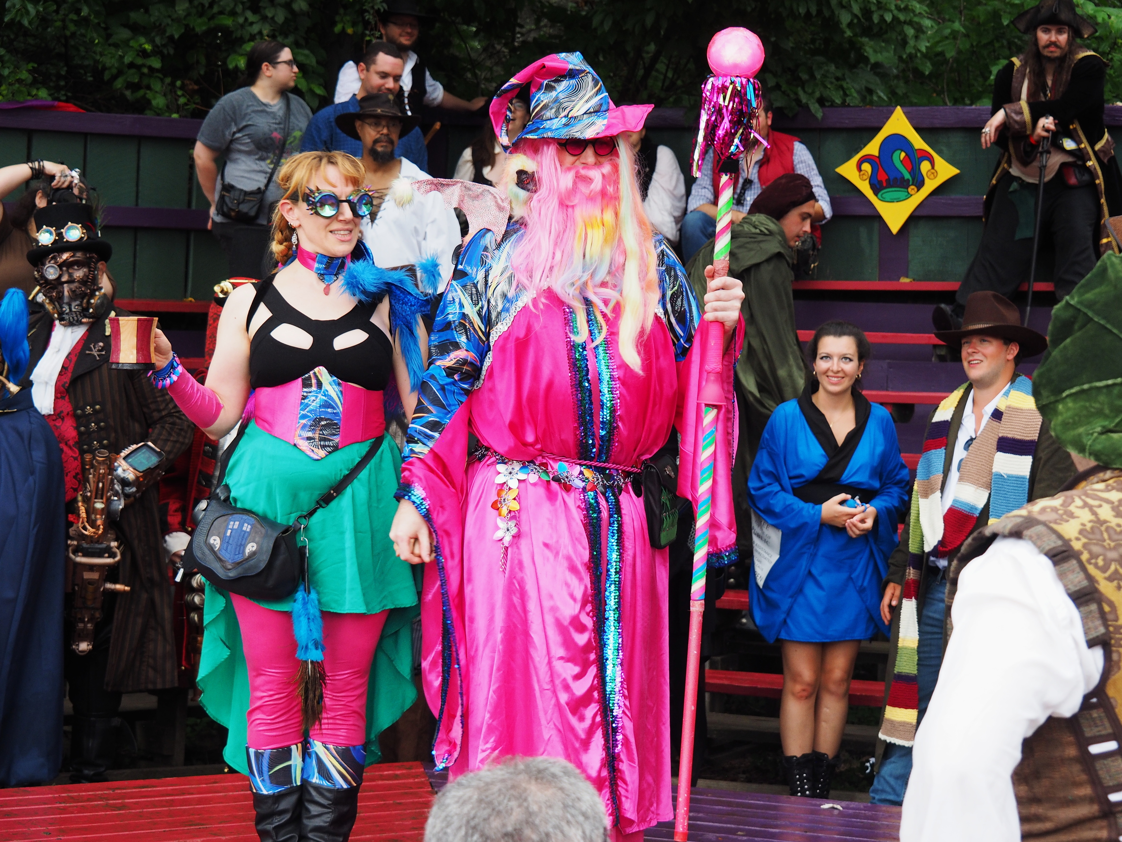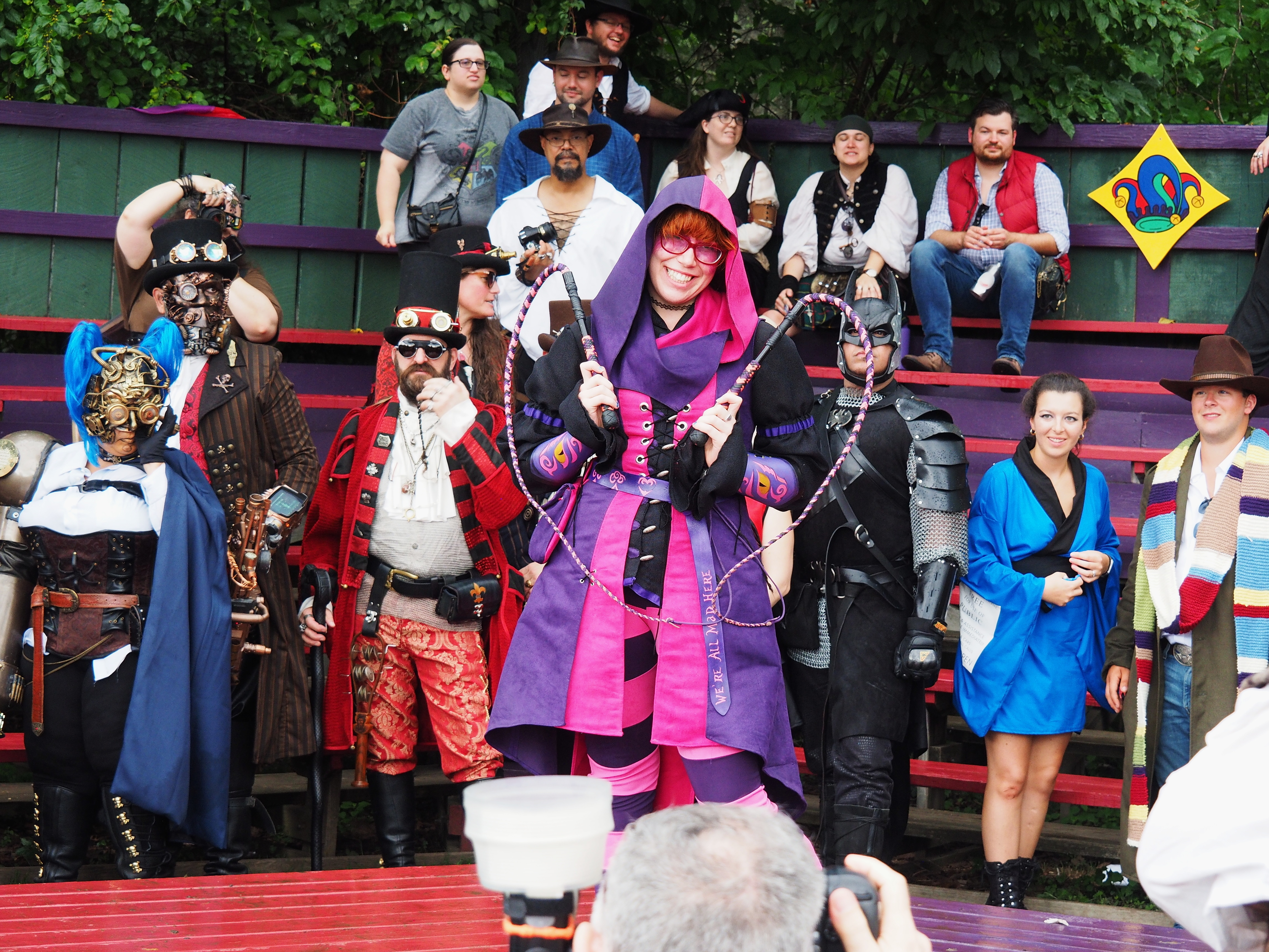 The theme for the weekend was time travelers weekend, and there was a patron costume contest in the afternoon. I carried my smaller steampunk camera box to the faire with the Olympus E-m5 mark I and Olympus 12-50mm lens inside. It was rather wet on the second day.