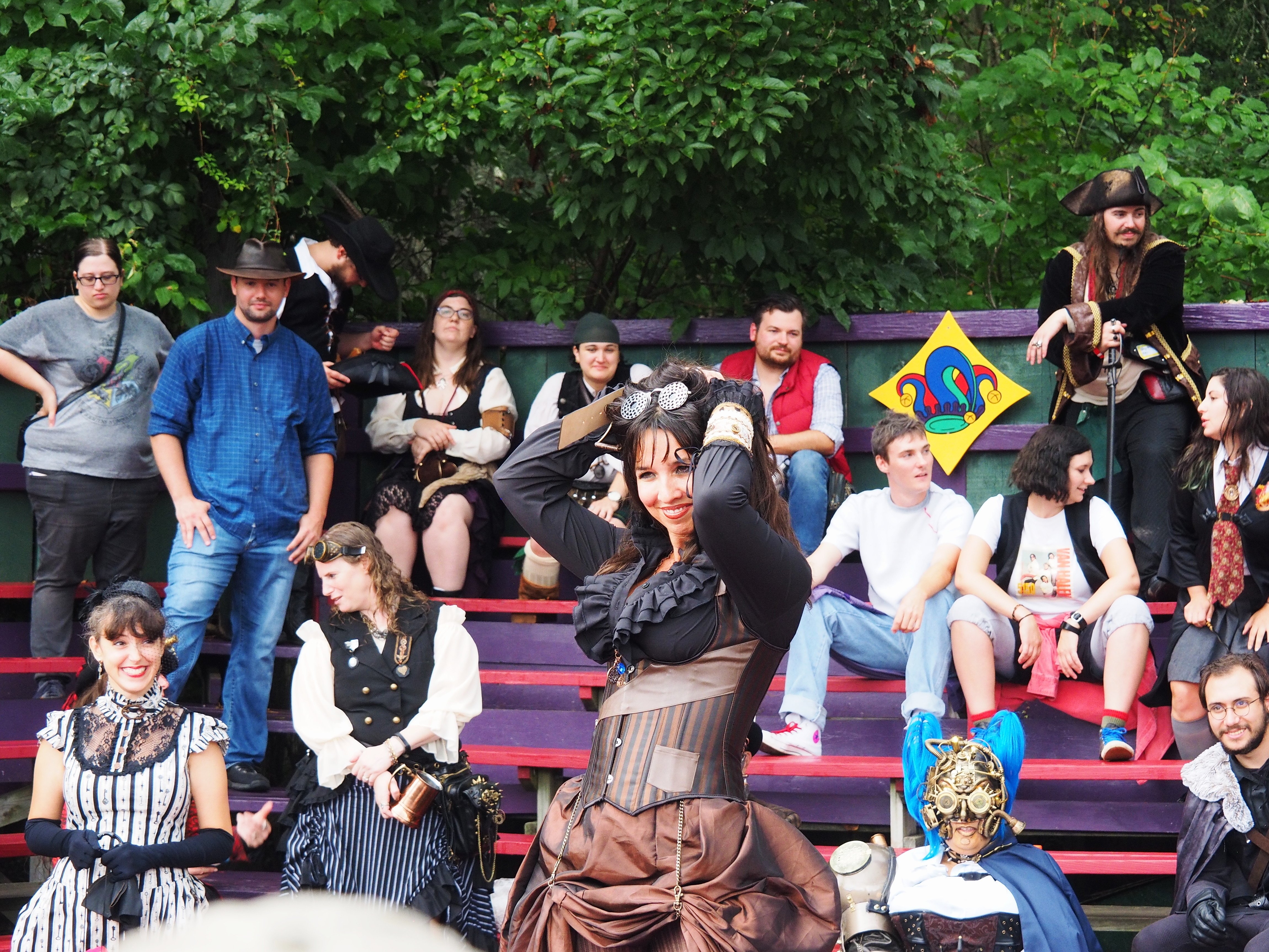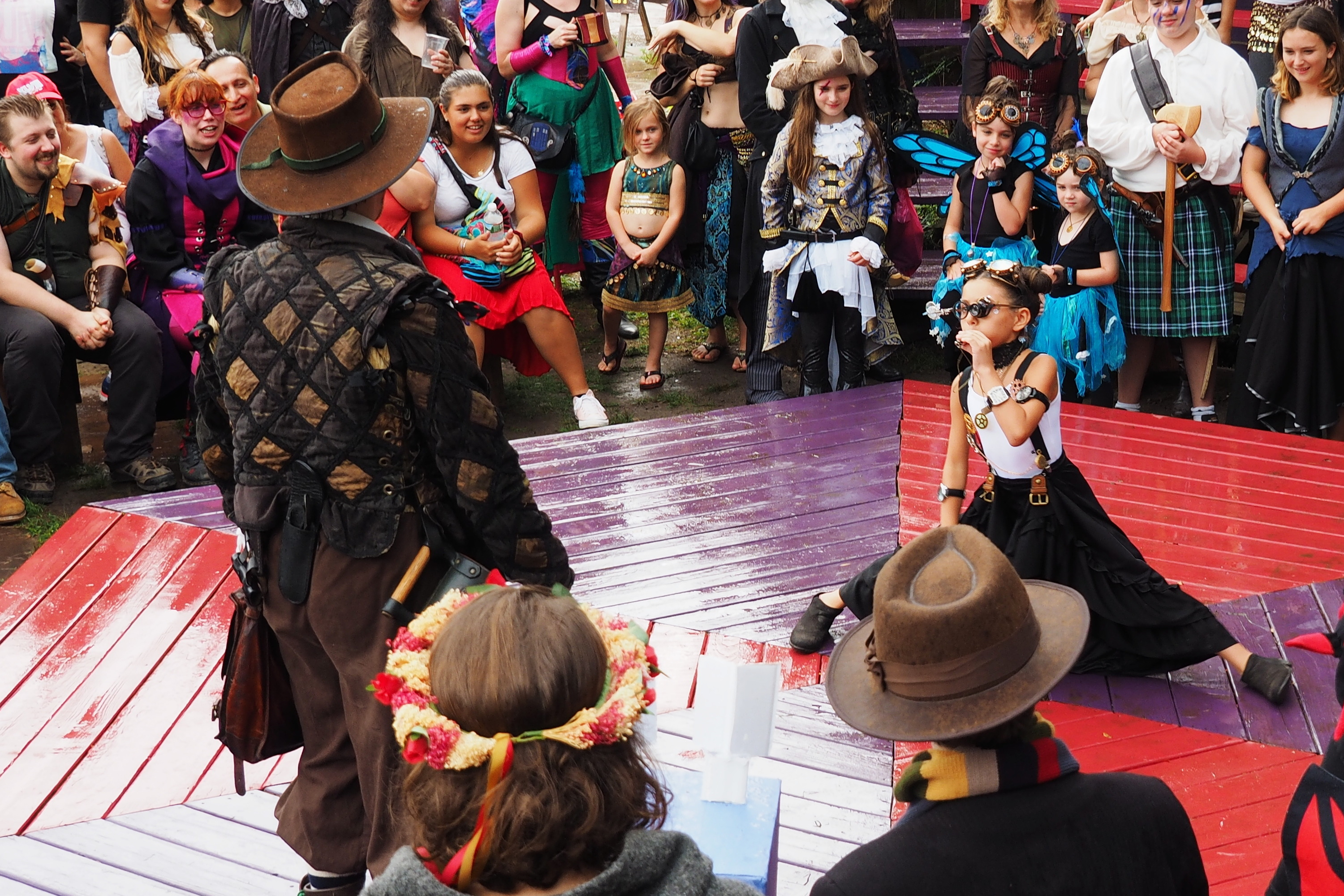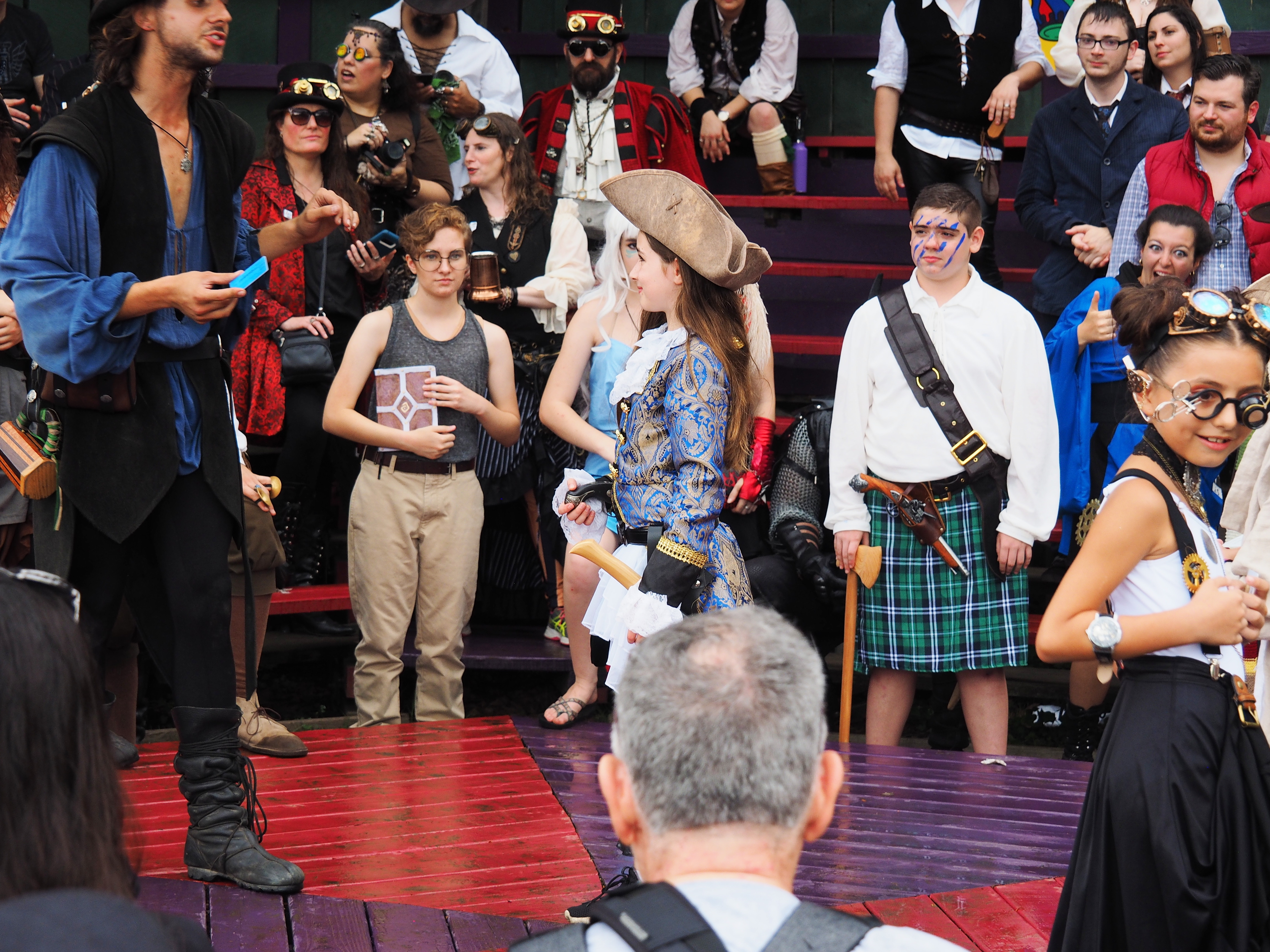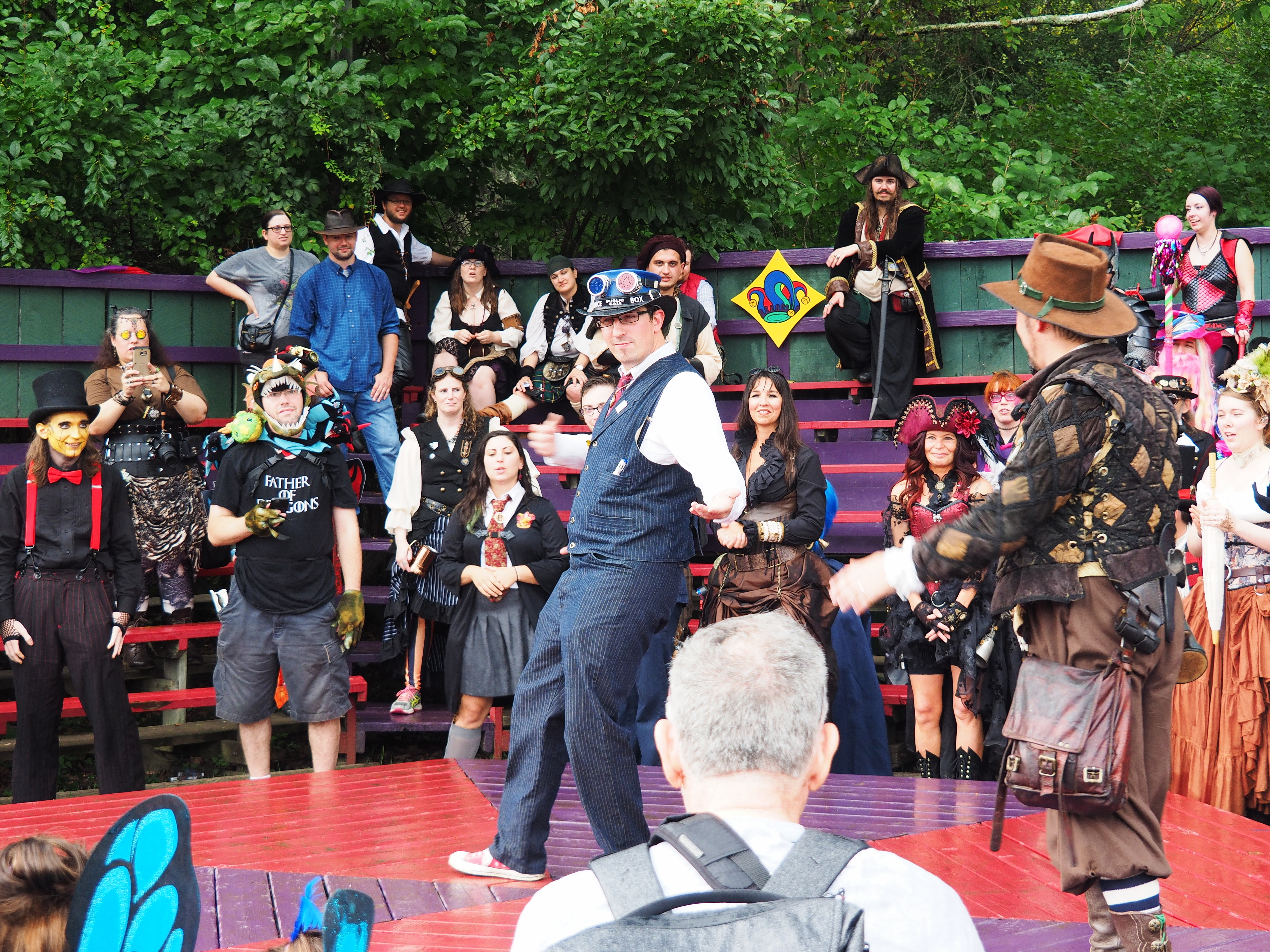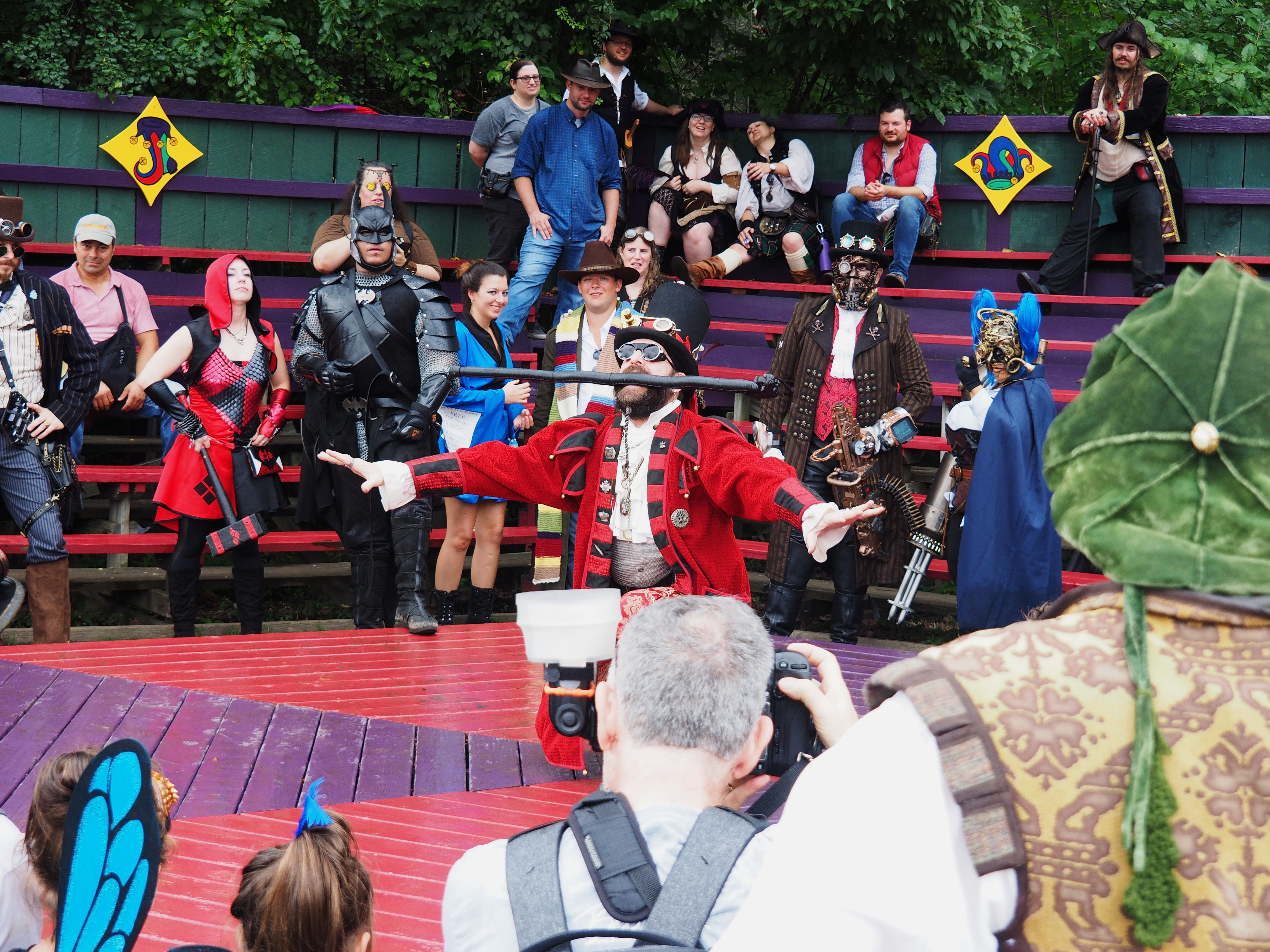 The theme for the weekend was time travelers weekend, and there was a patron costume contest in the afternoon. I carried my smaller steampunk camera box to the faire with the Olympus E-m5 mark I and Olympus 12-50mm lens inside. It was rather wet on the second day.