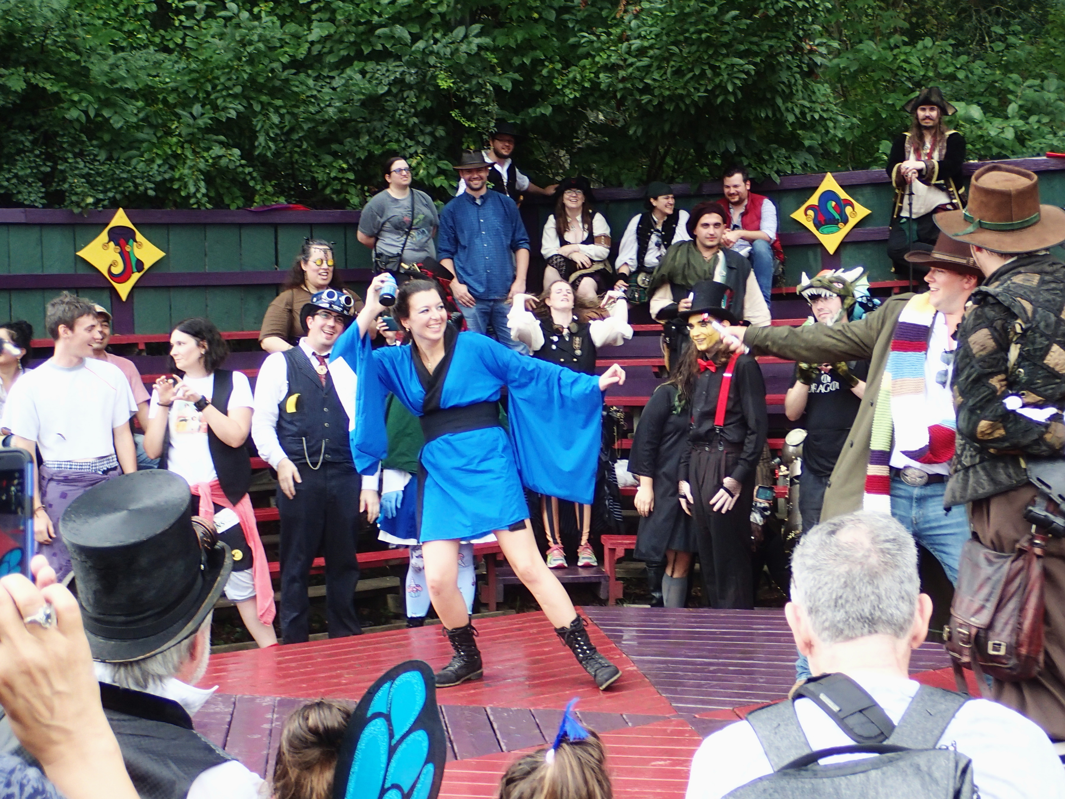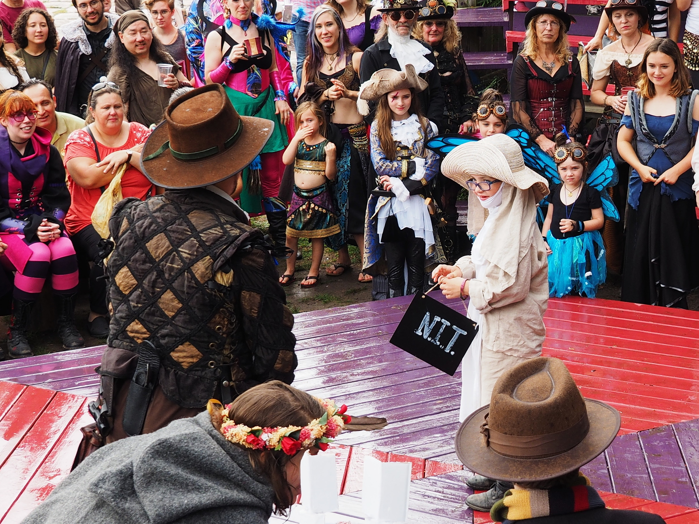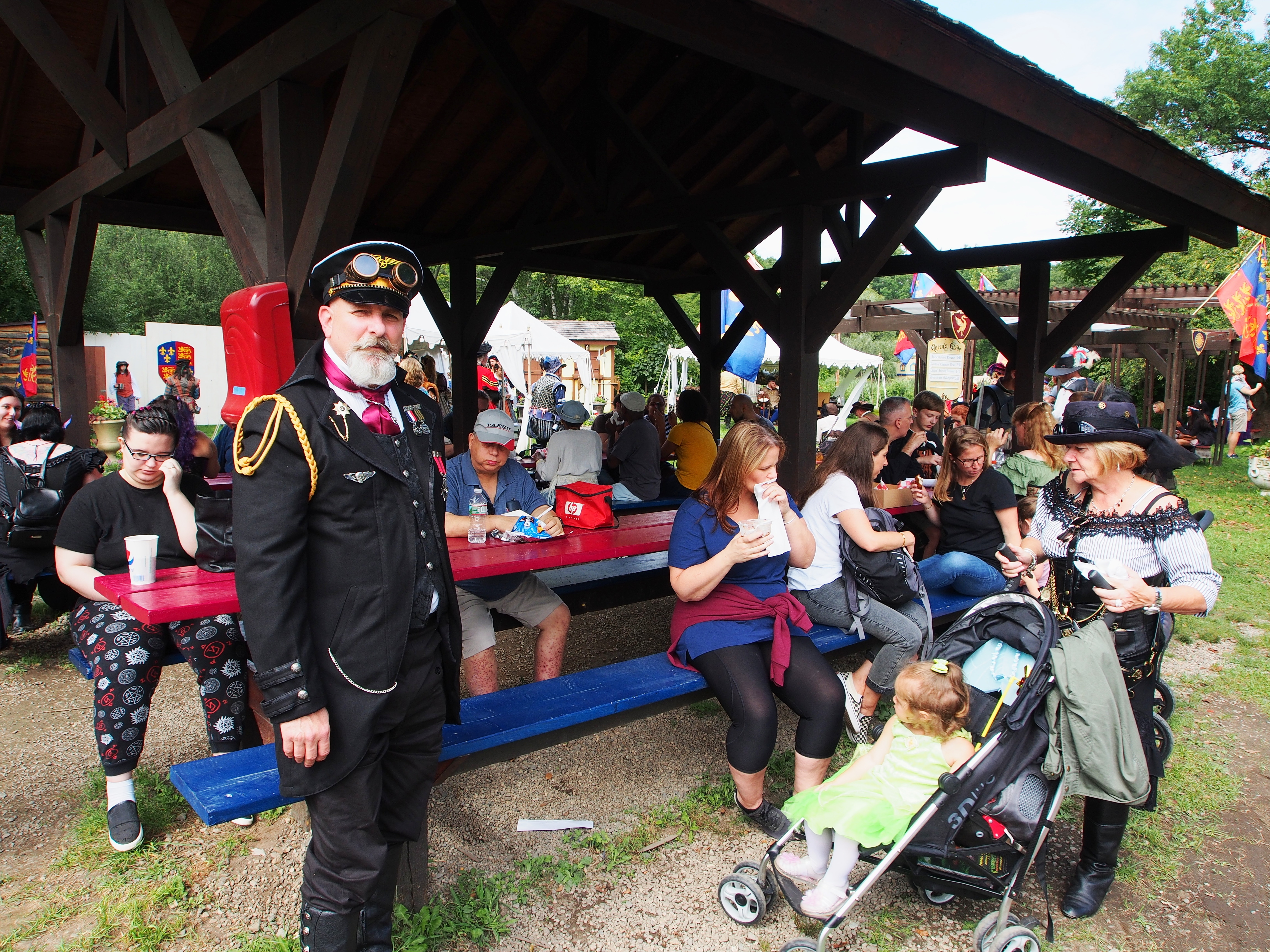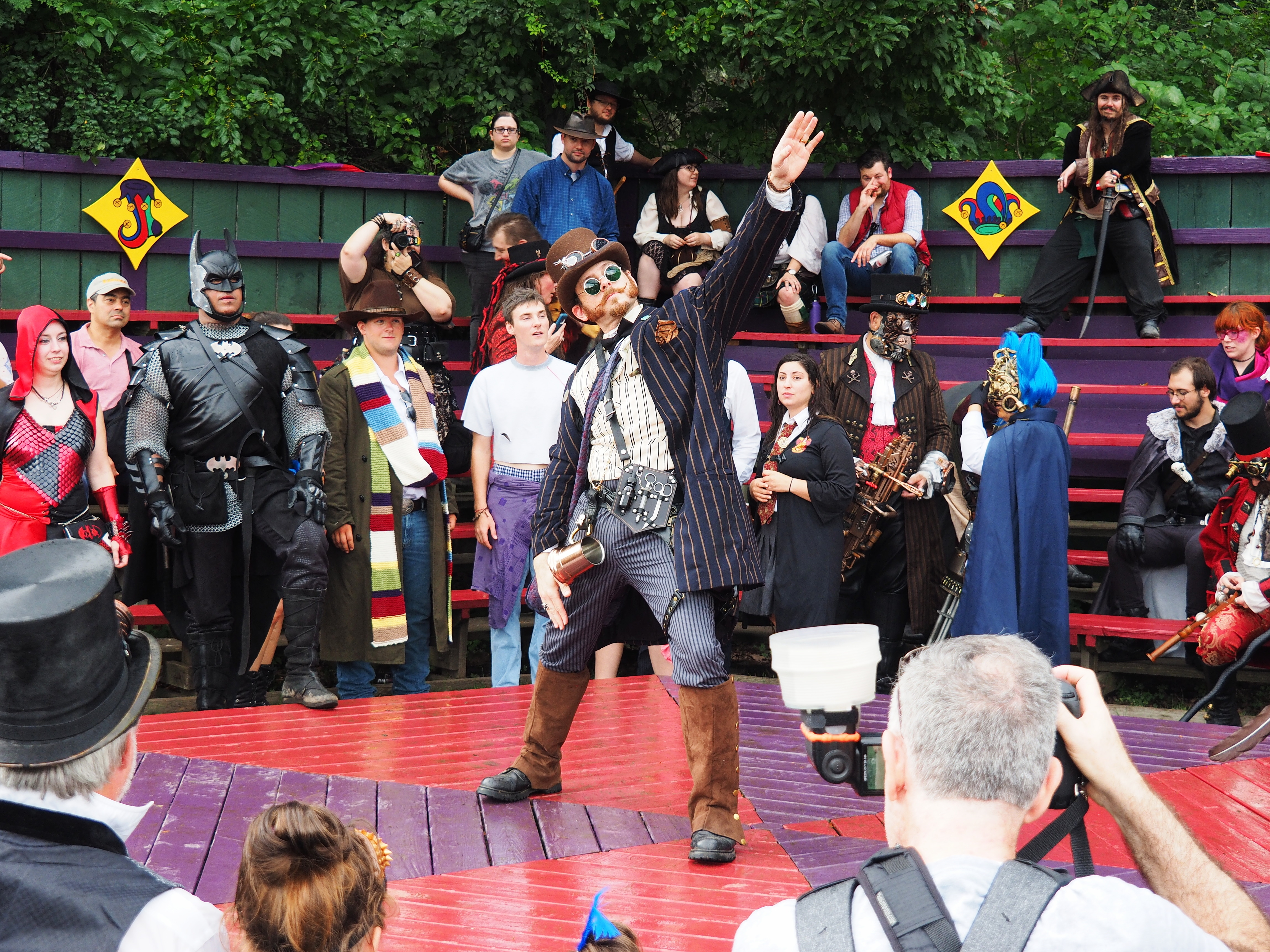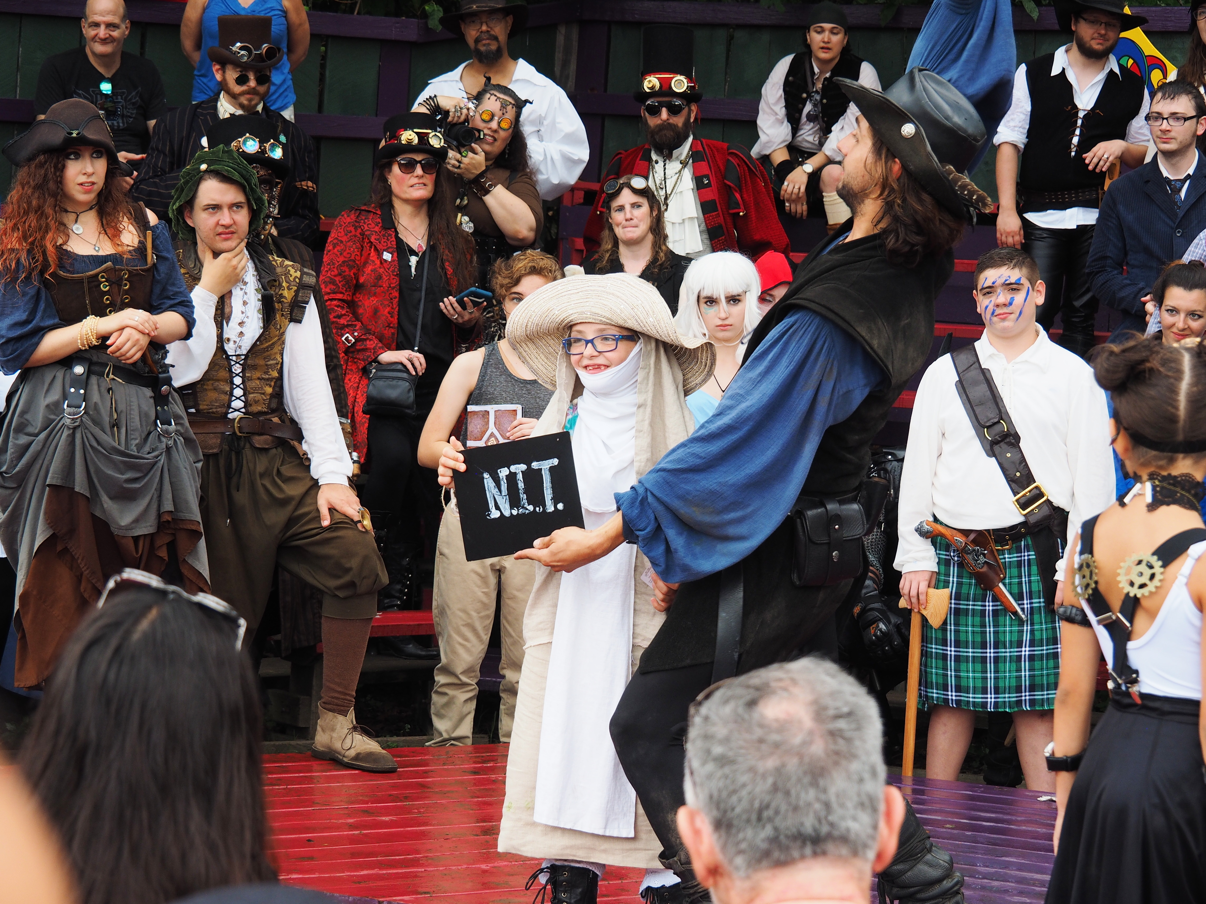The theme for the weekend was time travelers weekend, and there was a patron costume contest in the afternoon. I carried my smaller steampunk camera box to the faire with the Olympus E-m5 mark I and Olympus 12-50mm lens inside. It was rather wet on the second day.