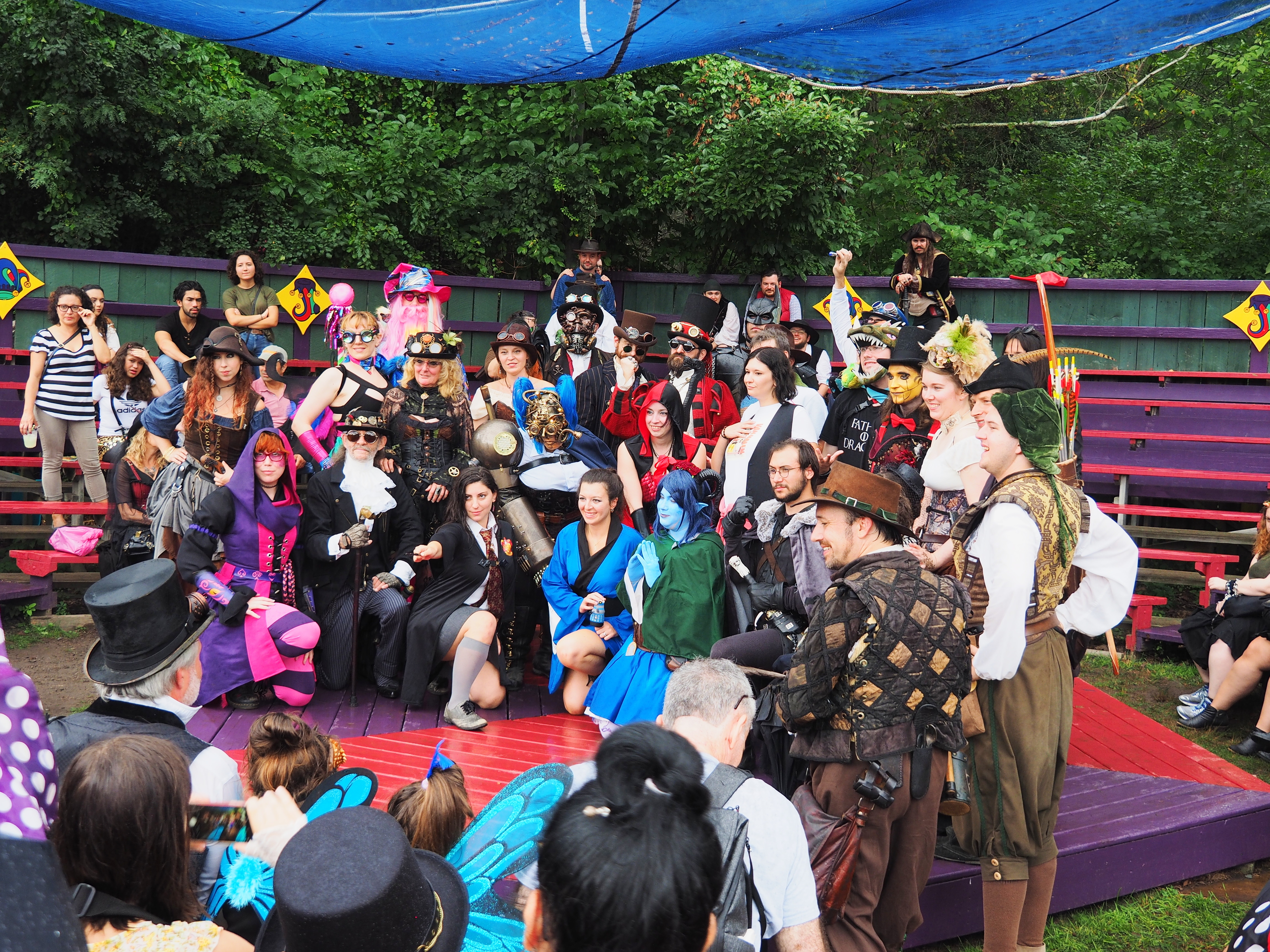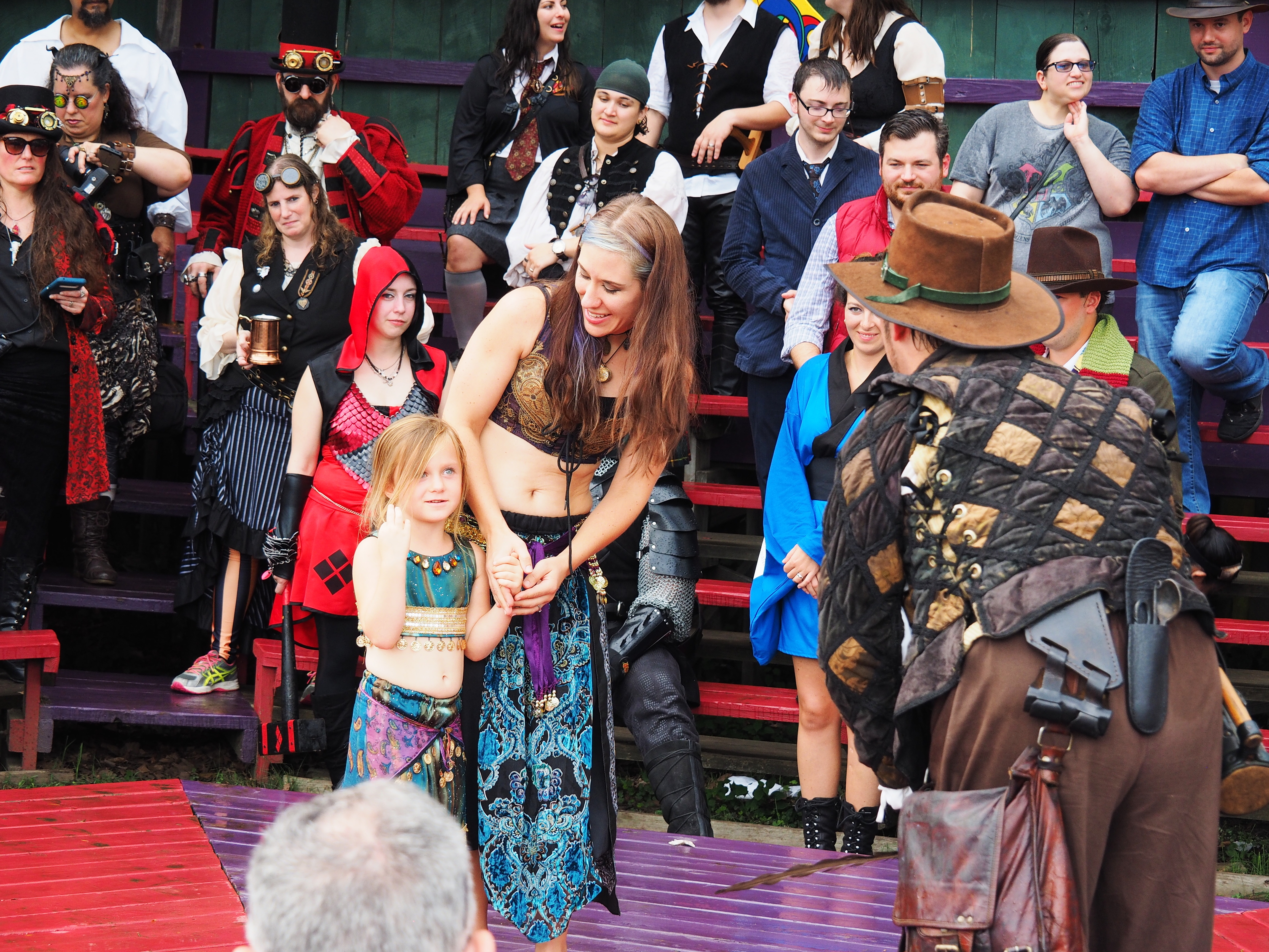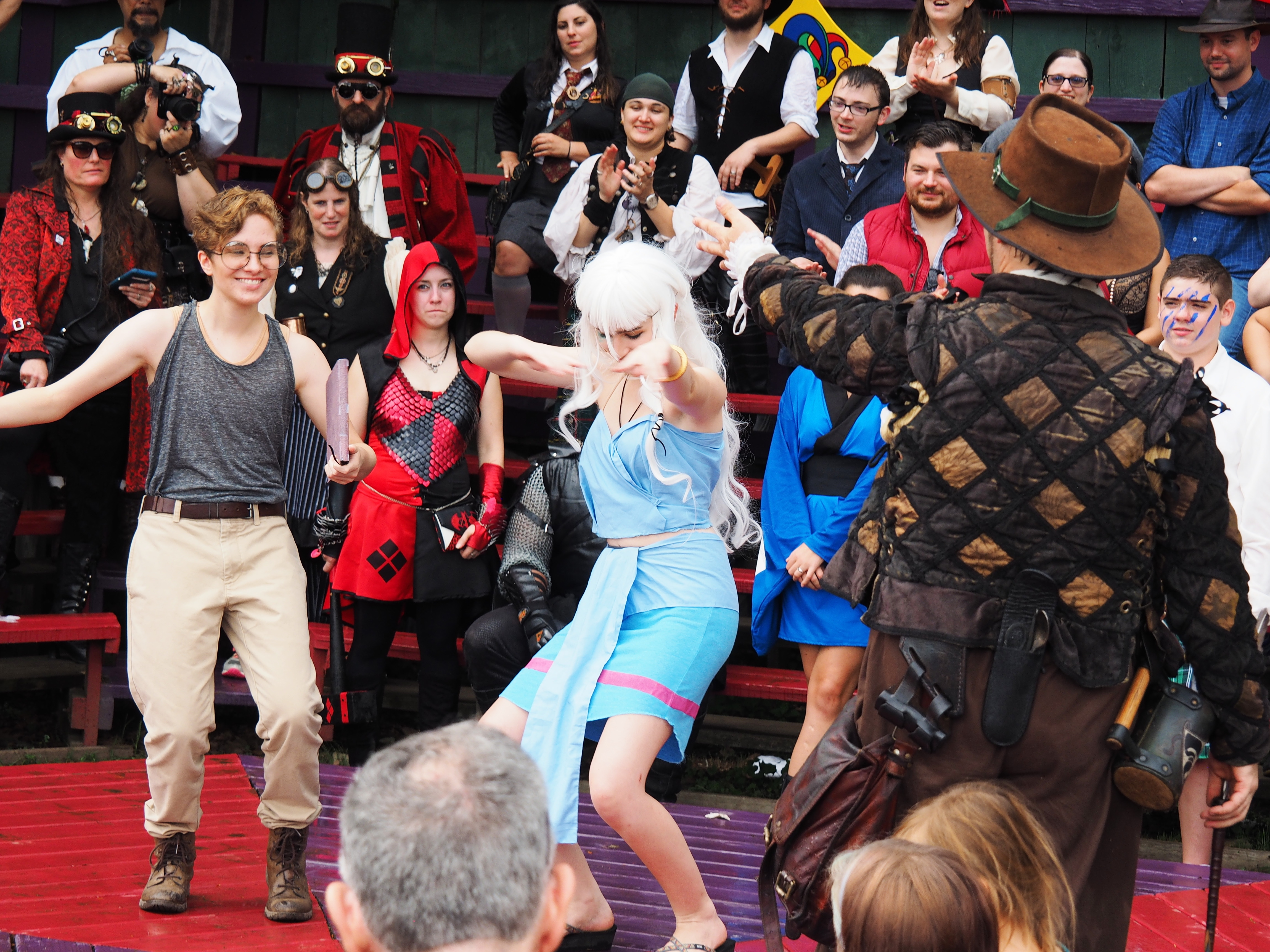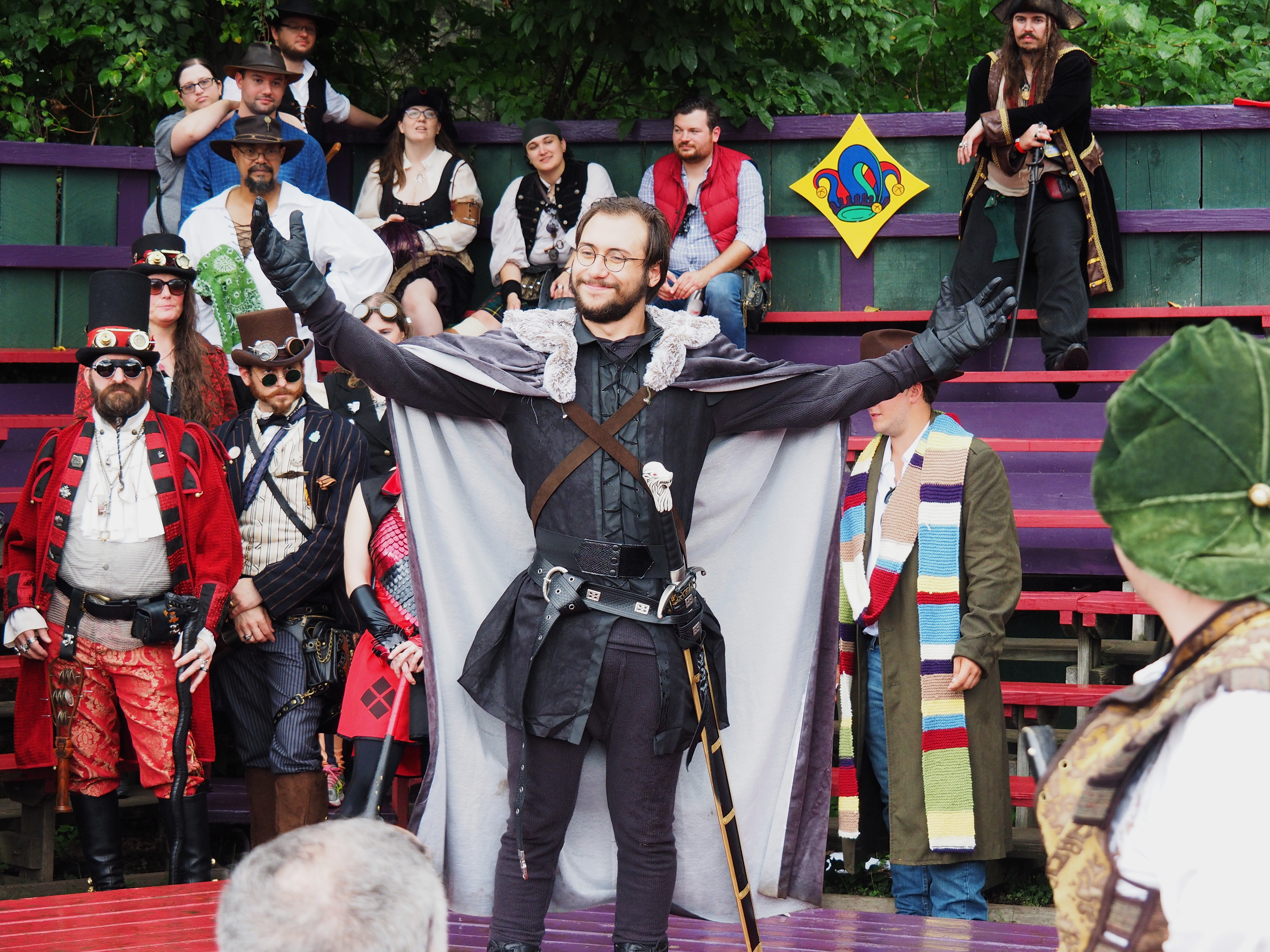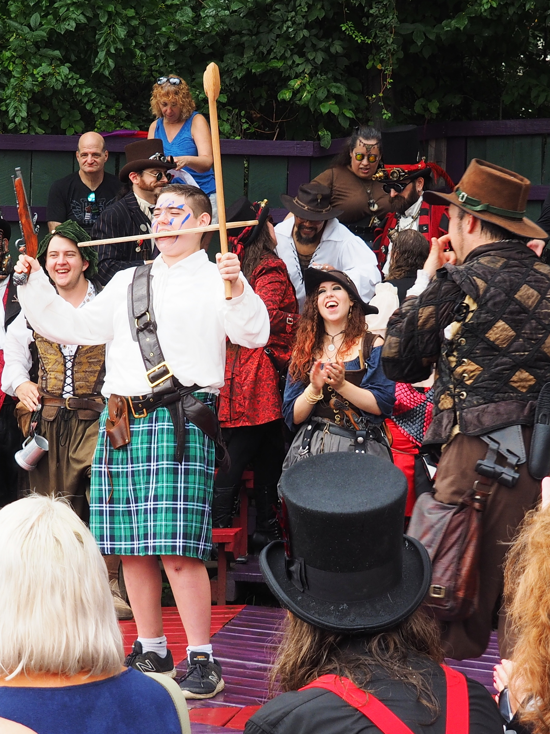 The theme for the weekend was time travelers weekend, and there was a patron costume contest in the afternoon. I carried my smaller steampunk camera box to the faire with the Olympus E-m5 mark I and Olympus 12-50mm lens inside. It was rather wet on the second day.