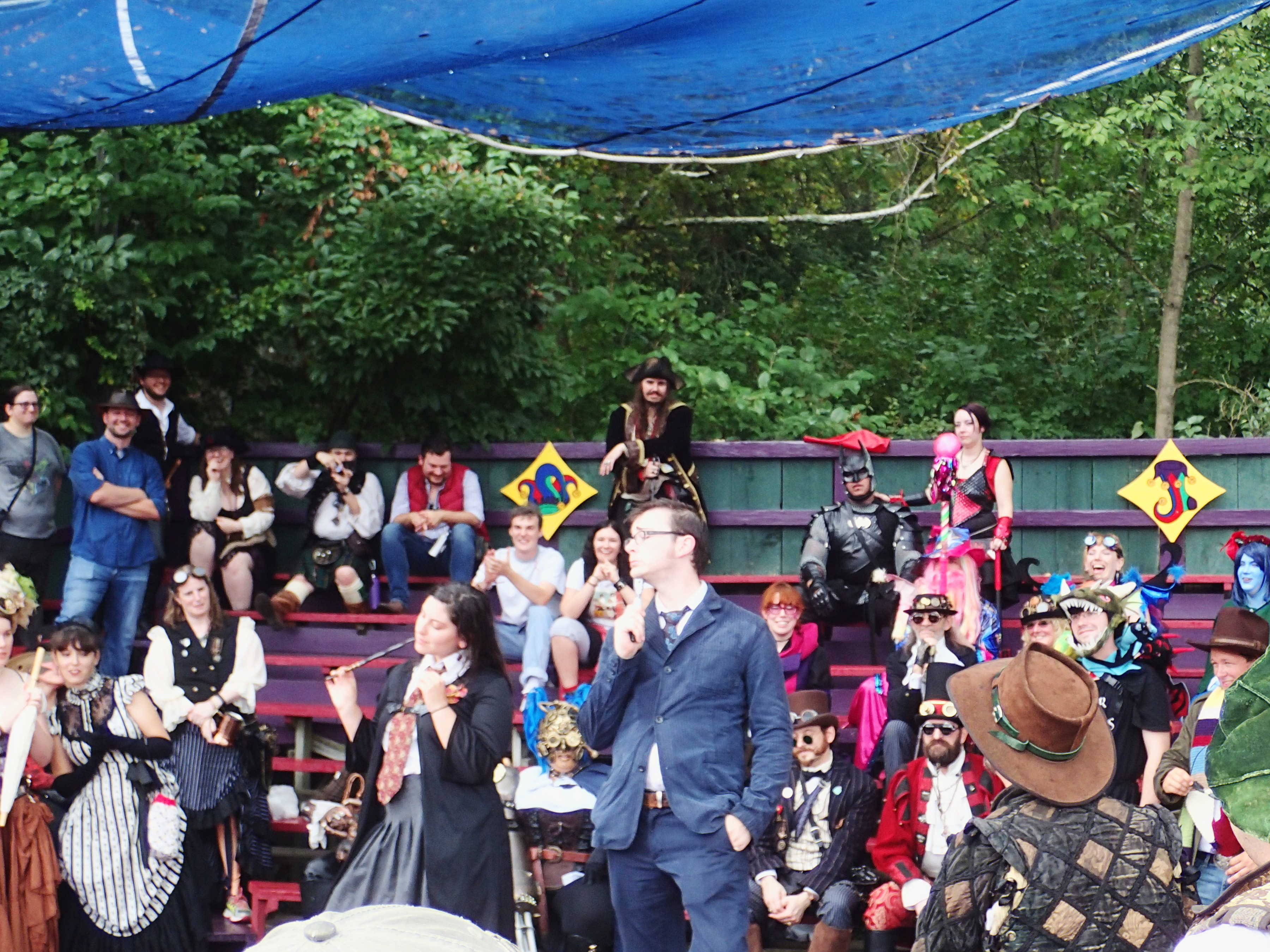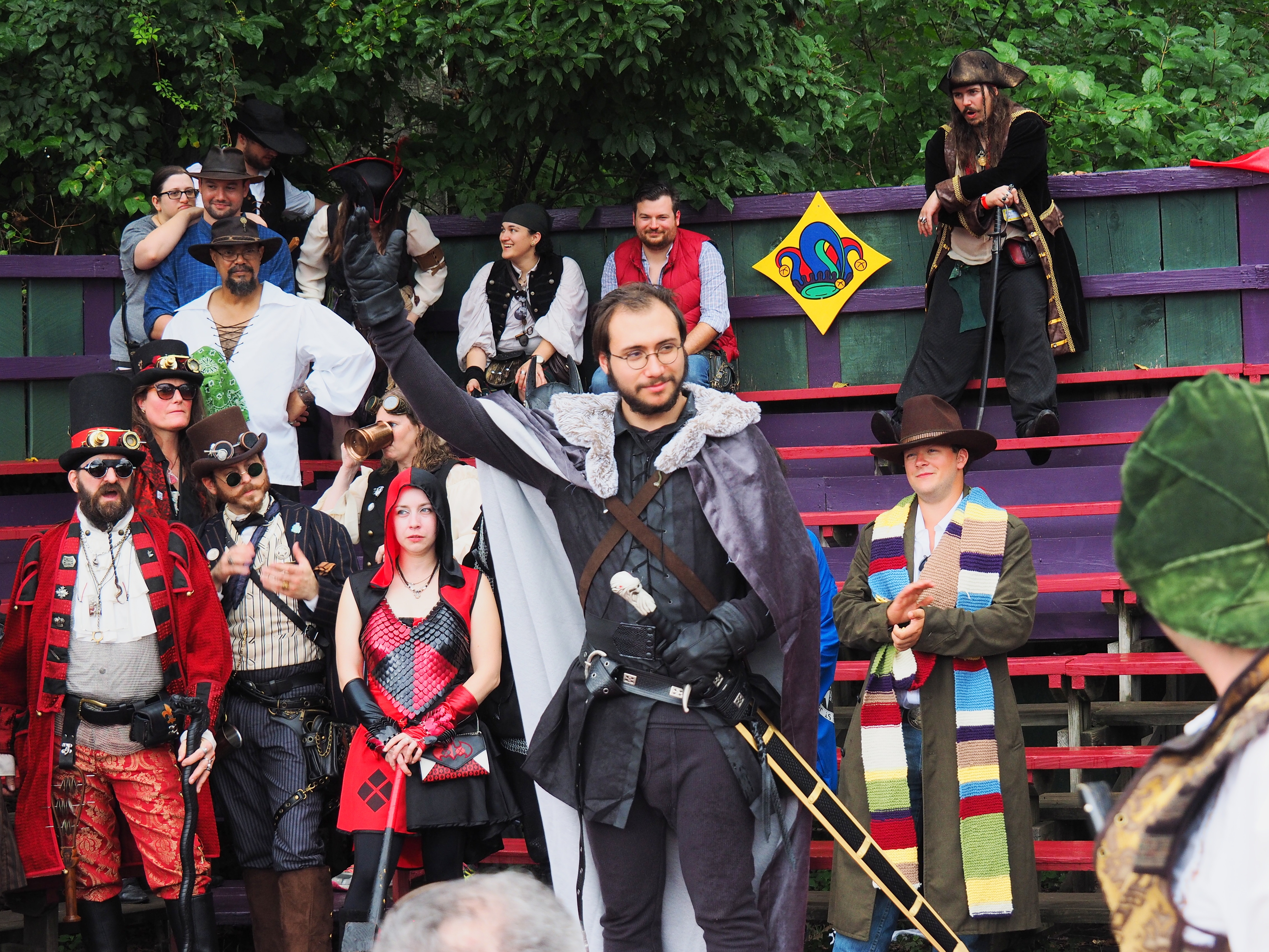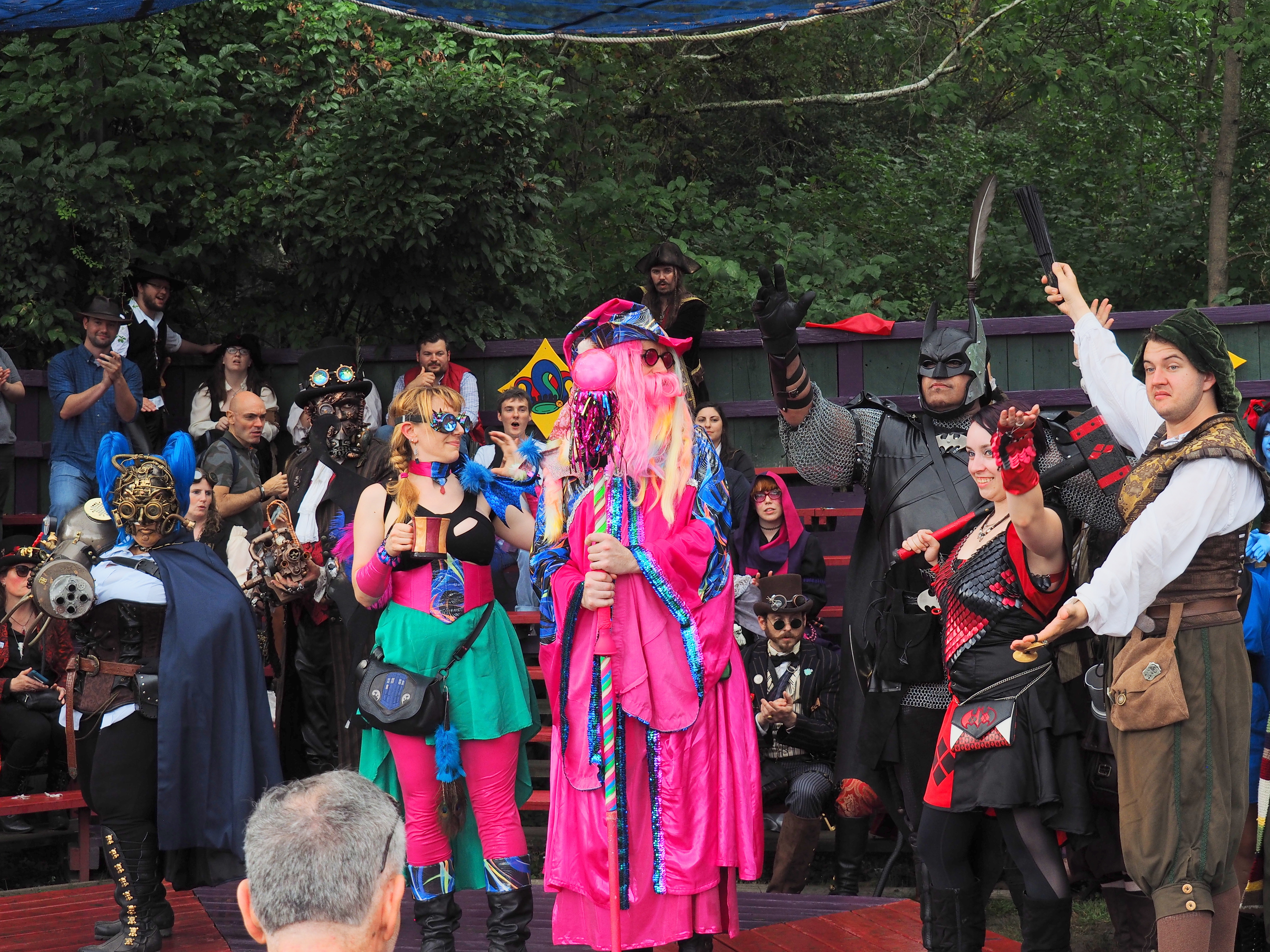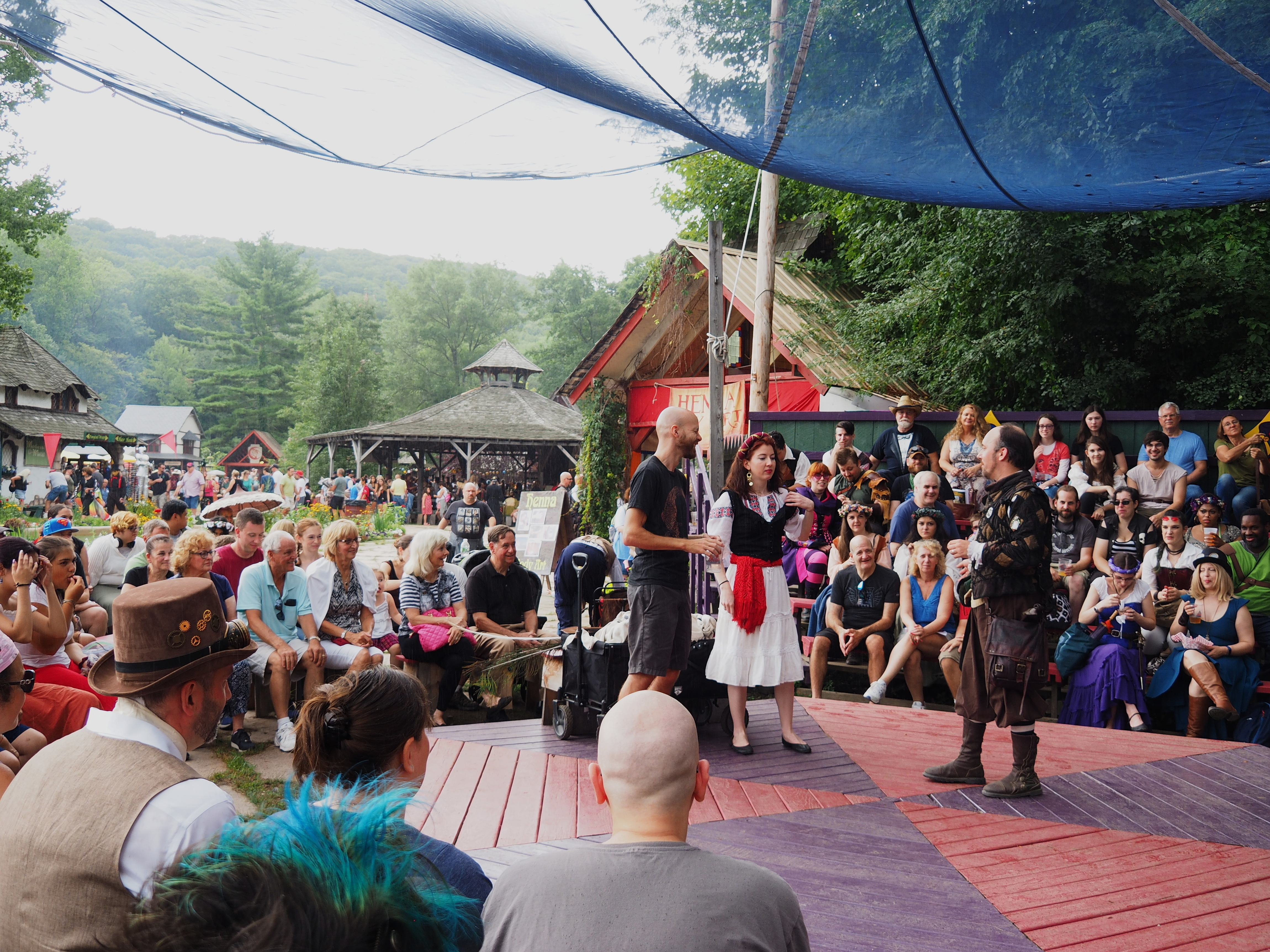 The theme for the weekend was time travelers weekend, and there was a patron costume contest in the afternoon. I carried my smaller steampunk camera box to the faire with the Olympus E-m5 mark I and Olympus 12-50mm lens inside. It was rather wet on the second day.