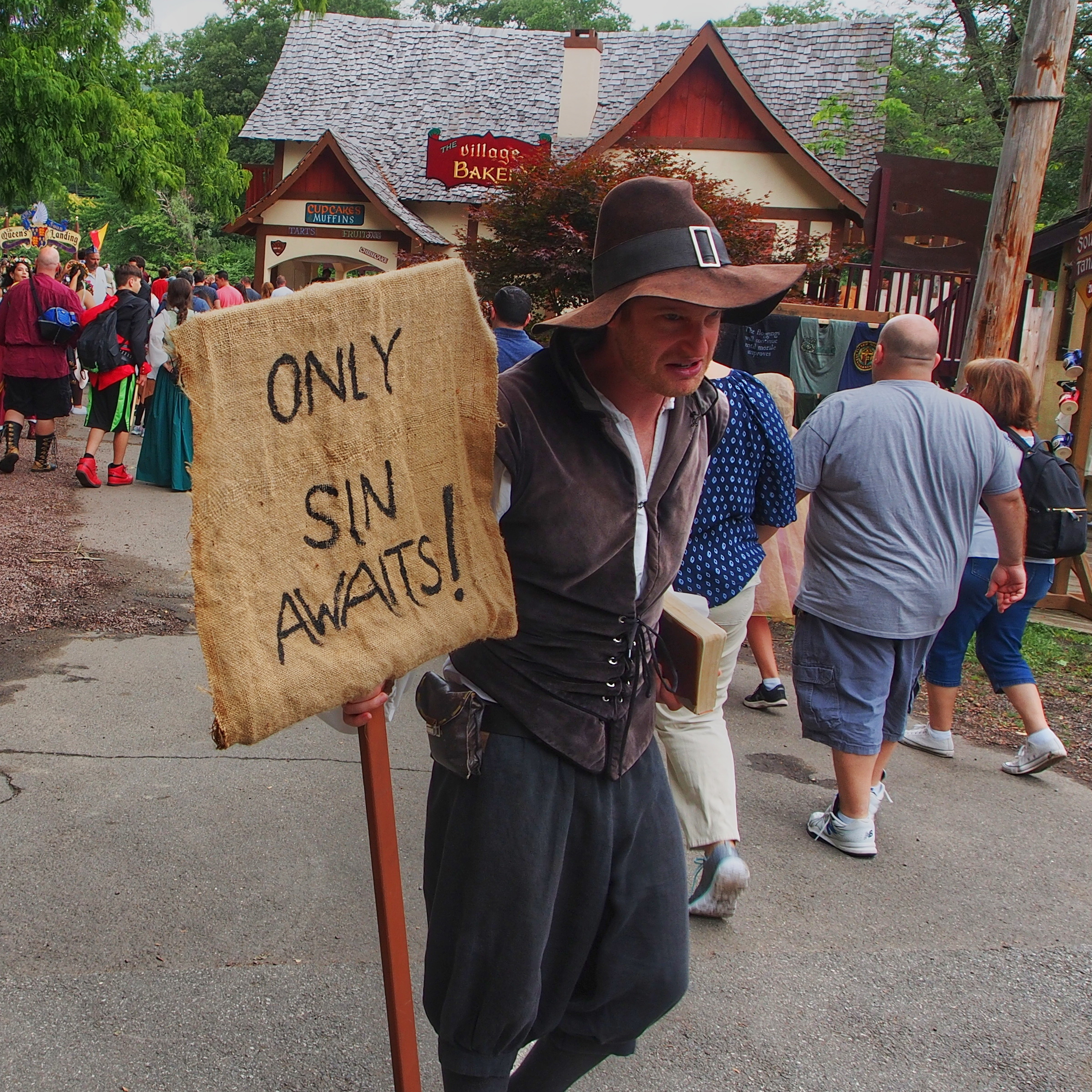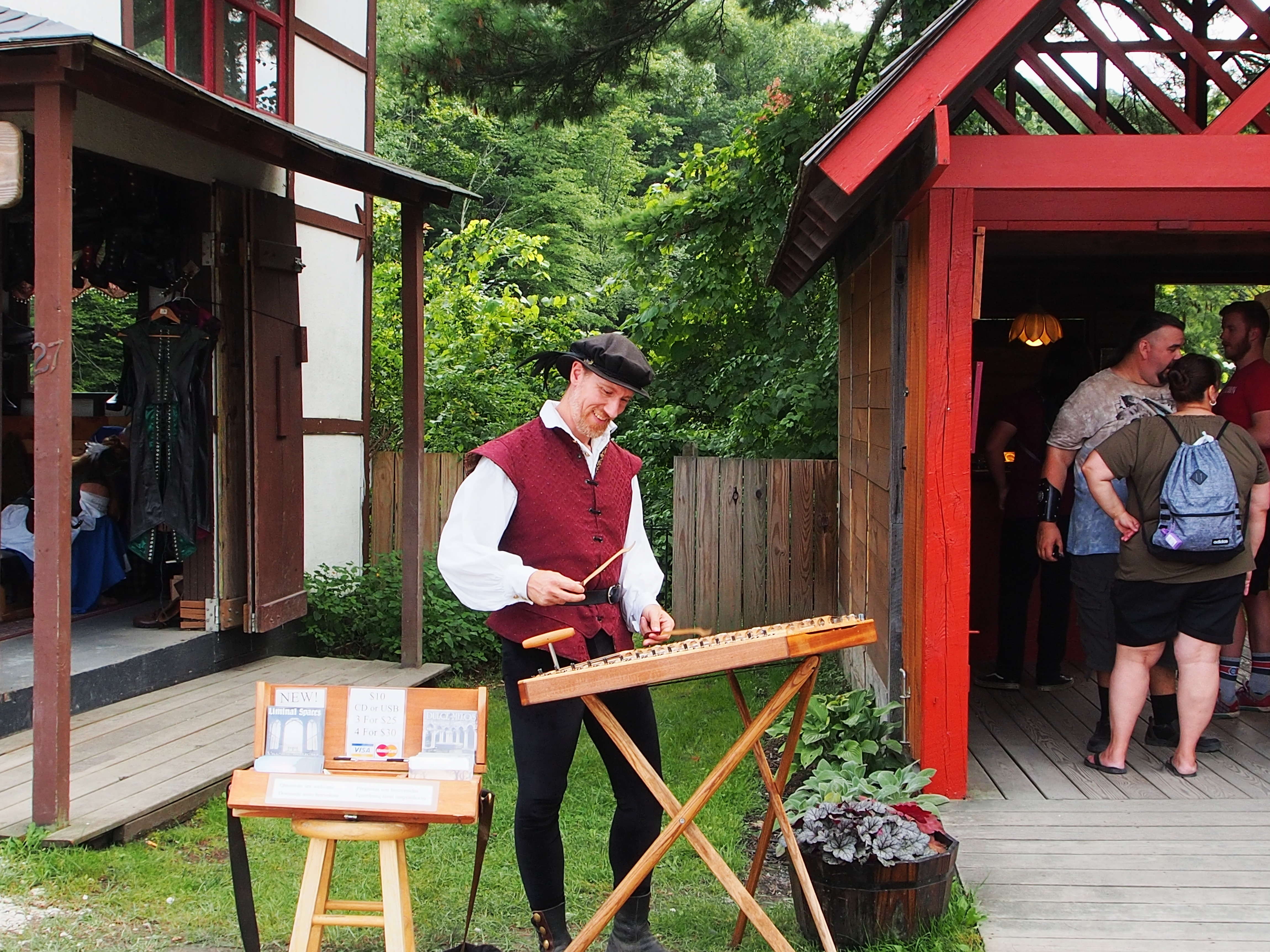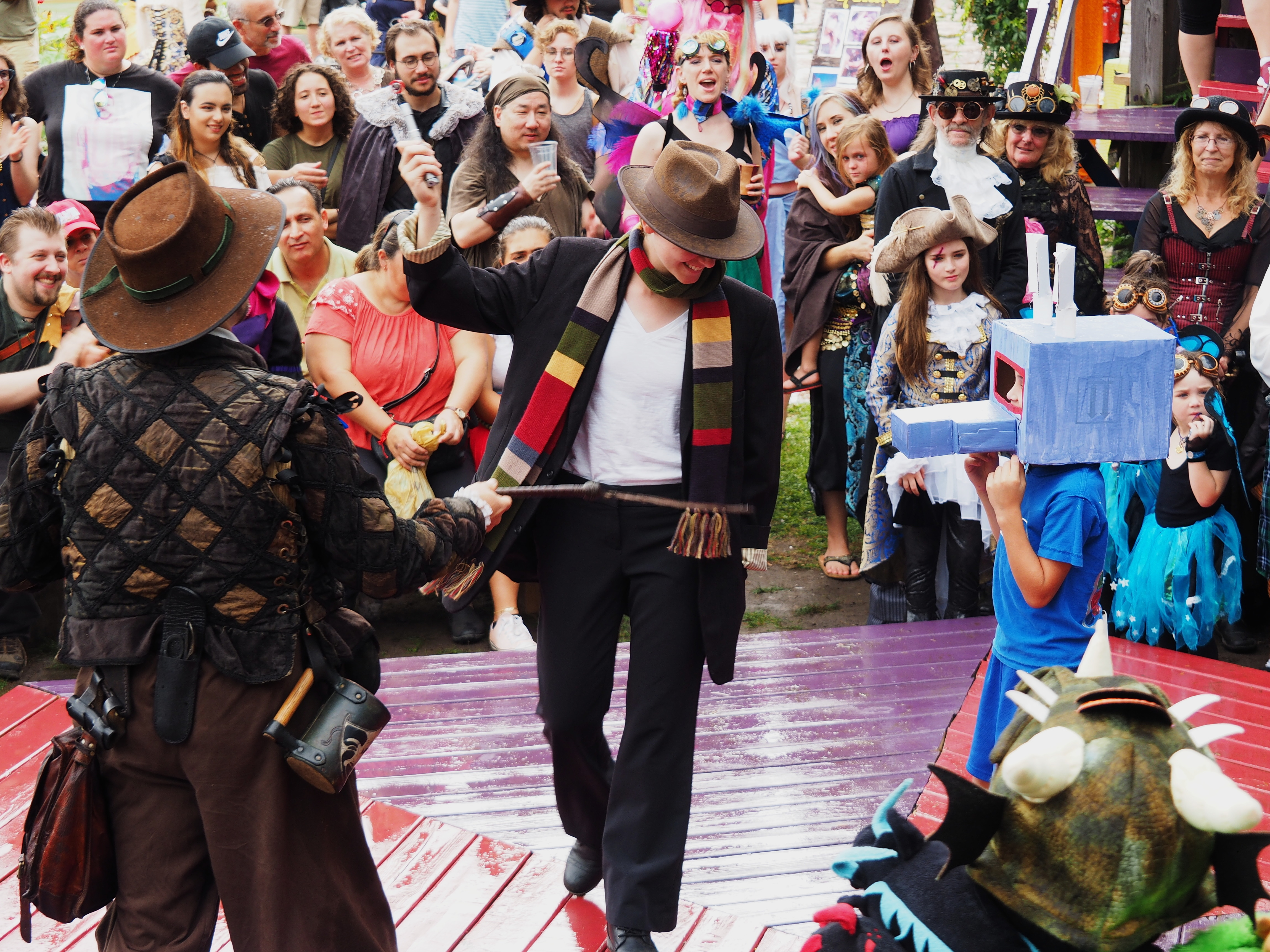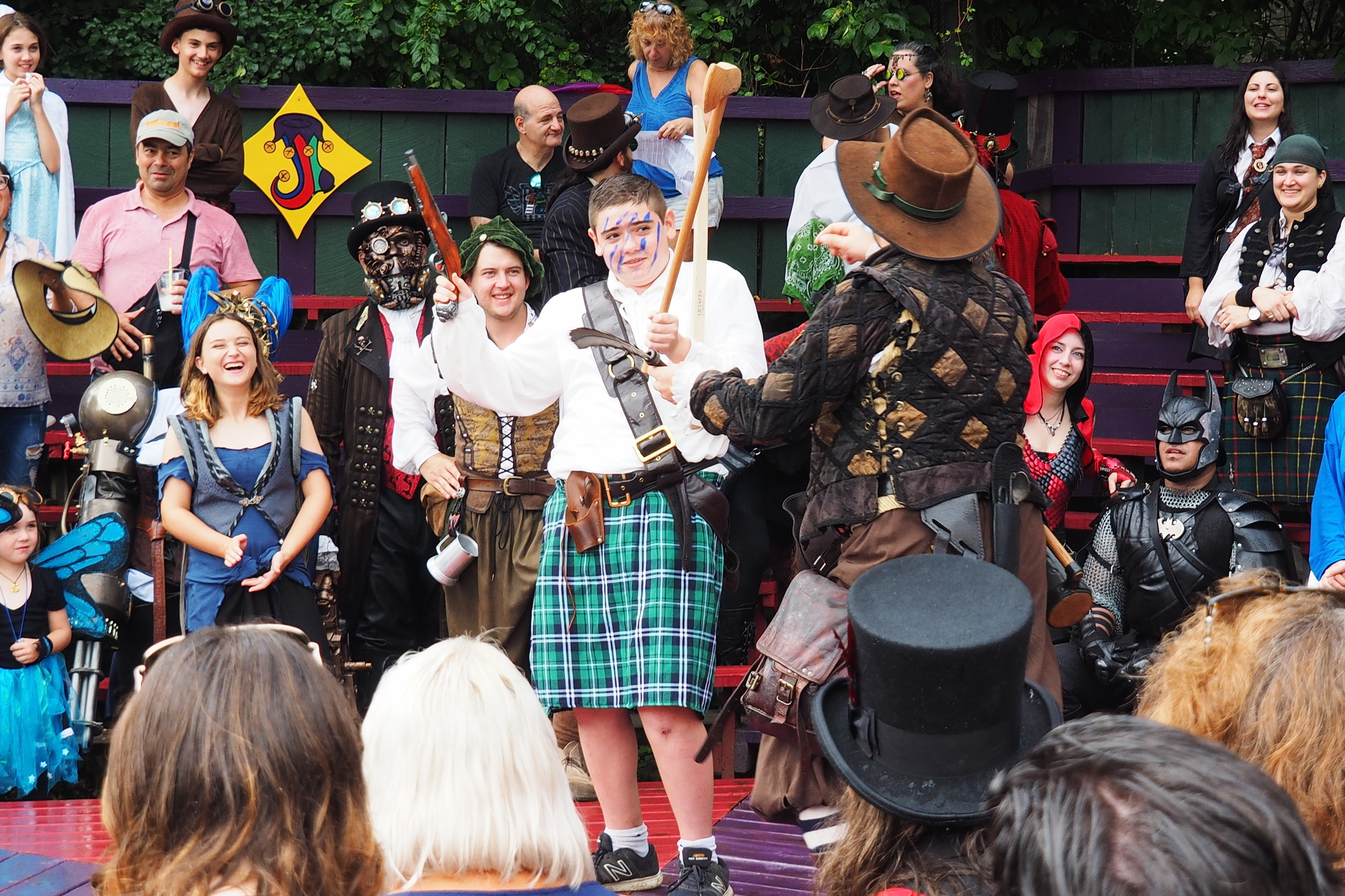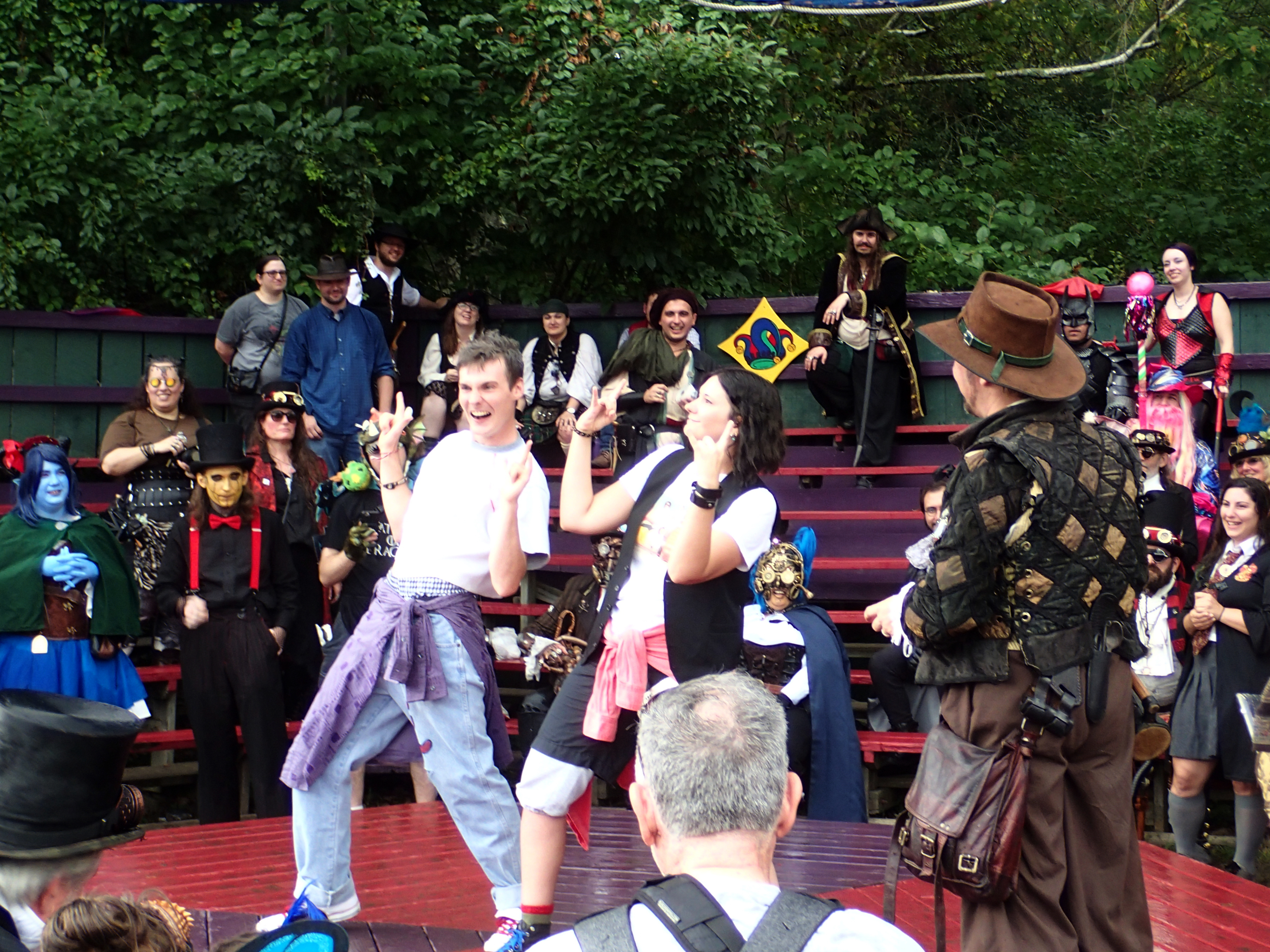 The theme for the weekend was time travelers weekend, and there was a patron costume contest in the afternoon. I carried my smaller steampunk camera box to the faire with the Olympus E-m5 mark I and Olympus 12-50mm lens inside. It was rather wet on the second day.