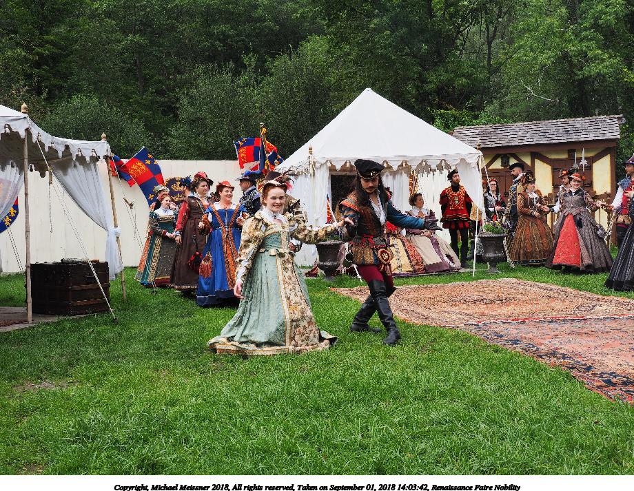Picture #8: Renaissance Faire Nobility #8 Small: 920x713, 229,545 bytes (225K), (html file) Large: 4600x3450, 5,739,689 bytes (5.5M), (html file) Copyright, Michael Meissner 2018, All rights reserved Olympus E-M1-I camera with Olympus-m43 14-150mm-II f/4.0-5.6 lens f/8.0, ISO 200, 1/200 sec, 25.0mm, auto mode, vivid color, SHQ, matrix metering, bias -0.3, IS Auto, anti-shock 35mm equivalent focal length 50.0mm Programs used: crop, raw therapee Taken by Michael Meissner on September 01, 2018 14:04:03 Last modified on November 13, 2018 at 09:25 |