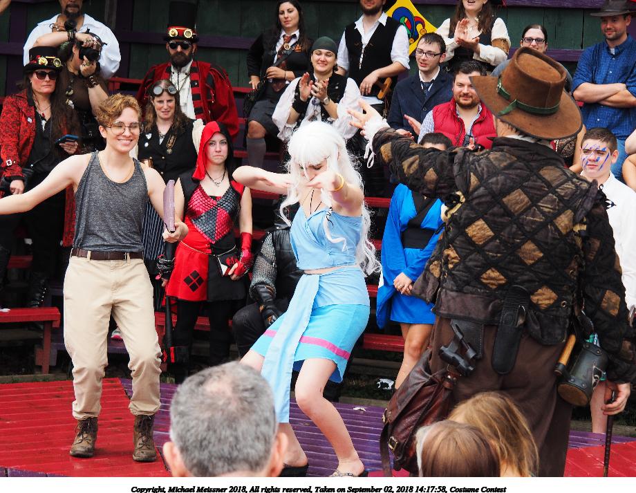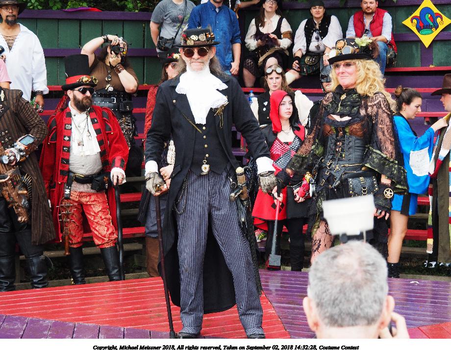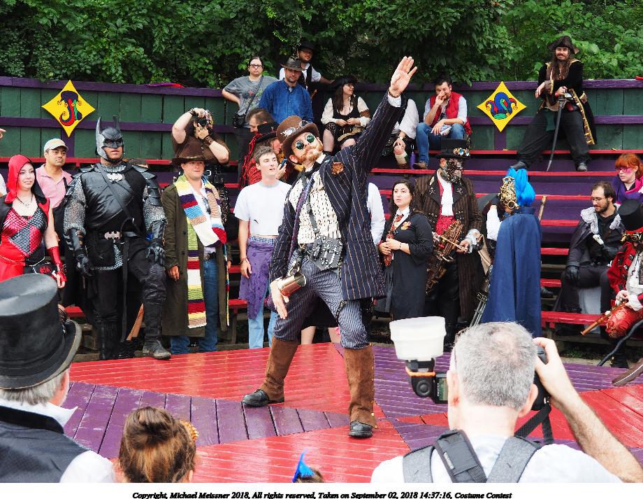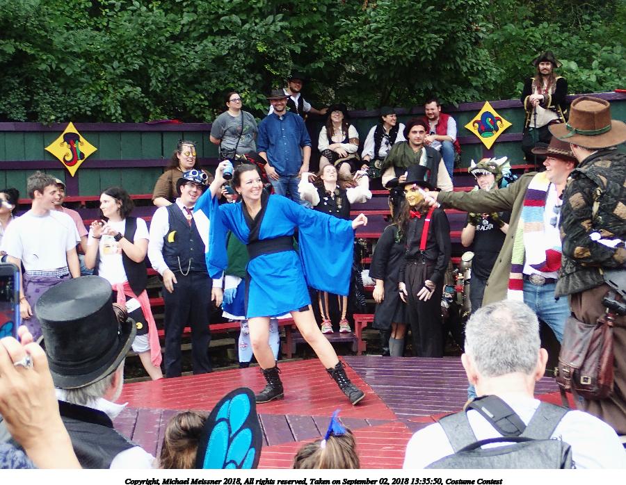 Picture #58: Costume Contest #54 Small: 920x713, 192,701 bytes (189K), (html file) Large: 4600x3450, 4,698,061 bytes (4.5M), (html file) Copyright, Michael Meissner 2018, All rights reserved Olympus E-M1-I camera with Olympus-m43 14-150mm-II f/4.0-5.6 lens f/6.3, ISO 200, 1/125 sec, 34.0mm, auto mode, vivid color, SHQ, matrix metering, bias -1.3, IS Auto, noise reduction auto, anti-shock 35mm equivalent focal length 68.0mm Programs used: crop, raw therapee Taken by Michael Meissner on September 02, 2018 14:48:12 Last modified on November 14, 2018 at 09:37 |