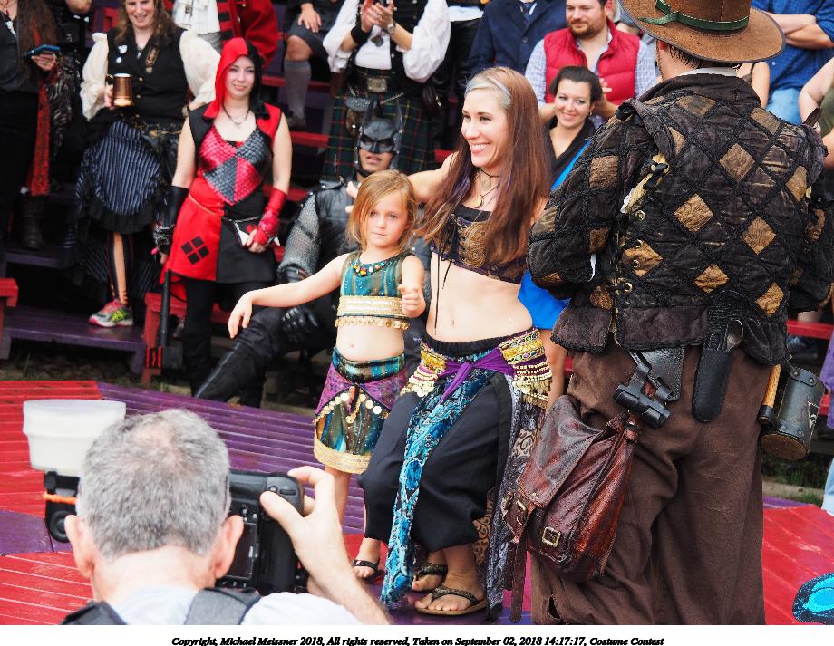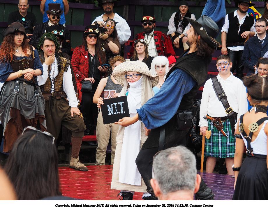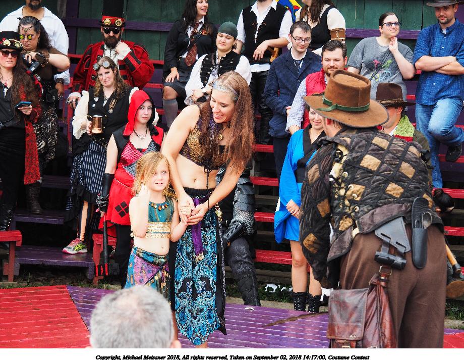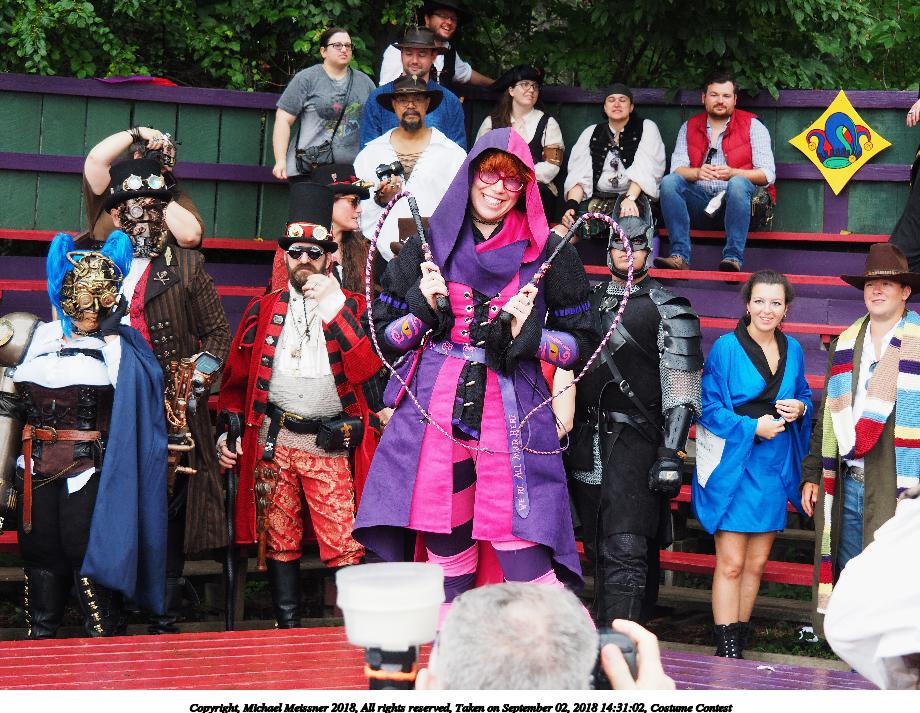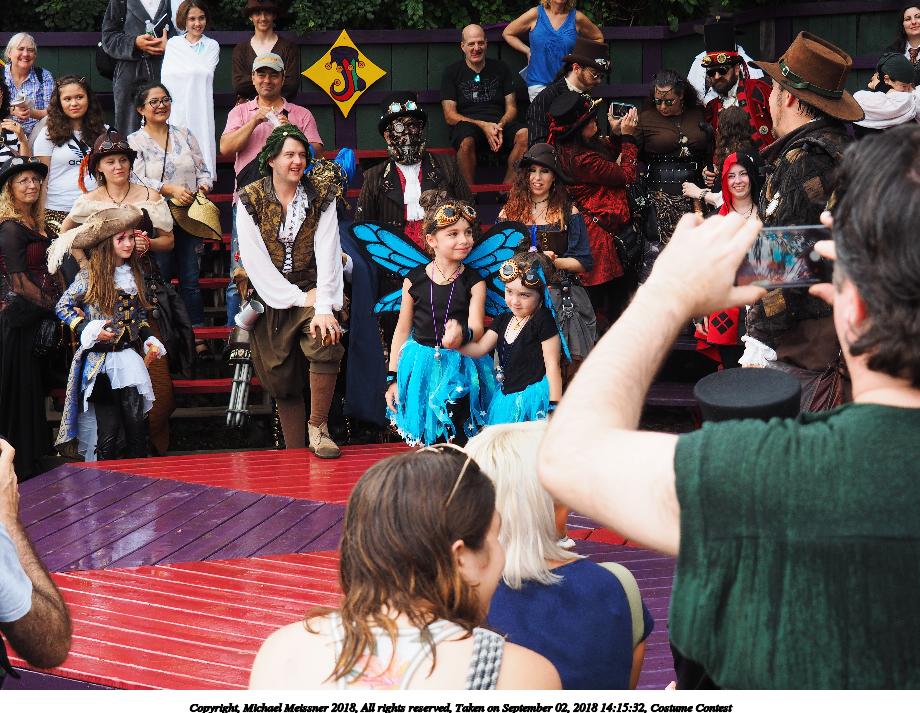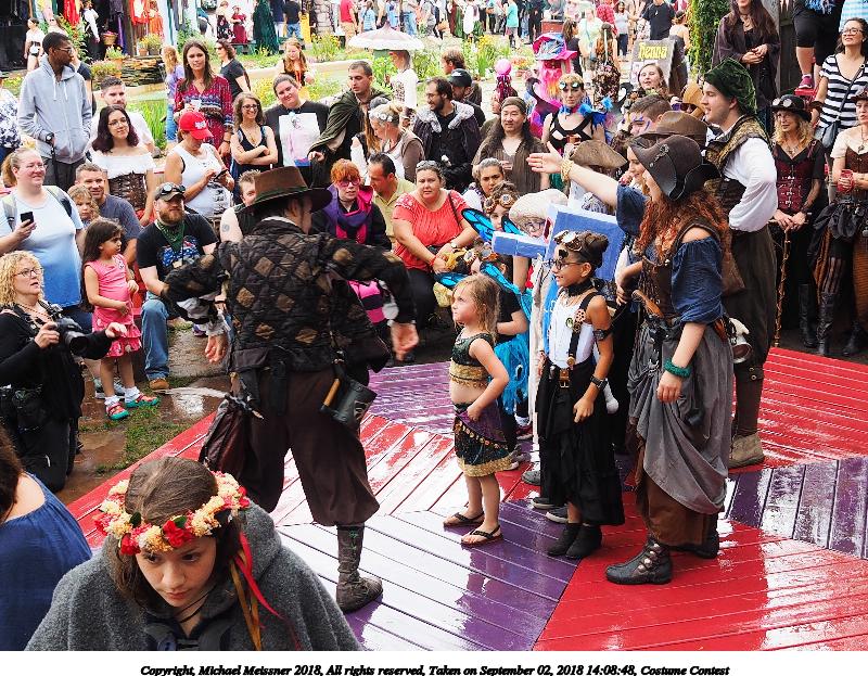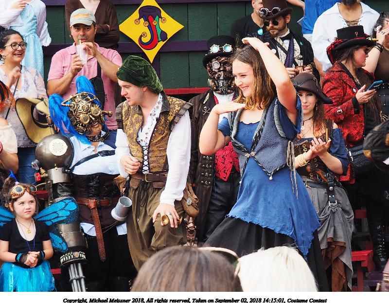 Picture #55: Costume Contest #51 Small: 920x713, 174,656 bytes (171K), (html file) Large: 4600x3450, 4,110,280 bytes (3.9M), (html file) Copyright, Michael Meissner 2018, All rights reserved Olympus E-M1-I camera with Olympus-m43 14-150mm-II f/4.0-5.6 lens f/5.6, ISO 800, 1/125 sec, 54.0mm, auto mode, vivid color, SHQ, matrix metering, IS Auto, noise reduction auto, anti-shock 35mm equivalent focal length 108.0mm Programs used: crop, raw therapee Taken by Michael Meissner on September 02, 2018 14:43:56 Last modified on November 14, 2018 at 09:36 |