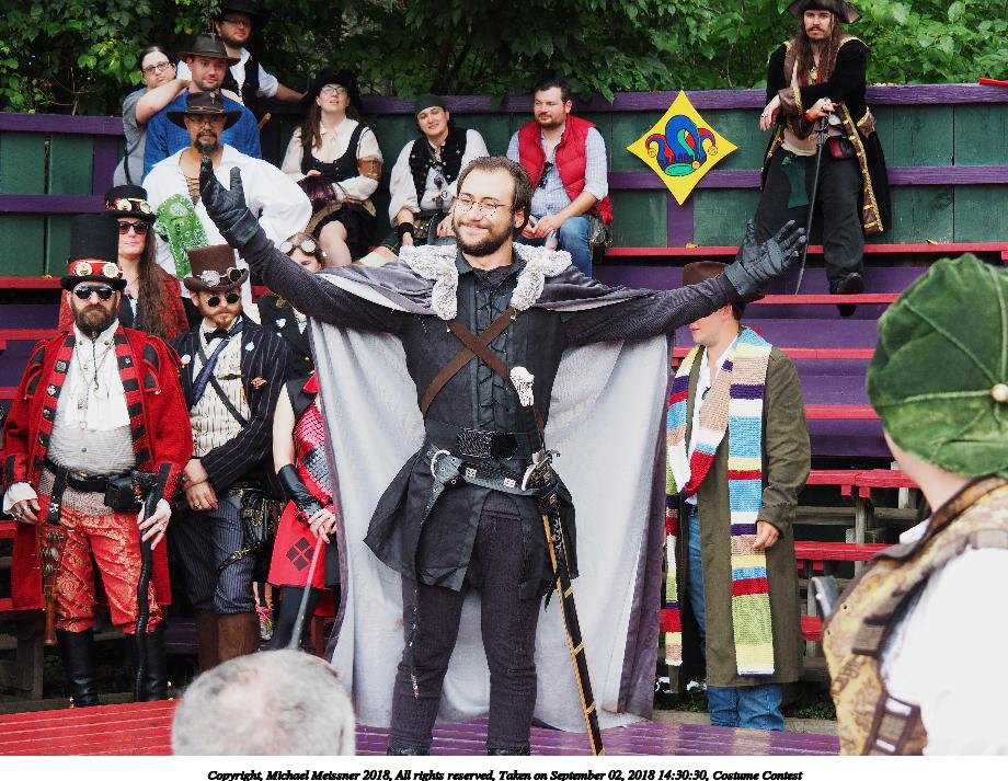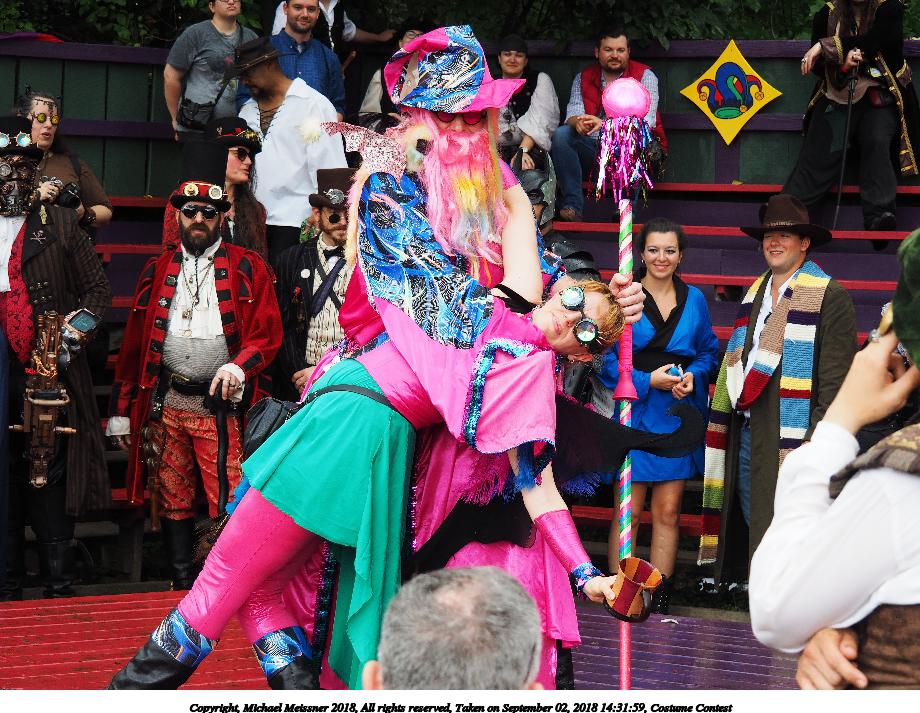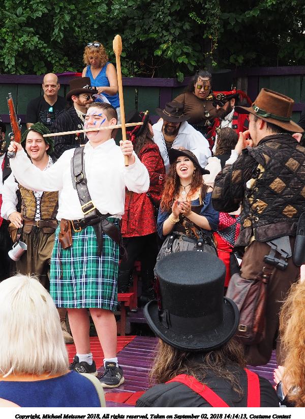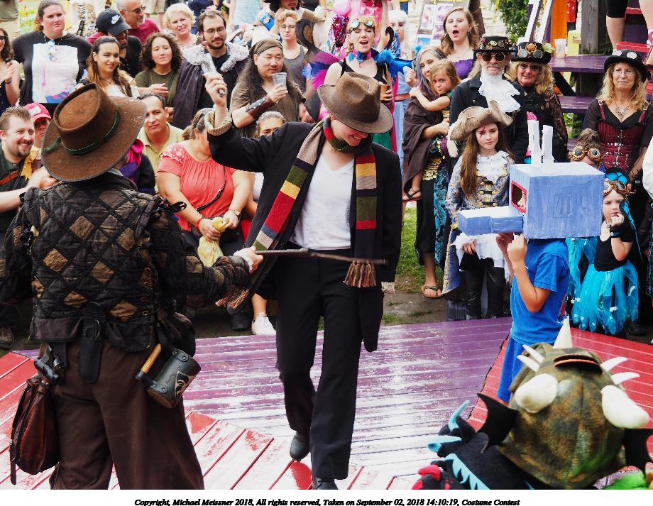 Picture #15: Costume Contest #14 Small: 920x713, 165,969 bytes (163K), (html file) Large: 4600x3450, 3,758,330 bytes (3.6M), (html file) Copyright, Michael Meissner 2018, All rights reserved Olympus E-M1-I camera with Olympus-m43 14-150mm-II f/4.0-5.6 lens f/5.6, ISO 200, 1/100 sec, 39.0mm, auto mode, vivid color, SHQ, matrix metering, bias -0.3, IS Auto, noise reduction auto, anti-shock 35mm equivalent focal length 78.0mm Programs used: crop, raw therapee Taken by Michael Meissner on September 02, 2018 14:15:32 Last modified on November 14, 2018 at 09:29 |