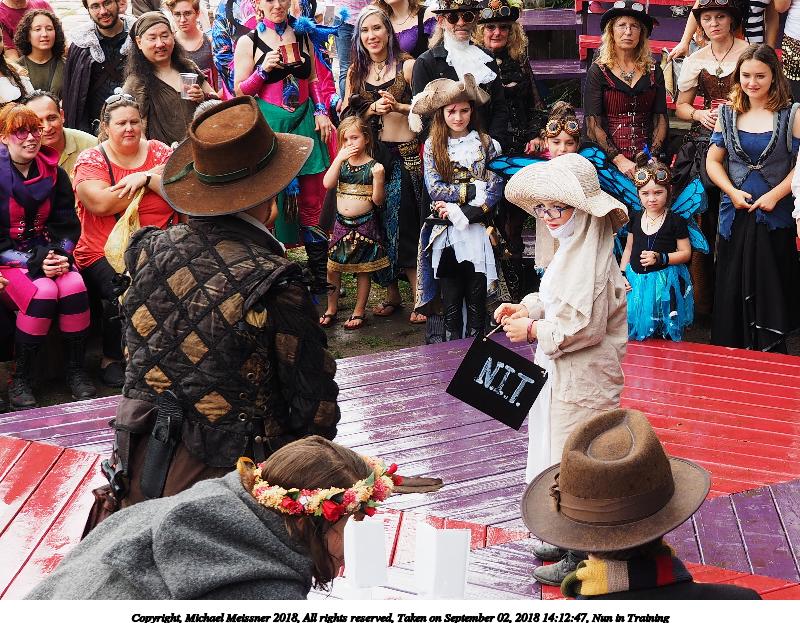 Picture #11: Nun in Training Small: 800x623, 167,584 bytes (164K), (html file) Large: 2400x1800, 3,838,546 bytes (3.7M), (html file) Copyright, Michael Meissner 2018, All rights reserved Olympus E-M1-I camera with Olympus-m43 14-150mm-II f/4.0-5.6 lens f/5.6, ISO 200, 1/100 sec, 22.0mm, auto mode, vivid color, SHQ, matrix metering, IS Auto, noise reduction auto, anti-shock 35mm equivalent focal length 44.0mm Programs used: crop, gimp, raw therapee Taken by Michael Meissner on September 02, 2018 14:12:47 Last modified on November 14, 2018 at 09:26 |