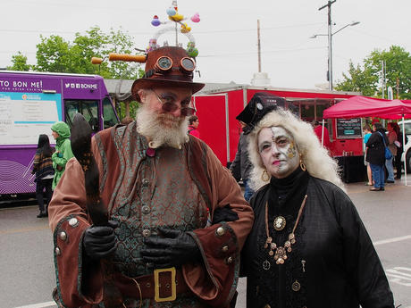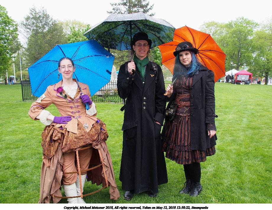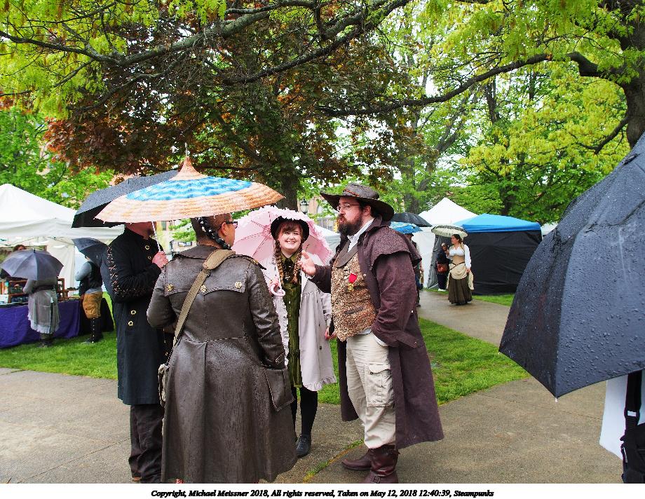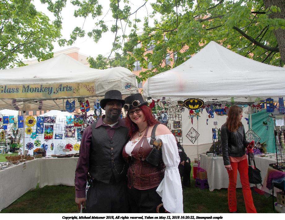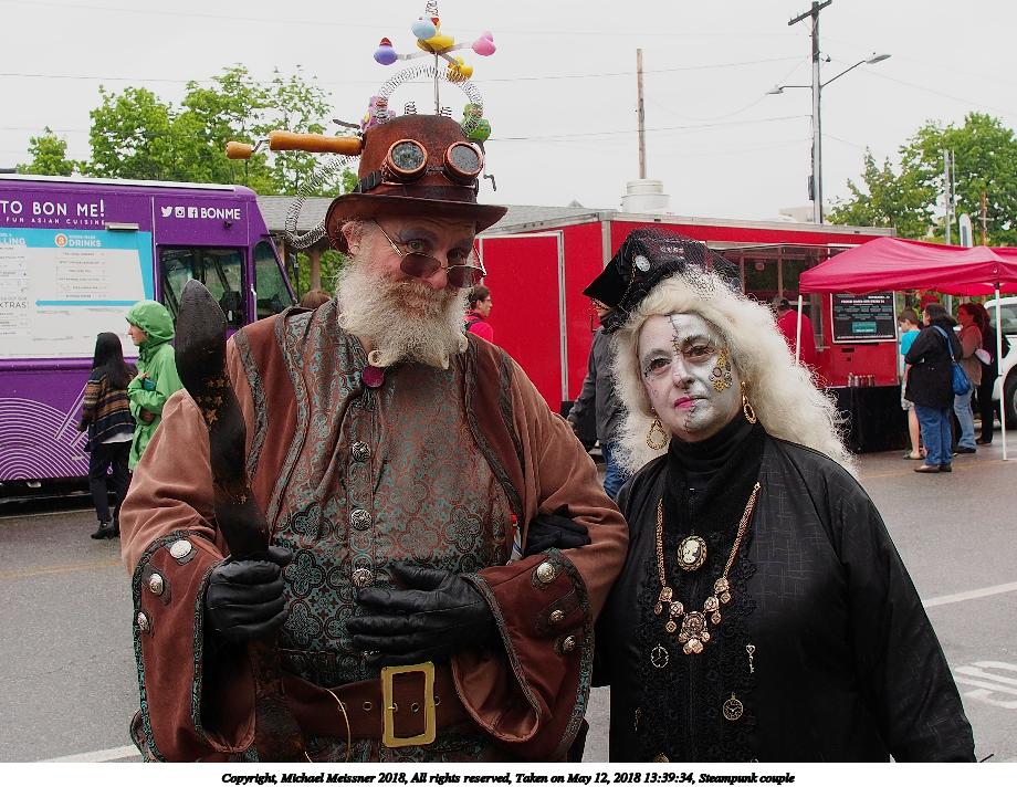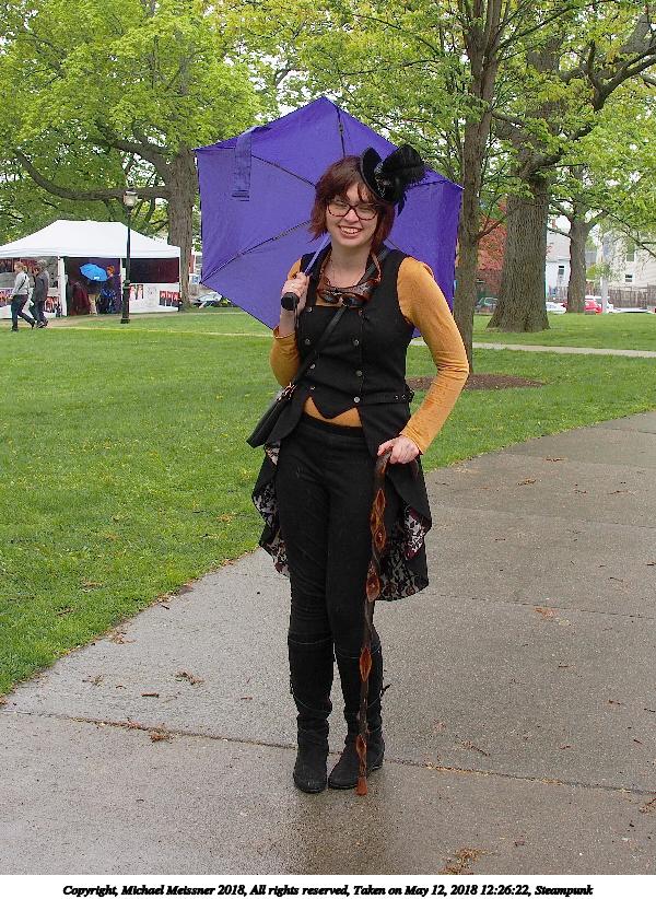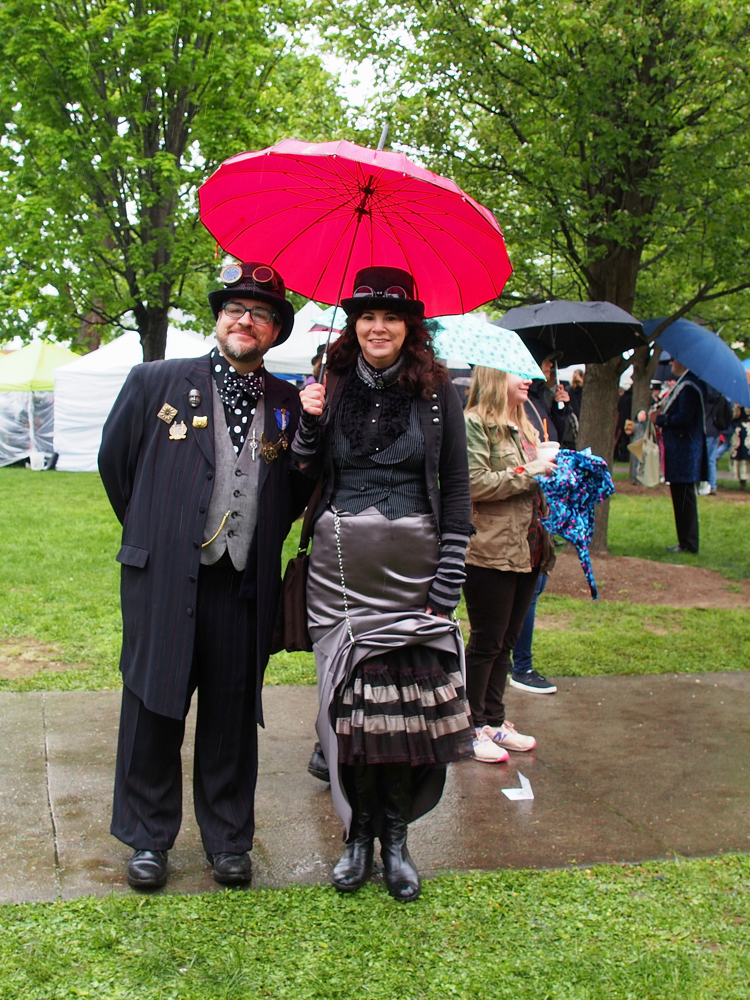 Picture #46: Steampunk couple #3 Thumb: 460x345, 57,190 bytes (56K) Small: 920x712, 157,537 bytes (154K), (html file) Large: 4600x3450, 7,624,420 bytes (7.3M), (html file) Copyright, Michael Meissner 2018, All rights reserved Olympus E-M5-I camera with Olympus 14-54mm-II f/2.8-3.5 lens f/4.5, ISO 200, 1/200 sec, 14.0mm, auto mode, vivid color, matrix metering, digital zoom x2, IS1 (All Direction Shake IS), noise filter low 35mm equivalent focal length 56.0mm, digital zoom x2 Extra equipment used: Taken with my steampunk camera Programs used: crop, gimp, raw therapee Taken by Michael Meissner on May 12, 2018 13:39:34 Last modified on May 20, 2018 at 00:37 |