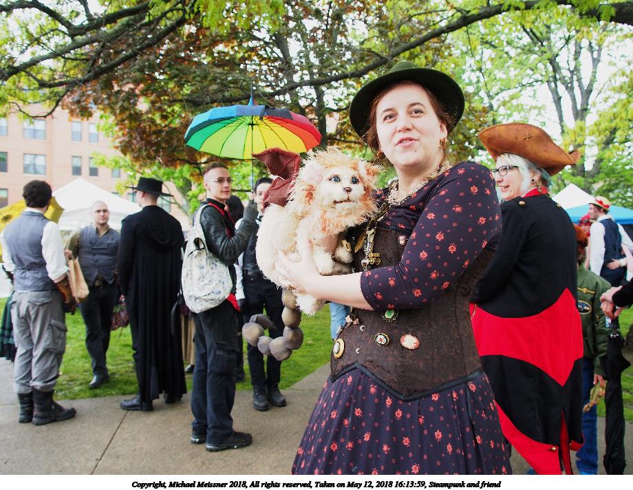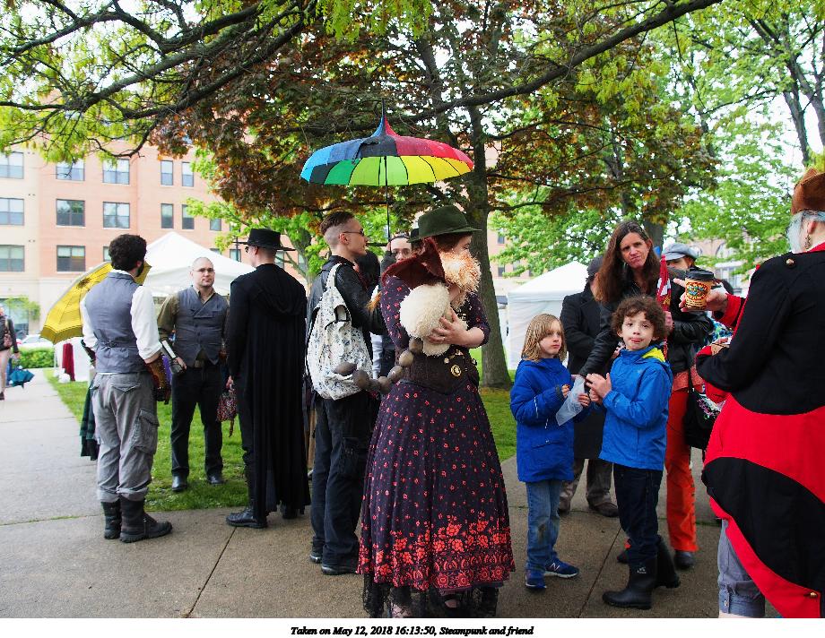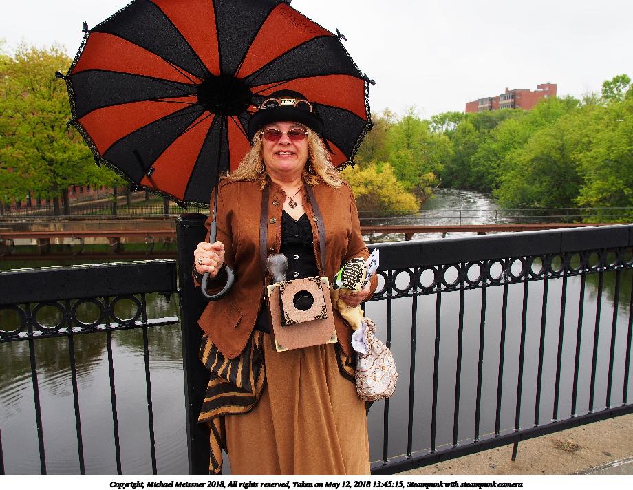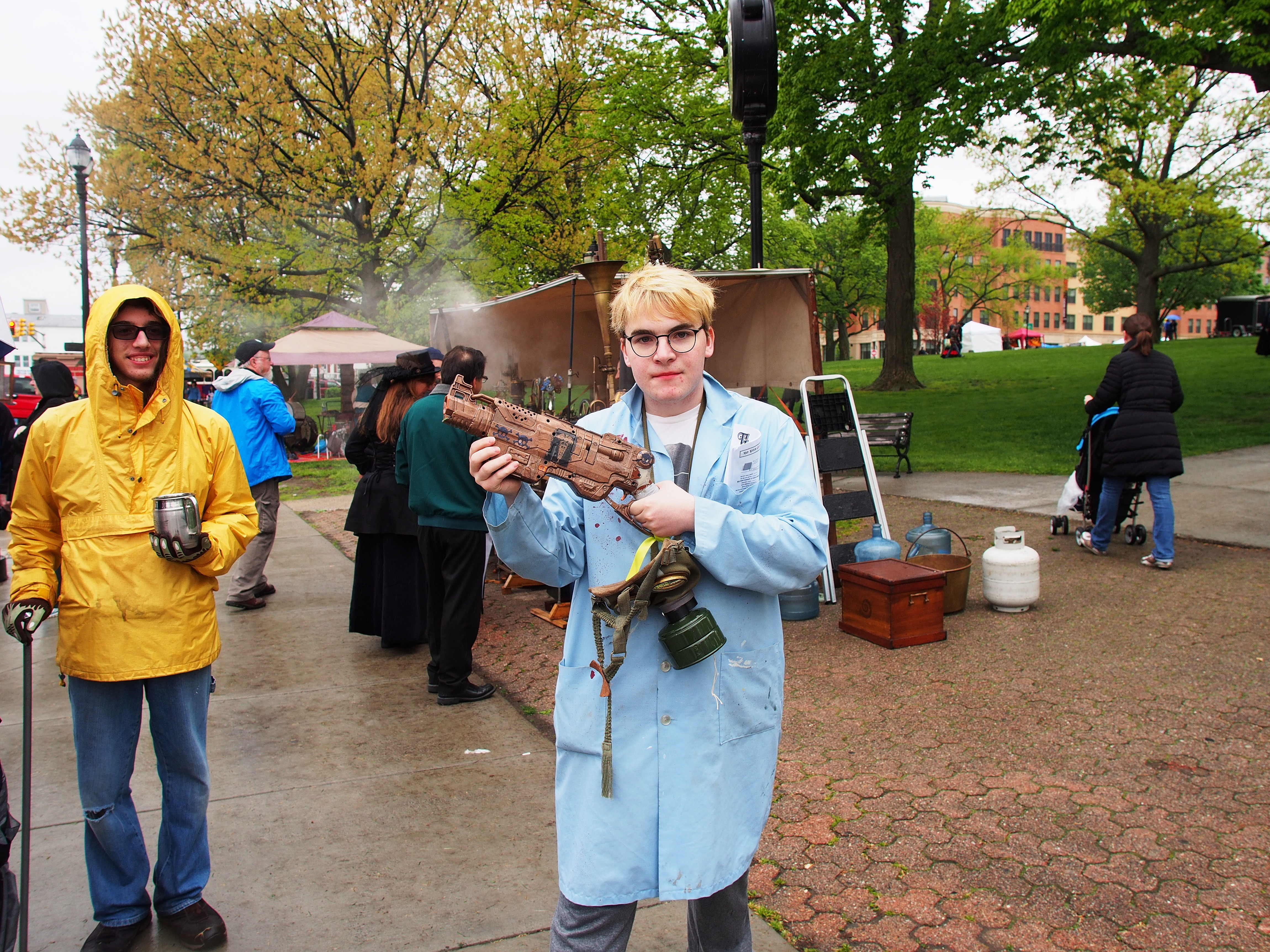 Picture #53: Steampunk and friend #2 Thumb: 460x345, 67,534 bytes (66K) Small: 920x712, 192,343 bytes (188K), (html file) Large: 4600x3450, 4,532,227 bytes (4.3M), (html file) Olympus E-M5-I camera with Olympus 14-54mm-II f/2.8-3.5 lens f/2.8, ISO 400, 1/60 sec, 14.0mm, auto mode, vivid color, matrix metering, IS1 (All Direction Shake IS), noise filter low 35mm equivalent focal length 28.0mm Extra equipment used: Taken with my steampunk camera Programs used: crop, raw therapee Taken by Michael Meissner on May 12, 2018 16:13:54 Last modified on May 20, 2018 at 00:49 |