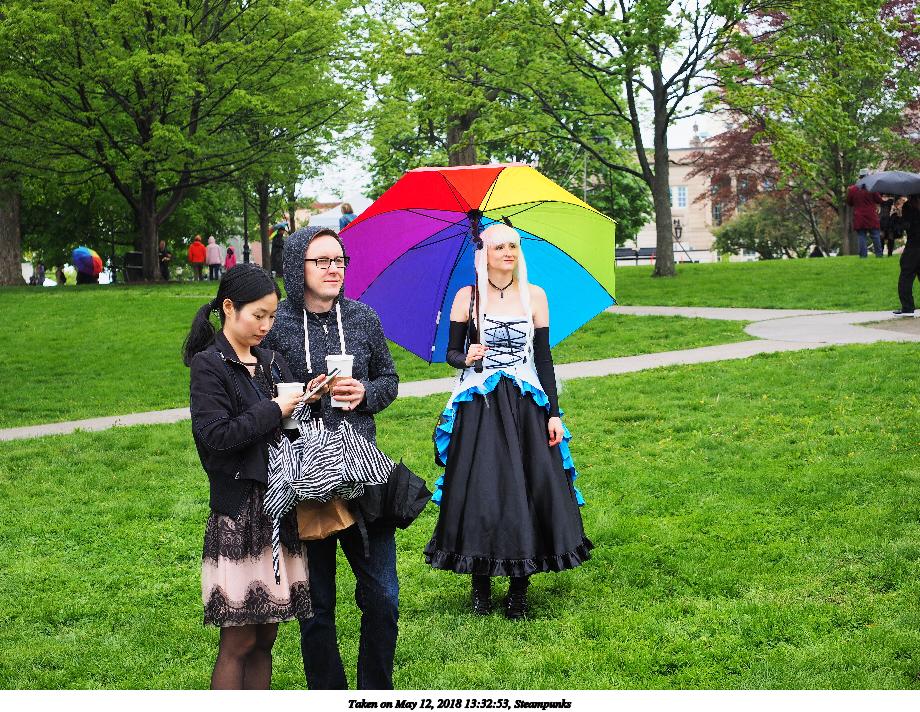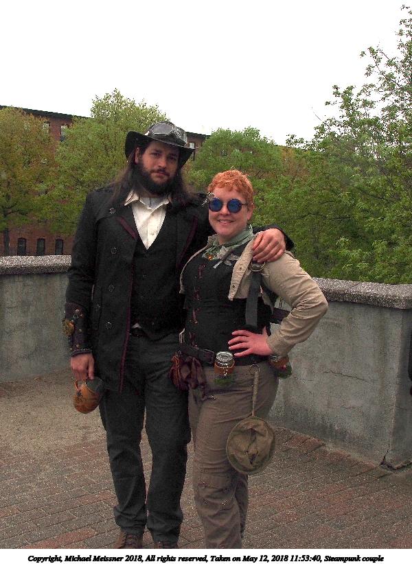 Picture #56: Steampunk couple #4 Thumb: 460x345, 66,235 bytes (65K) Small: 920x712, 190,452 bytes (186K), (html file) Large: 4600x3450, 12,323,829 bytes (12M), (html file) Copyright, Michael Meissner 2018, All rights reserved Olympus E-M5-I camera with Olympus 14-54mm-II f/2.8-3.5 lens f/3.5, ISO 200, 1/100 sec, 14.0mm, auto mode, vivid color, matrix metering, IS1 (All Direction Shake IS), noise filter low 35mm equivalent focal length 28.0mm Extra equipment used: Taken with my steampunk camera Programs used: crop, gimp, raw therapee Taken by Michael Meissner on May 12, 2018 16:20:22 Last modified on May 20, 2018 at 00:47 |