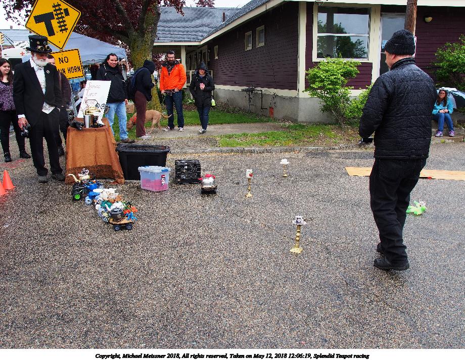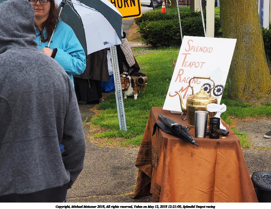 Picture #11: Splendid Teapot racing #8 Thumb: 460x345, 62,424 bytes (61K) Small: 920x712, 268,291 bytes (263K), (html file) Large: 4600x3450, 5,881,352 bytes (5.6M), (html file) Copyright, Michael Meissner 2018, All rights reserved Olympus E-M5-I camera with Olympus 14-54mm-II f/2.8-3.5 lens f/5.0, ISO 200, 1/200 sec, 14.0mm, auto mode, vivid color, matrix metering, digital zoom x2, IS1 (All Direction Shake IS), noise filter low 35mm equivalent focal length 56.0mm, digital zoom x2 Extra equipment used: Taken with my steampunk camera Programs used: crop, raw therapee Taken by Michael Meissner on May 12, 2018 12:08:45 Last modified on May 19, 2018 at 22:52 |