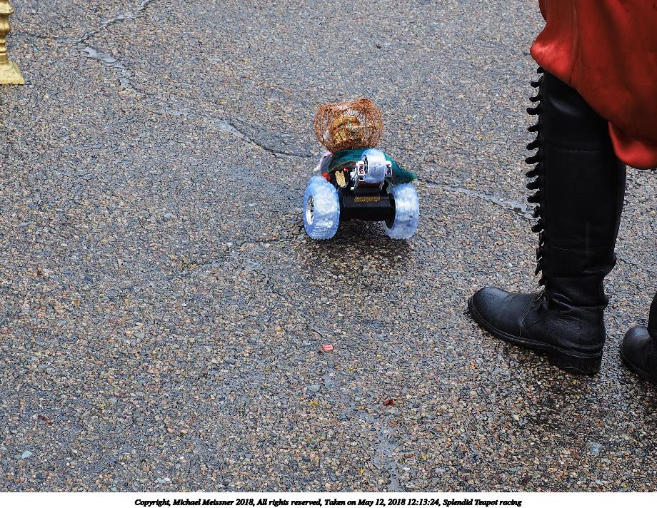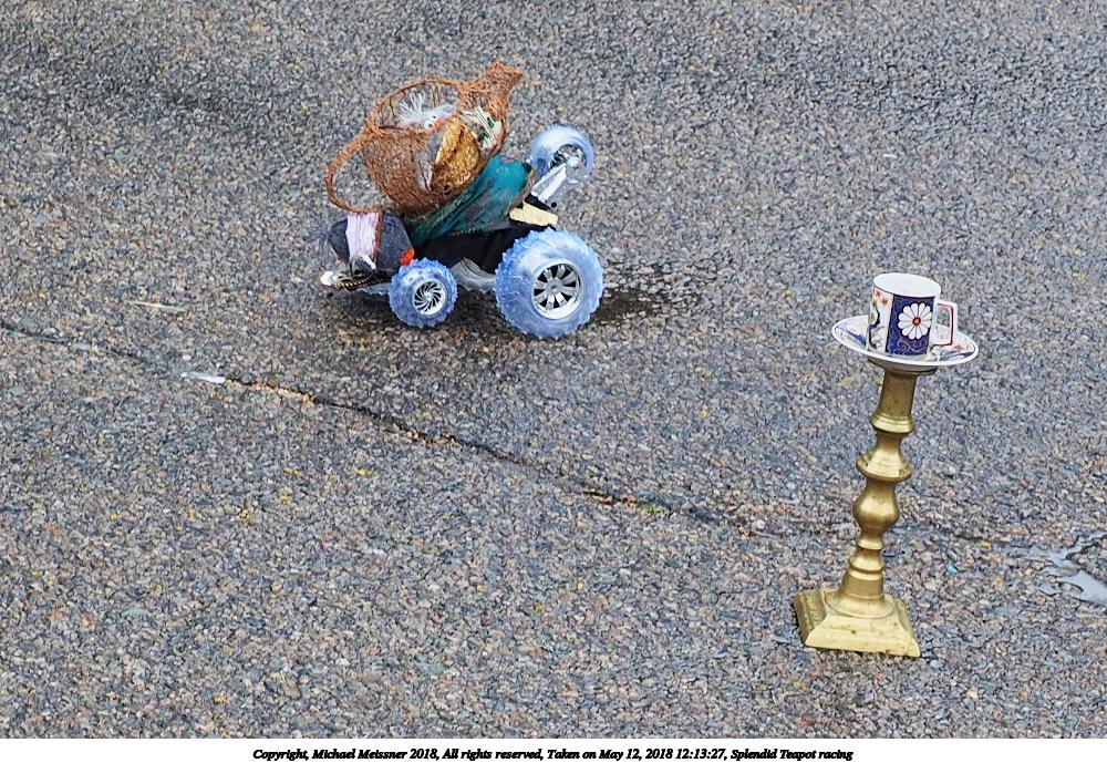 Picture #14: Splendid Teapot racing #11 Thumb: 500x333, 88,898 bytes (87K) Small: 1000x689, 249,683 bytes (244K), (html file) Large: 3000x2000, 5,179,315 bytes (4.9M), (html file) Copyright, Michael Meissner 2018, All rights reserved Olympus E-M1-I camera with Olympus-m43 12-40mm f/2.8 lens f/5.0, ISO 200, 1/250 sec, 26.0mm, auto mode, vivid color, SHQ, matrix metering, digital zoom x2, IS Auto, noise reduction auto, anti-shock 35mm equivalent focal length 104.0mm, digital zoom x2 Programs used: crop, gimp, raw therapee Taken by Michael Meissner on May 12, 2018 12:13:27 Last modified on May 19, 2018 at 22:55 |
