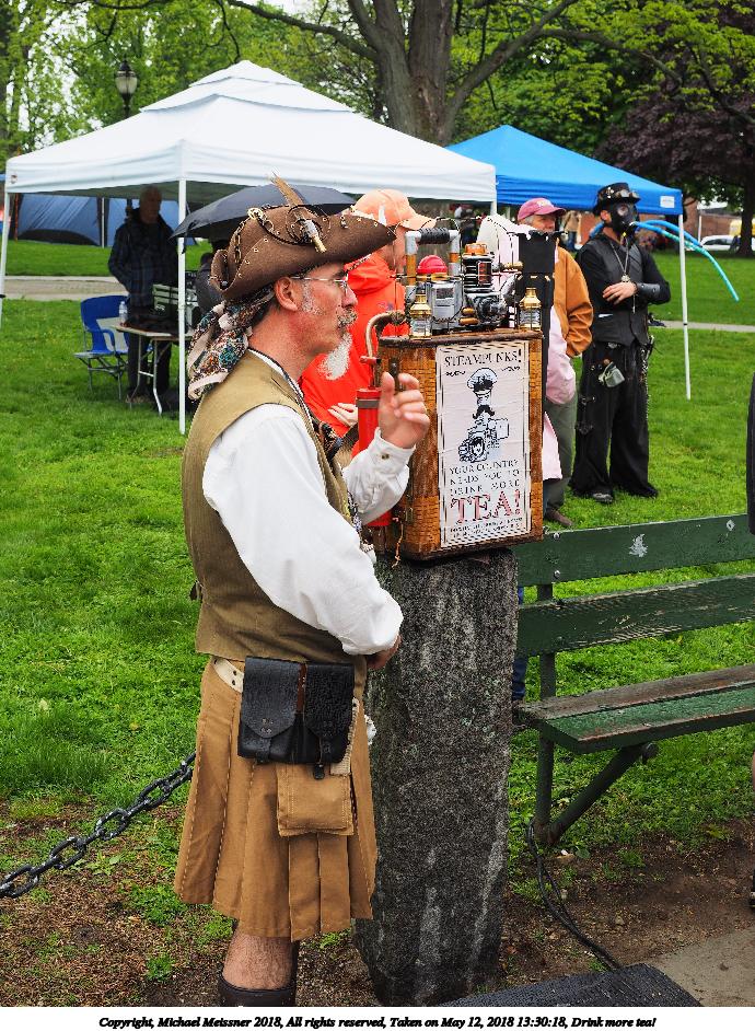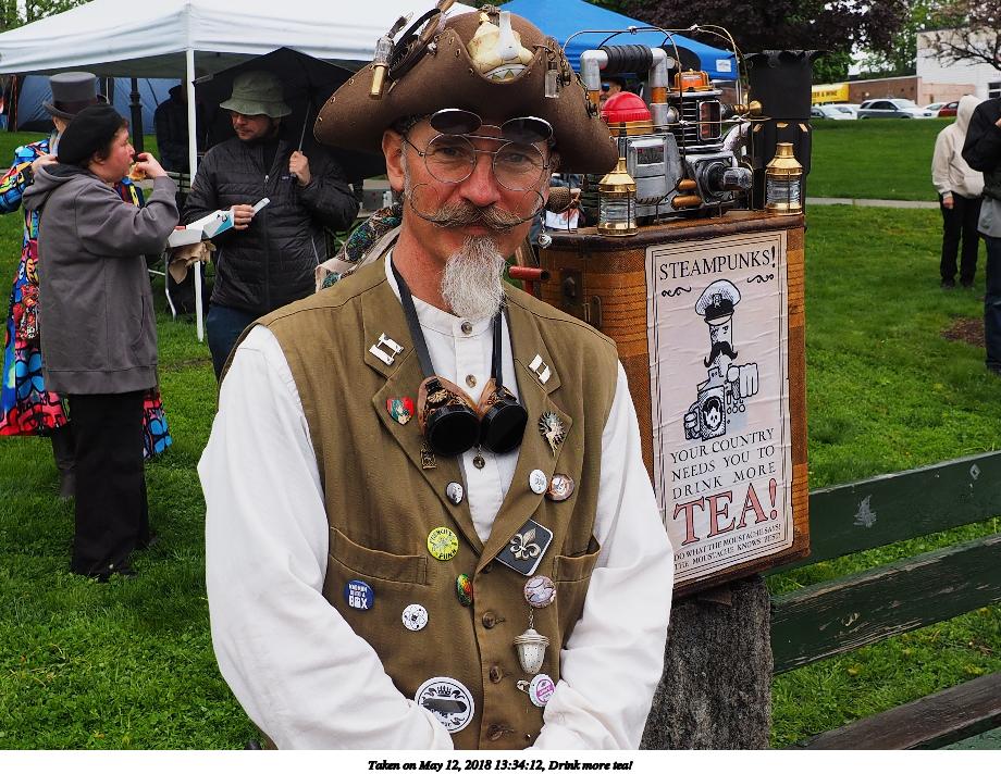 Picture #44: Drink more tea! #4 Thumb: 460x345, 60,501 bytes (60K) Small: 920x712, 182,539 bytes (179K), (html file) Large: 4600x3450, 3,920,084 bytes (3.7M), (html file) Copyright, Michael Meissner 2018, All rights reserved Olympus E-M5-I camera with Olympus 14-54mm-II f/2.8-3.5 lens f/3.5, ISO 200, 1/125 sec, 14.0mm, auto mode, vivid color, matrix metering, digital zoom x2, IS1 (All Direction Shake IS), noise filter low 35mm equivalent focal length 56.0mm, digital zoom x2 Extra equipment used: Taken with my steampunk camera Programs used: crop, raw therapee Taken by Michael Meissner on May 12, 2018 13:36:11 Last modified on May 20, 2018 at 00:10 |