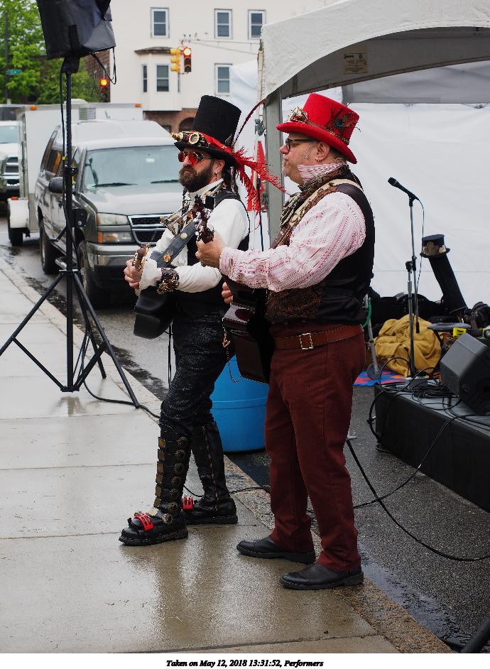Picture #36: Performers Thumb: 460x345, 51,555 bytes (51K) Small: 920x712, 131,359 bytes (129K), (html file) Large: 4600x3450, 2,989,293 bytes (2.9M), (html file) Copyright, Michael Meissner 2018, All rights reserved Olympus E-M1-I camera with Olympus-m43 12-40mm f/2.8 lens f/5.0, ISO 200, 1/250 sec, 38.0mm, auto mode, vivid color, SHQ, matrix metering, IS Auto, noise reduction auto, anti-shock 35mm equivalent focal length 76.0mm Extra equipment used: Taken with my steampunk camera Programs used: crop, raw therapee Taken by Michael Meissner on May 12, 2018 13:30:43 Last modified on May 20, 2018 at 00:00 |