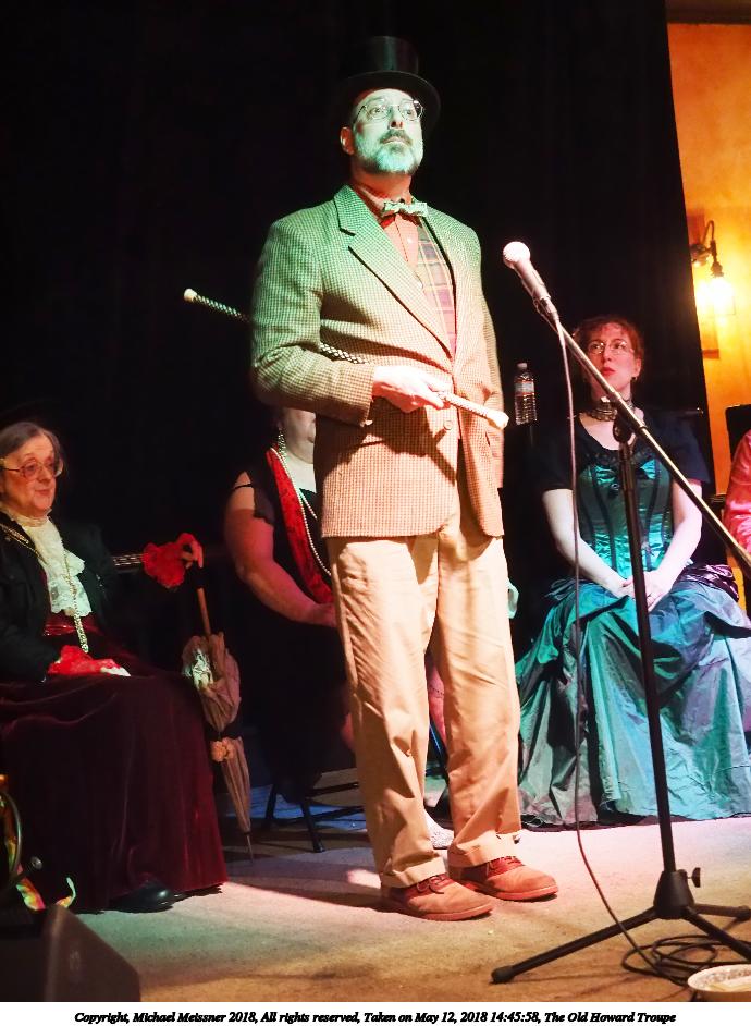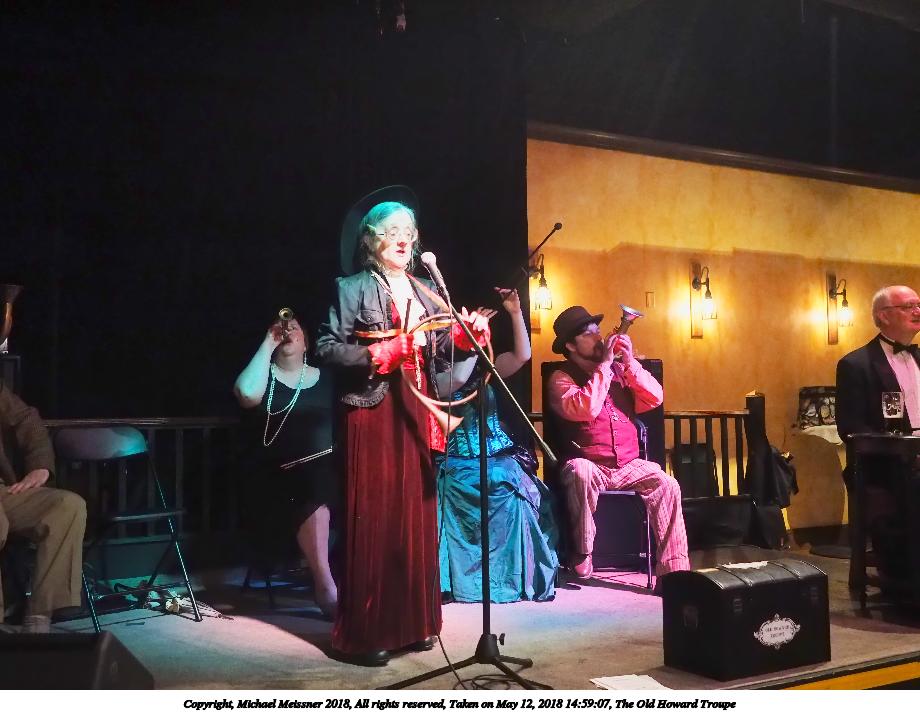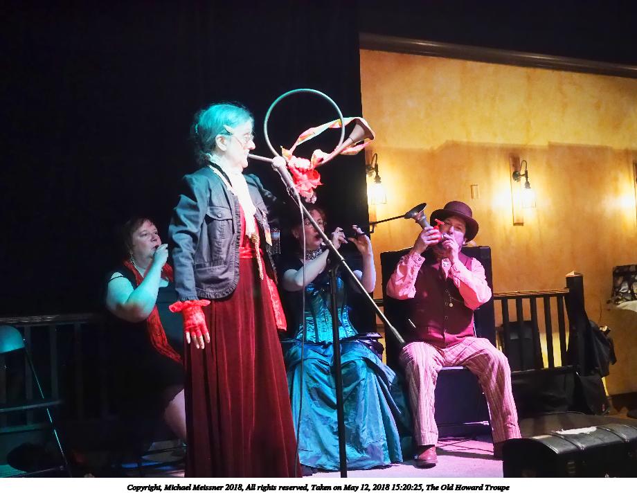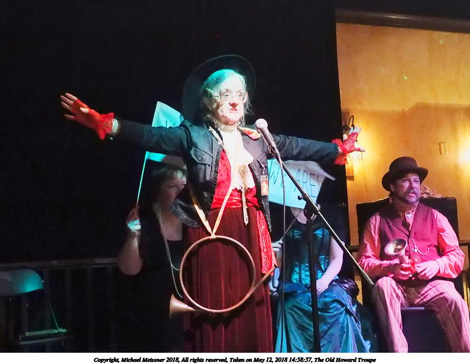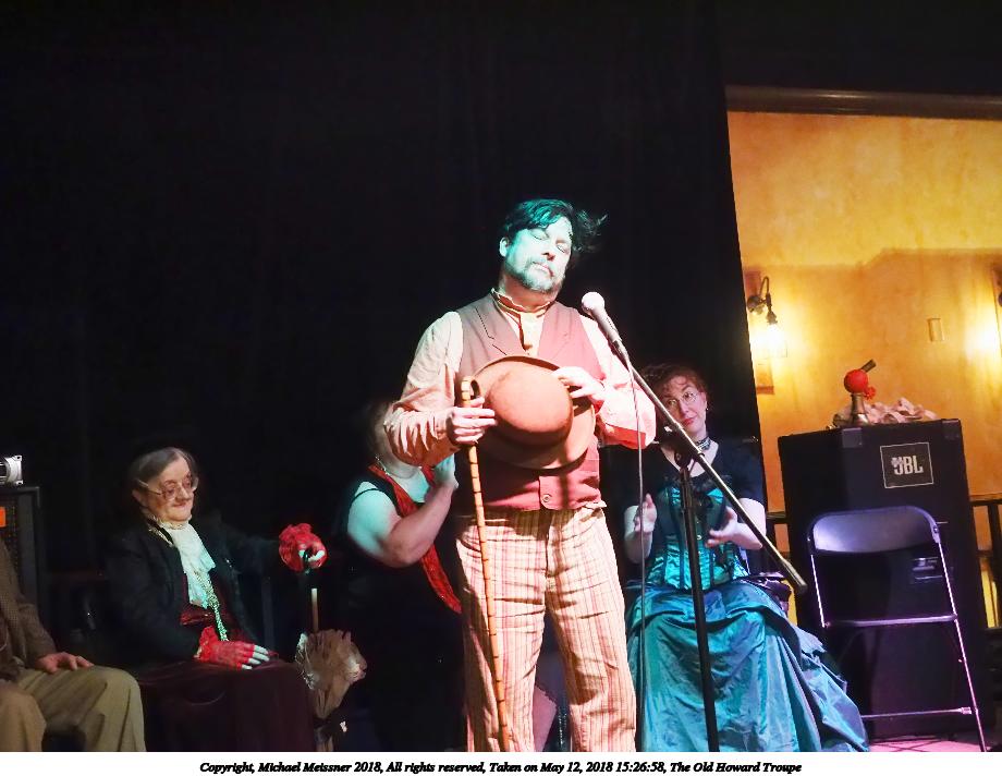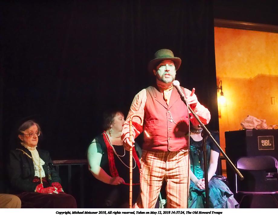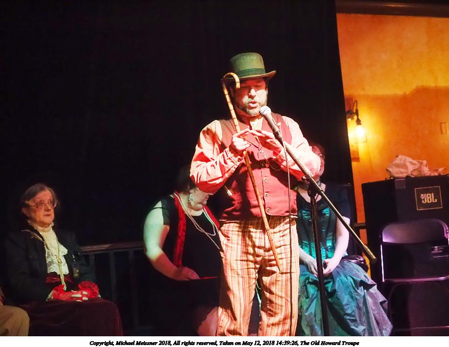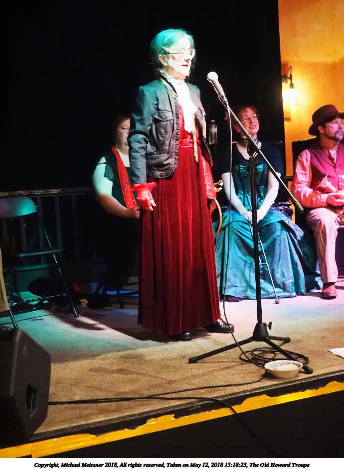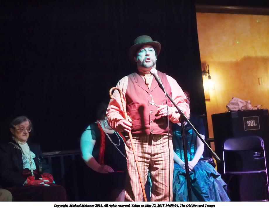 Picture #18: The Old Howard Troupe #17 Thumb: 345x460, 54,192 bytes (53K) Small: 690x942, 118,854 bytes (117K), (html file) Large: 3450x4600, 8,811,943 bytes (8.4M), (html file) Copyright, Michael Meissner 2018, All rights reserved Olympus E-M1-I camera with Olympus-m43 12-40mm f/2.8 lens f/2.8, ISO 6400, 1/50 sec, 15.0mm, auto mode, vivid color, SHQ, matrix metering, digital zoom x2, IS Auto, noise reduction auto, anti-shock 35mm equivalent focal length 60.0mm, digital zoom x2 Programs used: crop, gimp, rotate Taken by Michael Meissner on May 12, 2018 14:57:12 Last modified on May 20, 2018 at 01:05 |