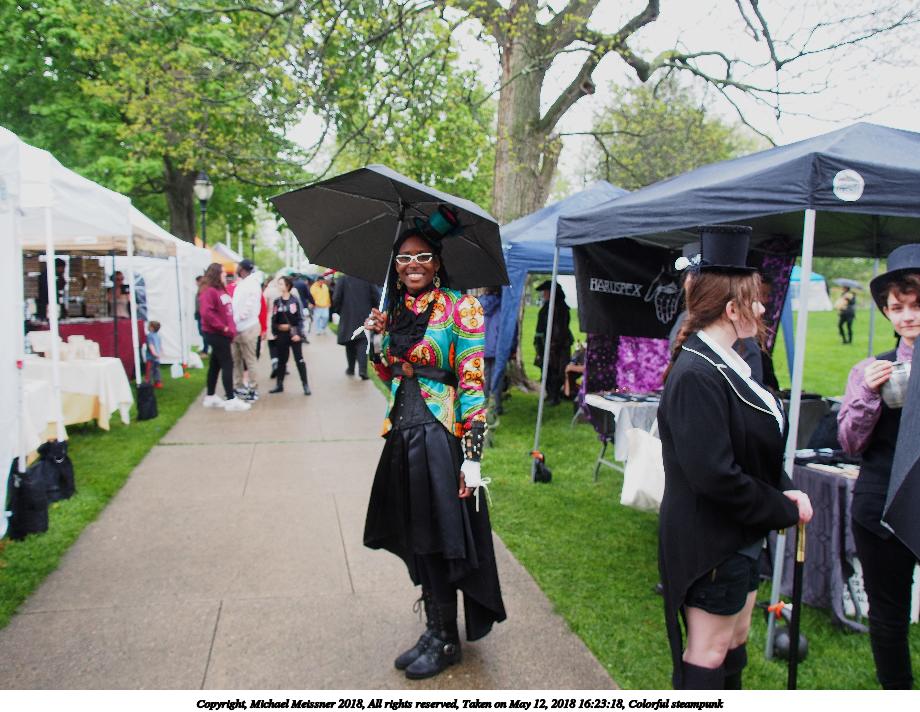 Picture #2: Steampunk couple Thumb: 300x400, 39,285 bytes (39K) Small: 600x822, 119,952 bytes (118K), (html file) Large: 2400x3200, 6,333,676 bytes (6.0M), (html file) Copyright, Michael Meissner 2018, All rights reserved Olympus E-M5-I camera with Olympus 14-54mm-II f/2.8-3.5 lens f/5.6, ISO 200, 1/250 sec, 14.0mm, auto mode, vivid color, matrix metering, IS1 (All Direction Shake IS), noise filter low 35mm equivalent focal length 28.0mm Programs used: crop, gimp, raw therapee Taken by Michael Meissner on May 12, 2018 11:53:40 Last modified on May 19, 2018 at 22:24 |