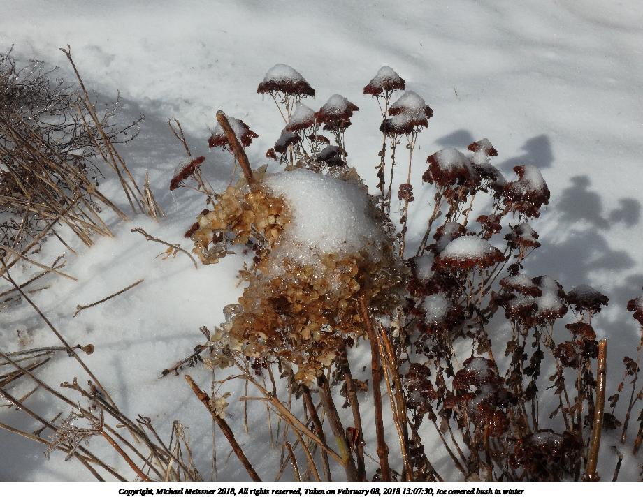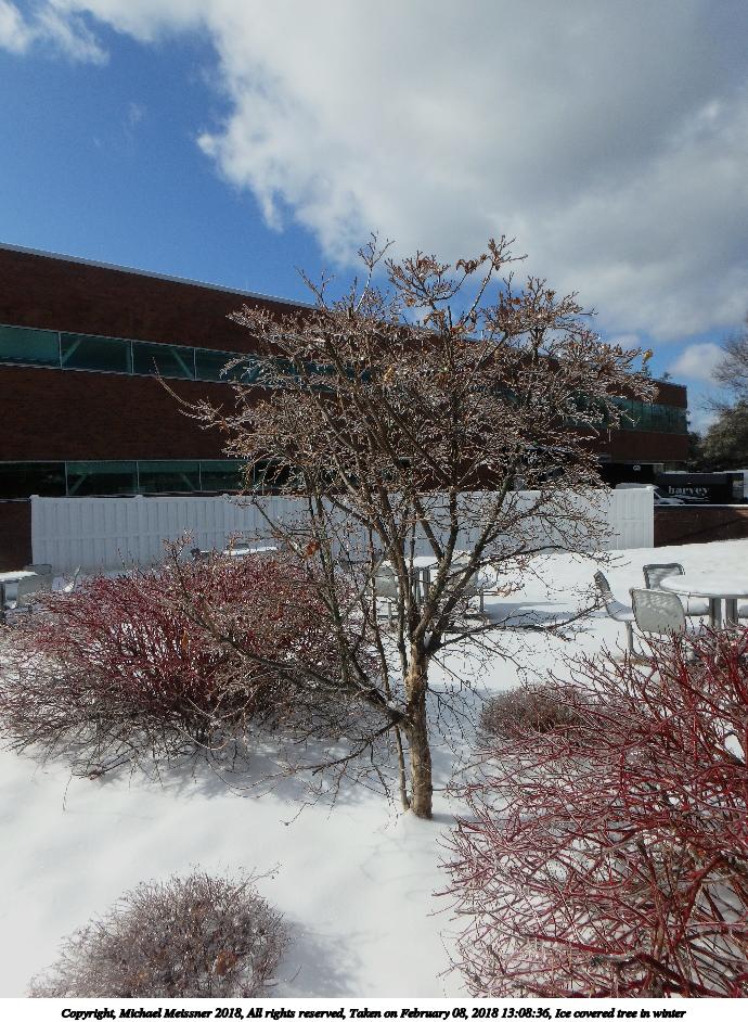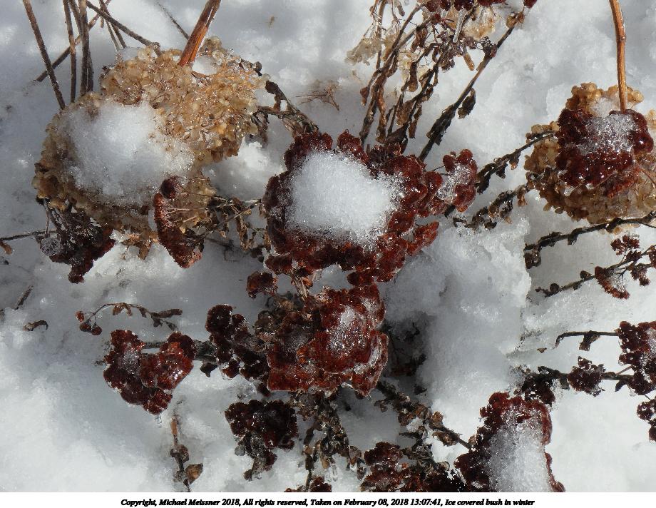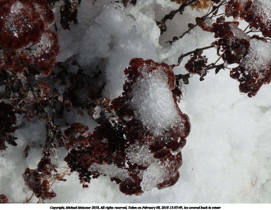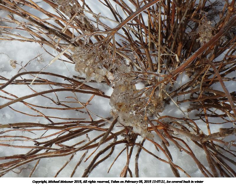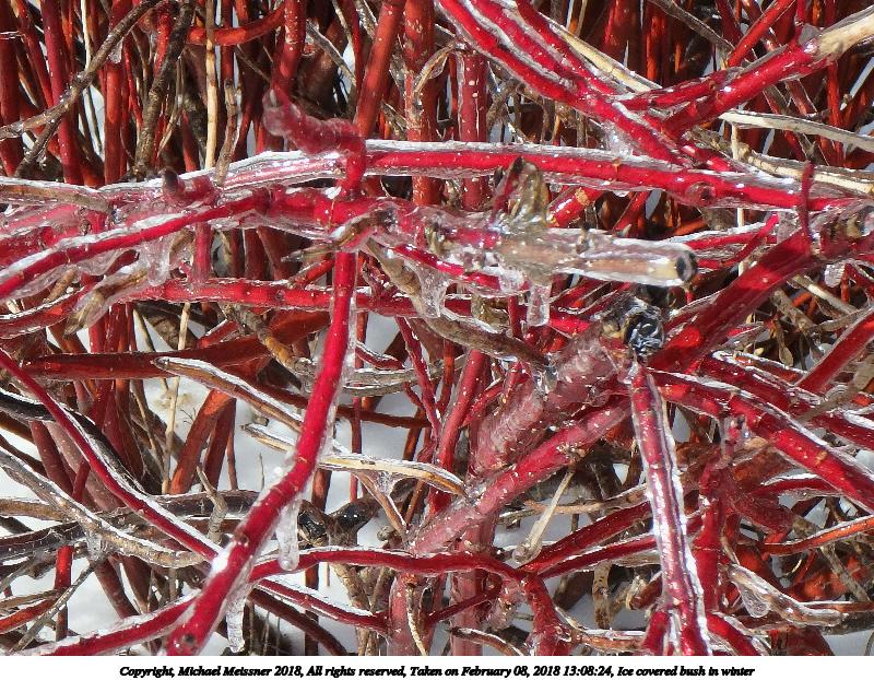 Picture #56: Ice covered bush in winter #5 800x622, 177,805 bytes (174K), (html file) Copyright, Michael Meissner 2018, All rights reserved Olympus TG-860 camera f/5.2, ISO 125, 1/500 sec, 8.1mm, auto mode, natural color, SQ, matrix metering 35mm equivalent focal length 45.0mm Programs used: crop, gimp, raw therapee Taken by Michael Meissner on February 08, 2018 13:08:24 Last modified on February 09, 2018 at 08:33 |