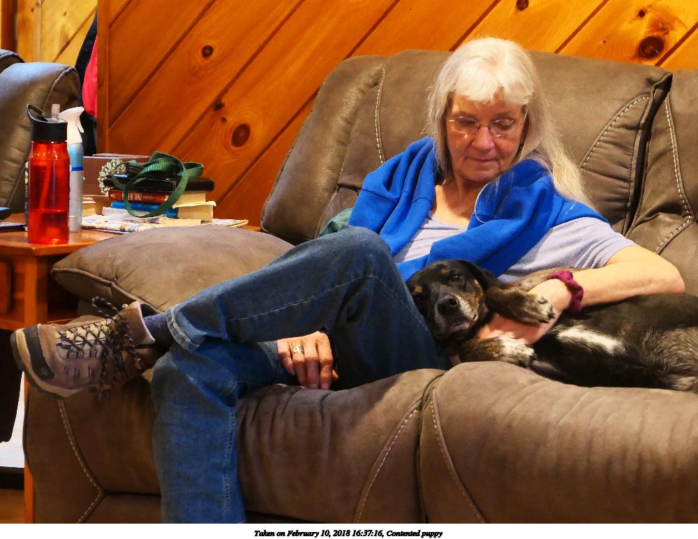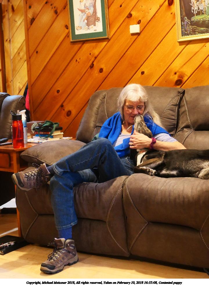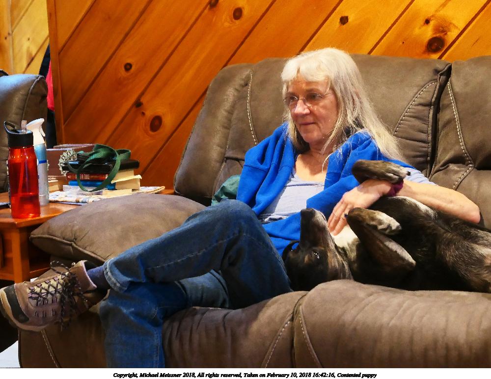 Picture #47: Contented puppy #4 1000x772, 141,206 bytes (138K), (html file) Copyright, Michael Meissner 2018, All rights reserved Panasonic LX-10 camera f/2.8, ISO 1600, 1/30 sec, 26.3mm, auto mode, auto wb (3100), center weight metering, image stabilization 35mm equivalent focal length 78.0mm Programs used: crop, gimp, raw therapee Taken by Michael Meissner on February 10, 2018 16:42:21 Last modified on February 10, 2018 at 20:40 |