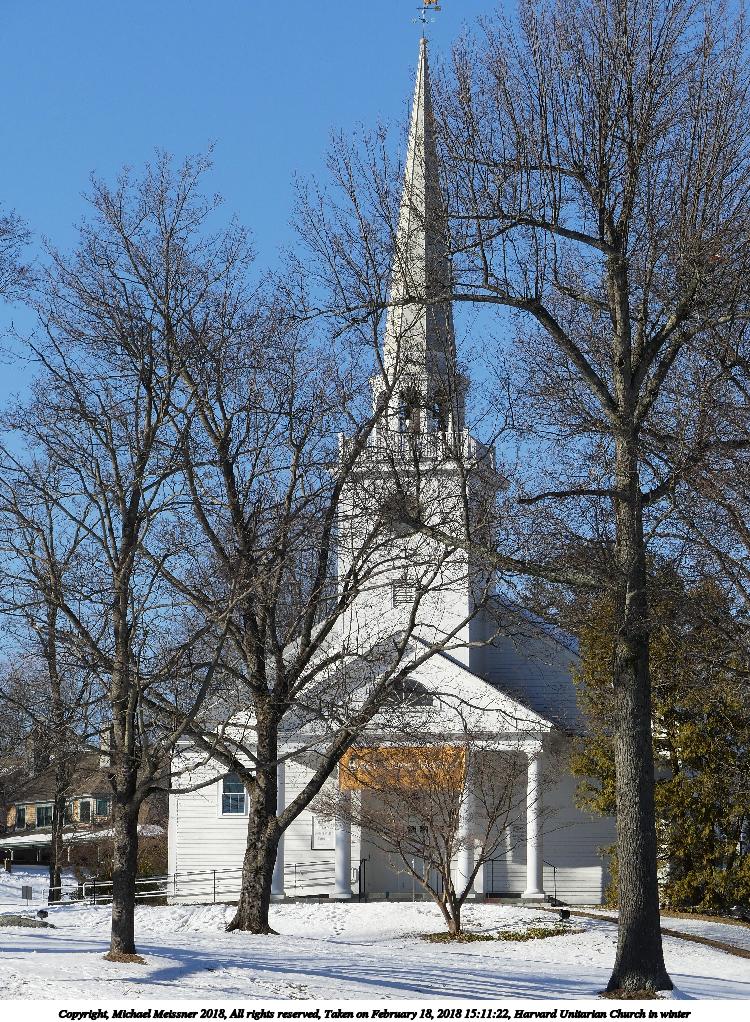 Picture #32: Harvard Unitarian Church in winter 750x1022, 325,895 bytes (319K), (html file) Copyright, Michael Meissner 2018, All rights reserved Panasonic FZ300 camera f/4.0, ISO 100, 1/1000 sec, 30.6mm, auto mode, auto wb (5600), matrix metering, image stabilization, normal color mode 35mm equivalent focal length 170.0mm Programs used: crop, raw therapee, rotate left Taken by Michael Meissner on February 18, 2018 15:11:22 Last modified on February 18, 2018 at 19:19 |